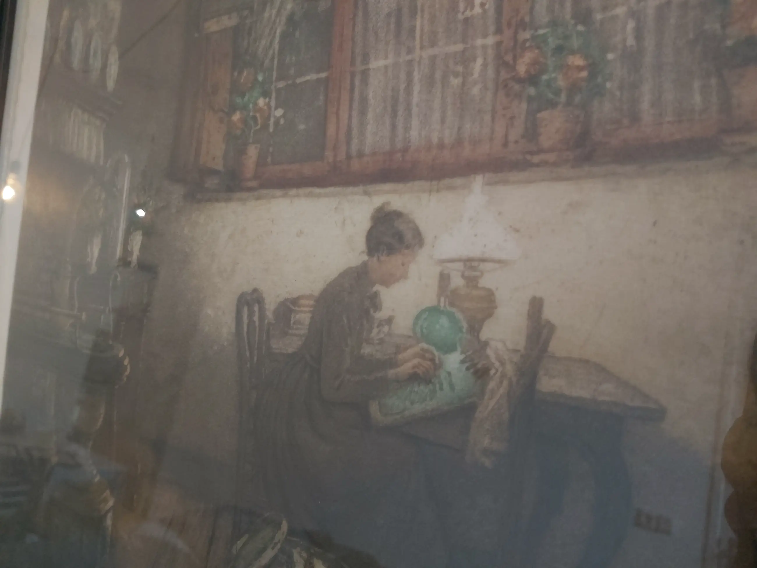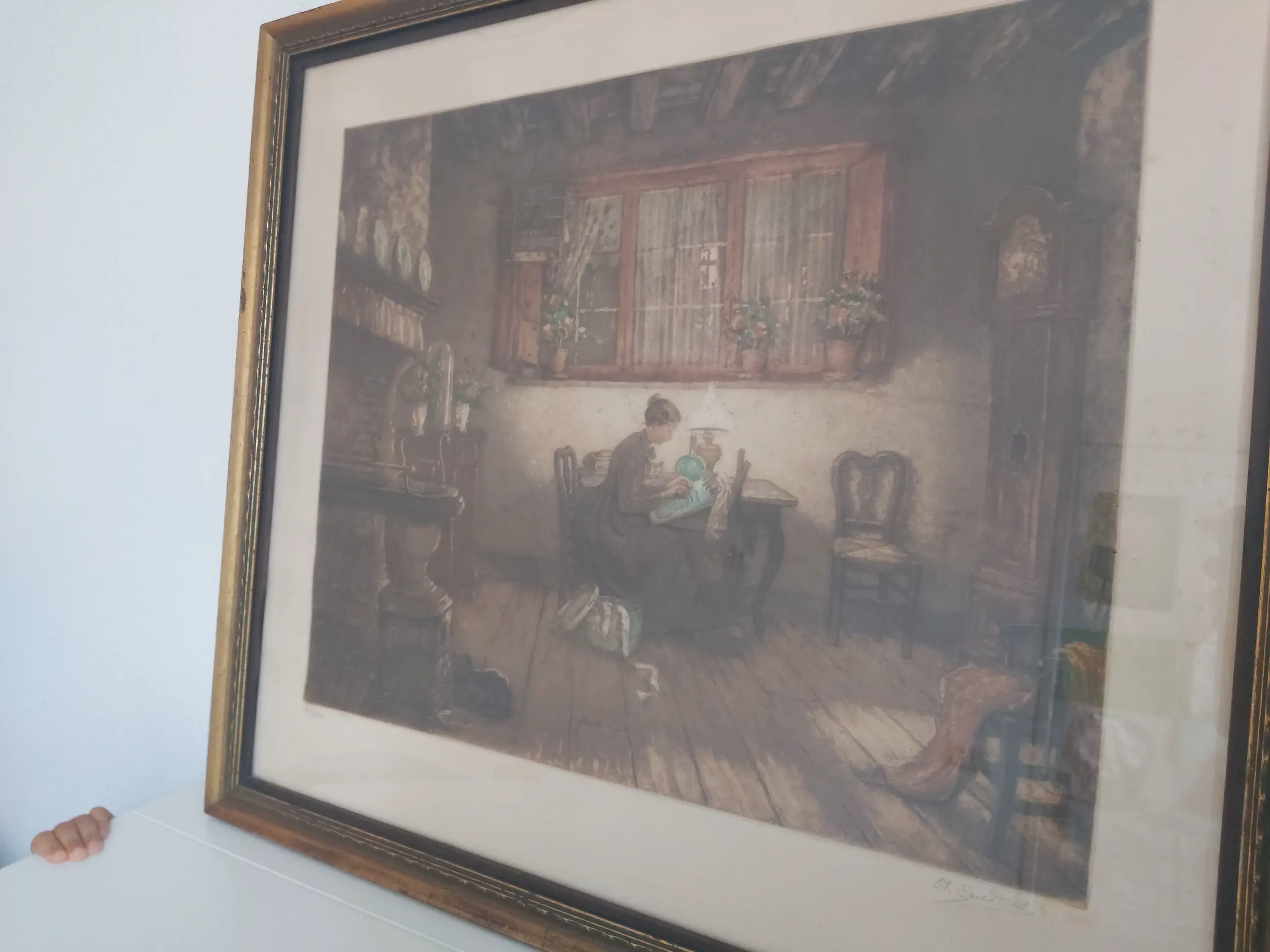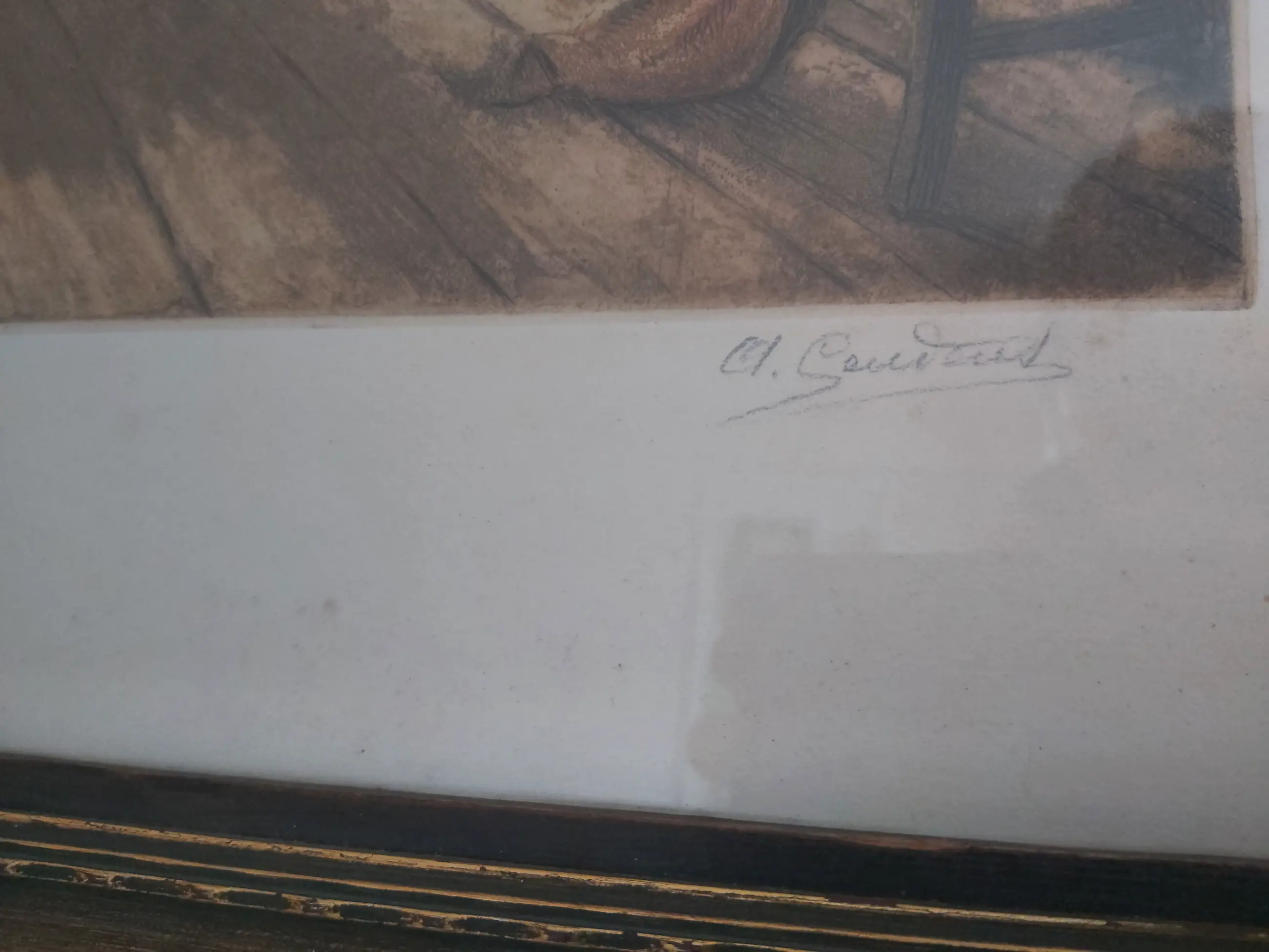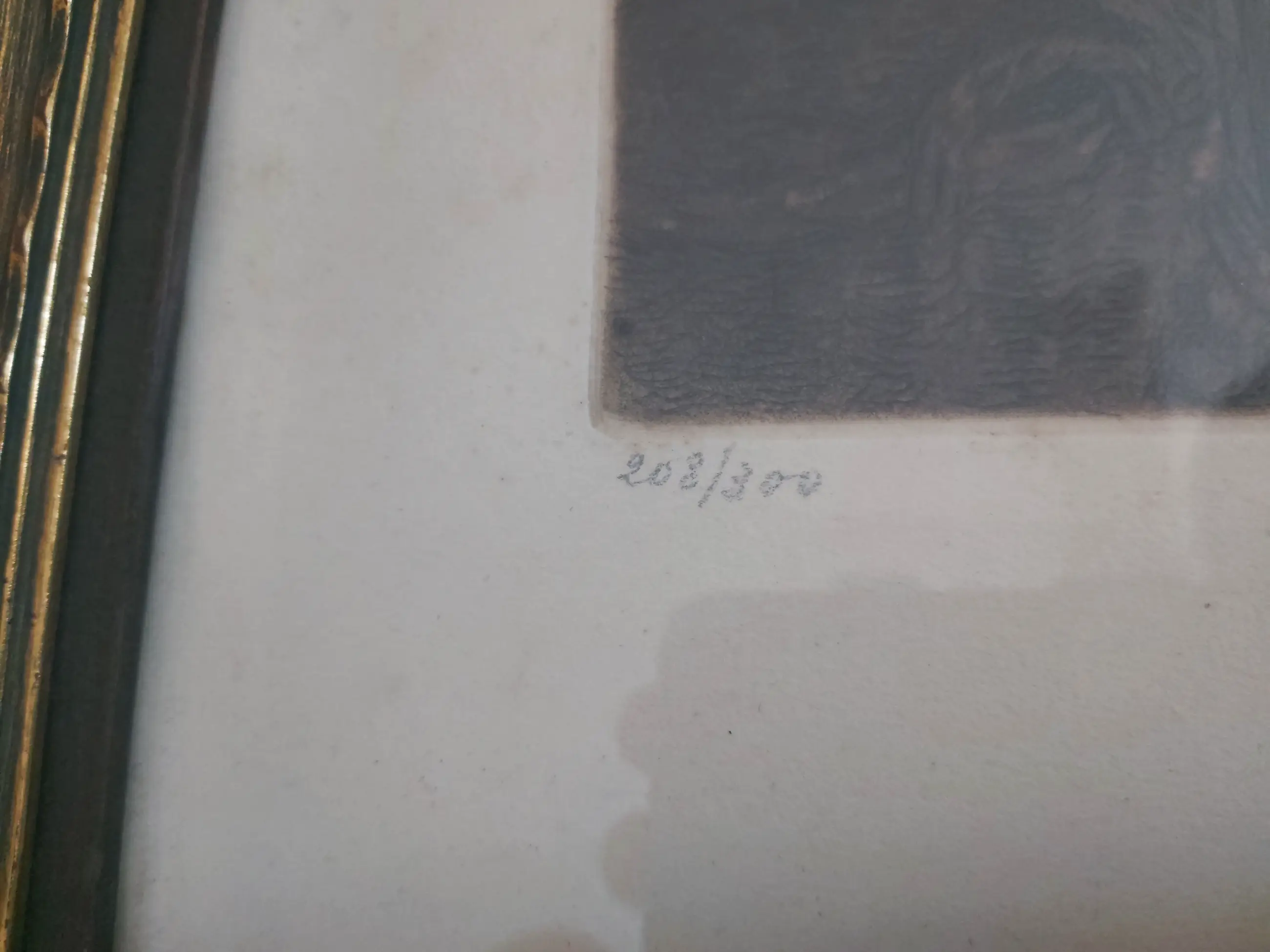 Ets van 40x50 cm met een mooie goudkleurige lijst van 56x65 cm. Lijst heeft aan de linkerkant een kleine beschadiging.