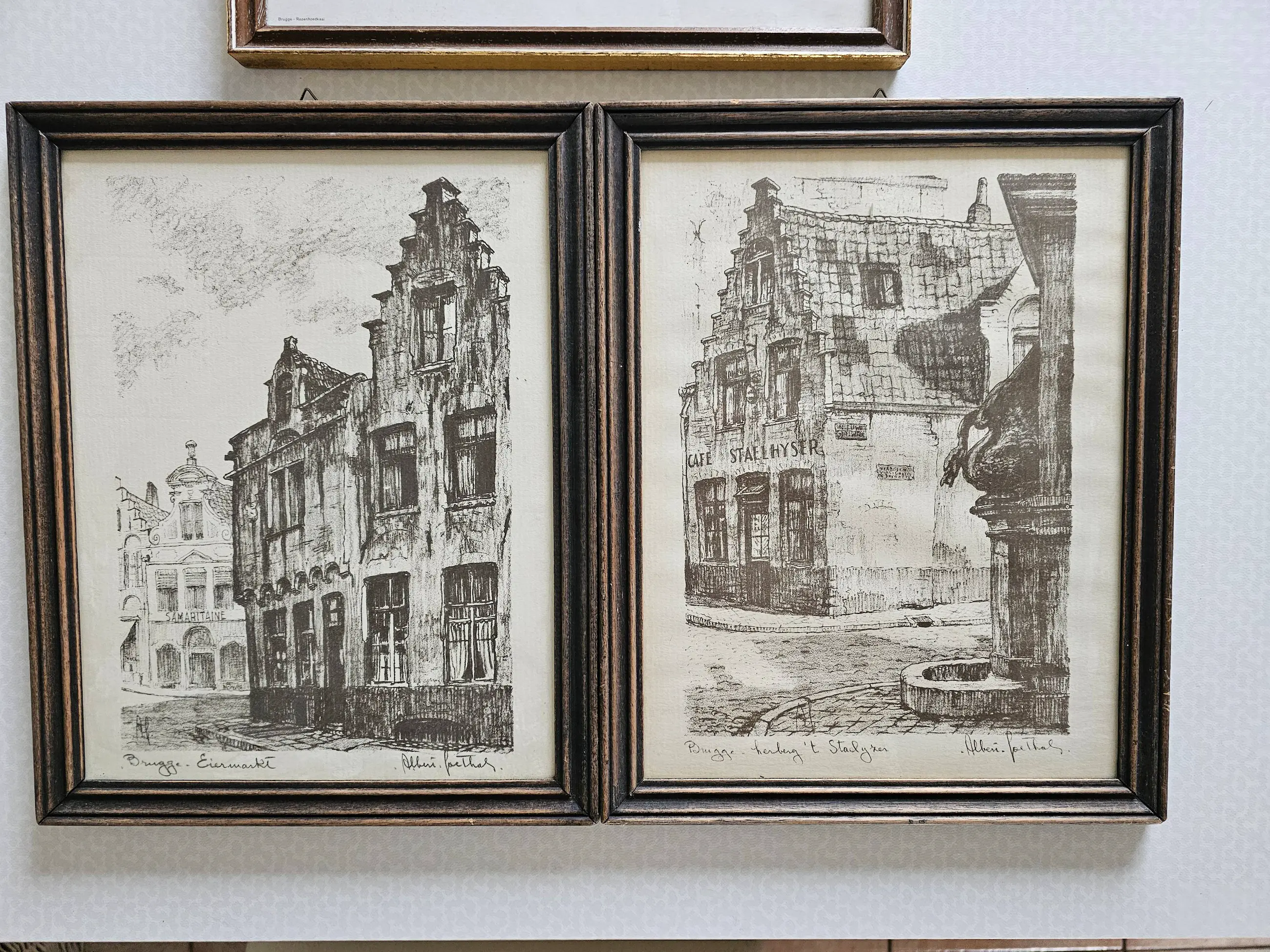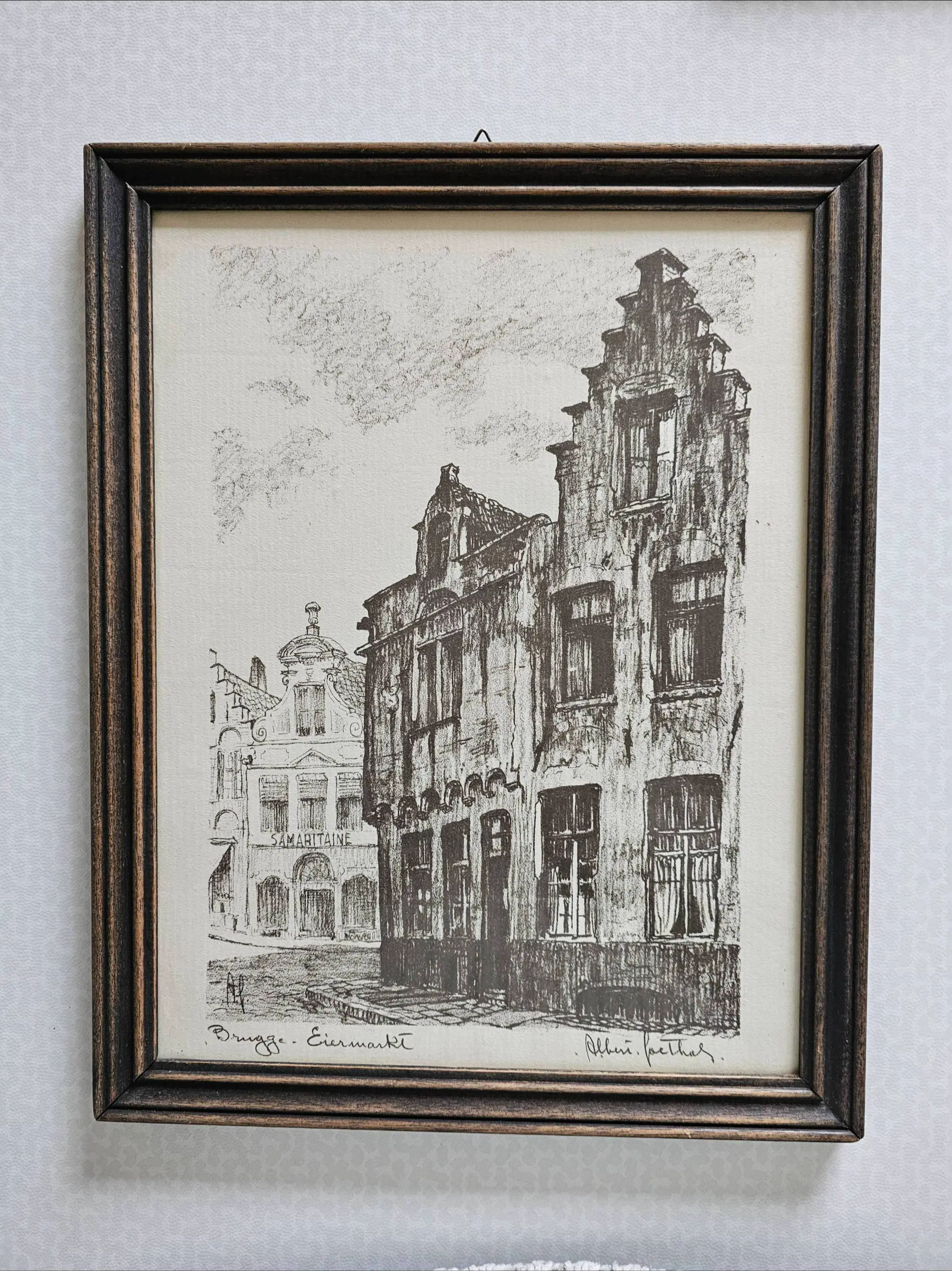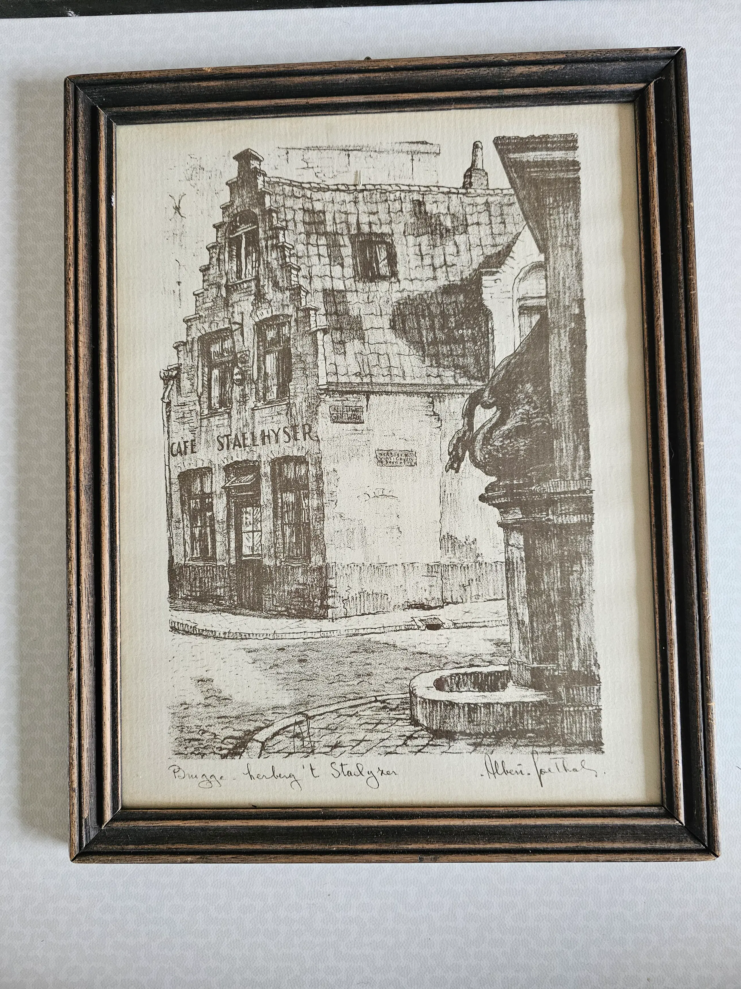 2 Litho's door Albert Goethals Belgische kunstenaar (1885-1973). zijn van Stadsgezicht oude Eierenmarkt van brugge en de andere van de Herberg T Stalhyster Brugge. Gesigneerd . Goede conditie.