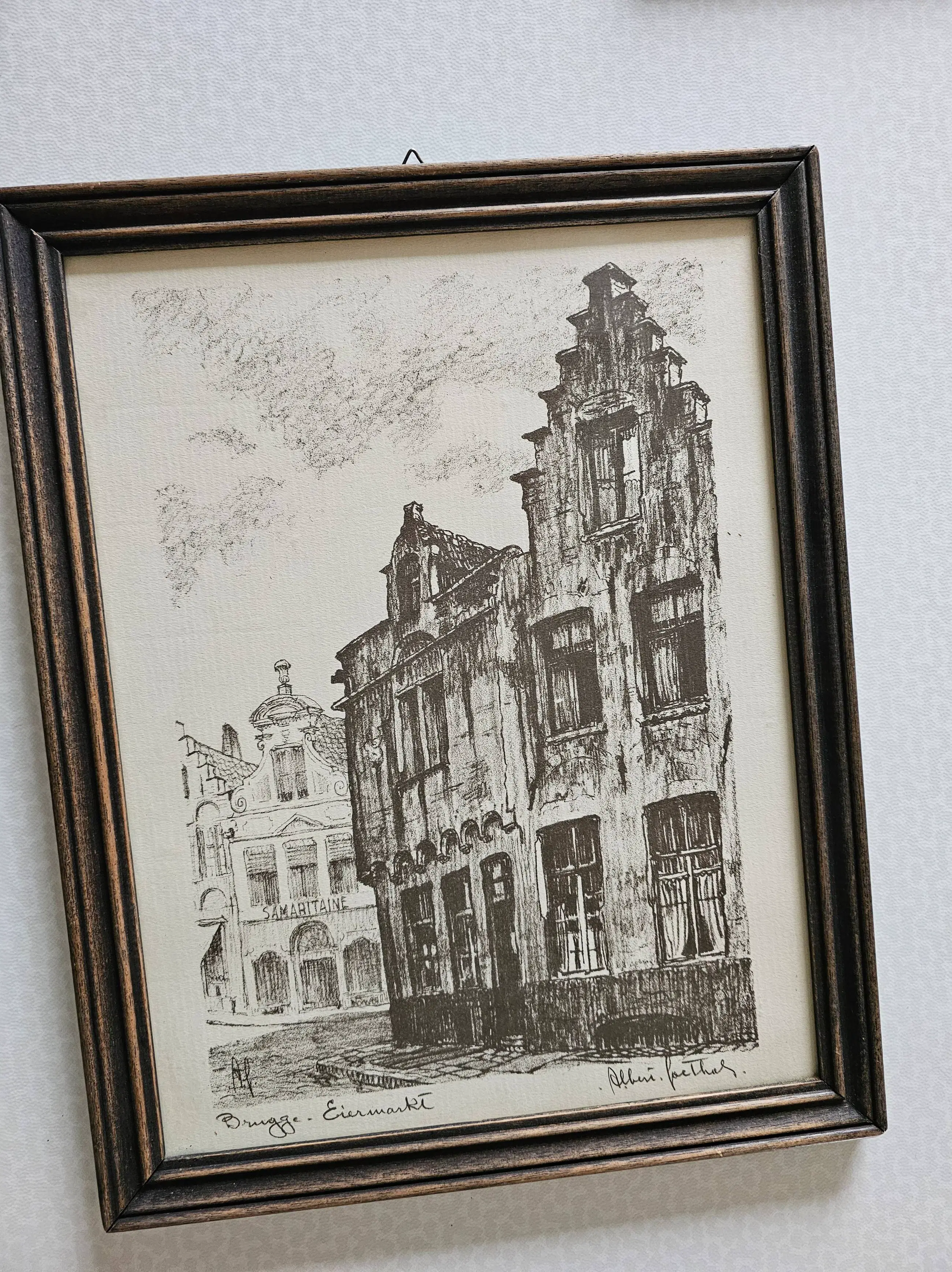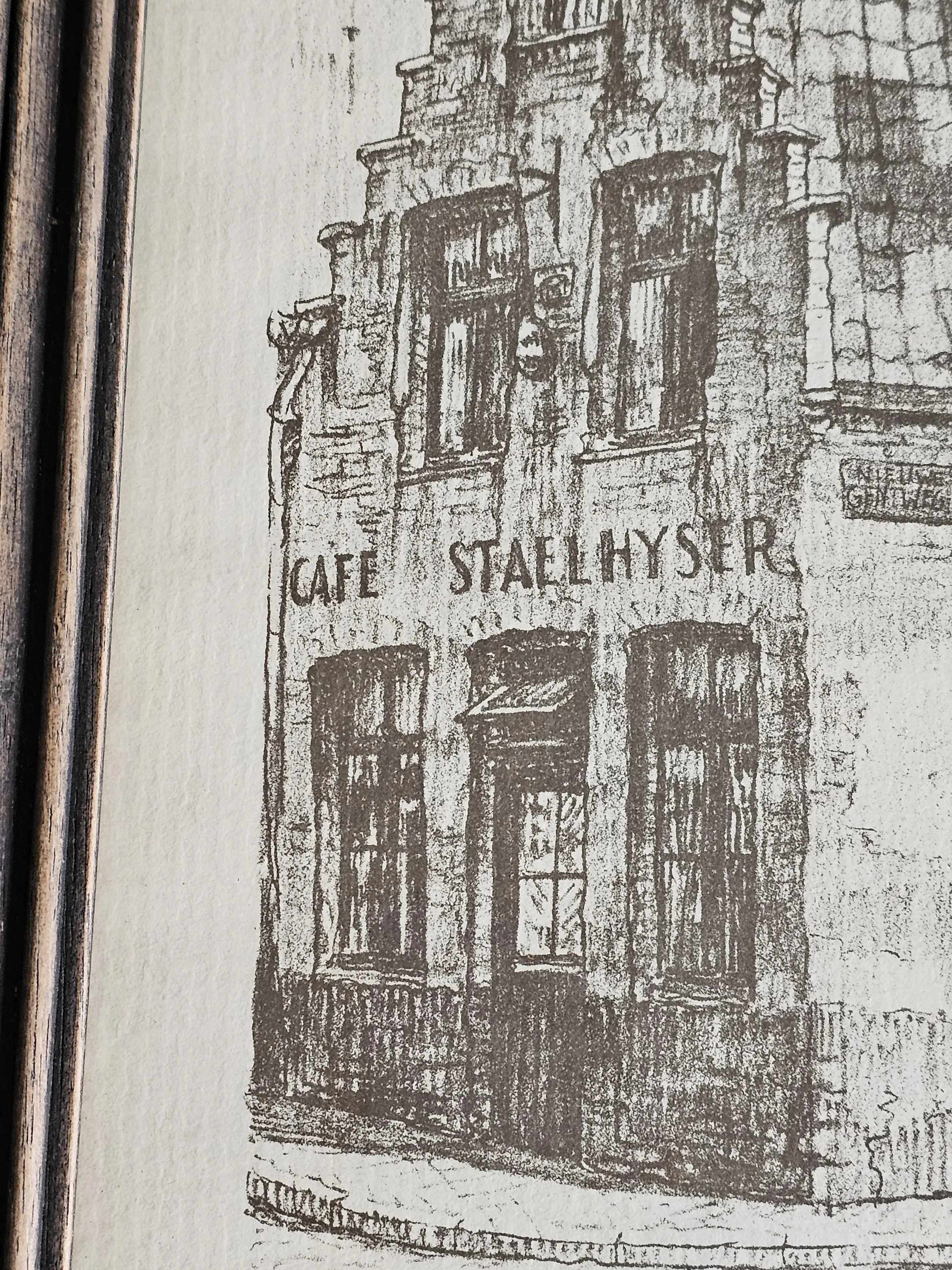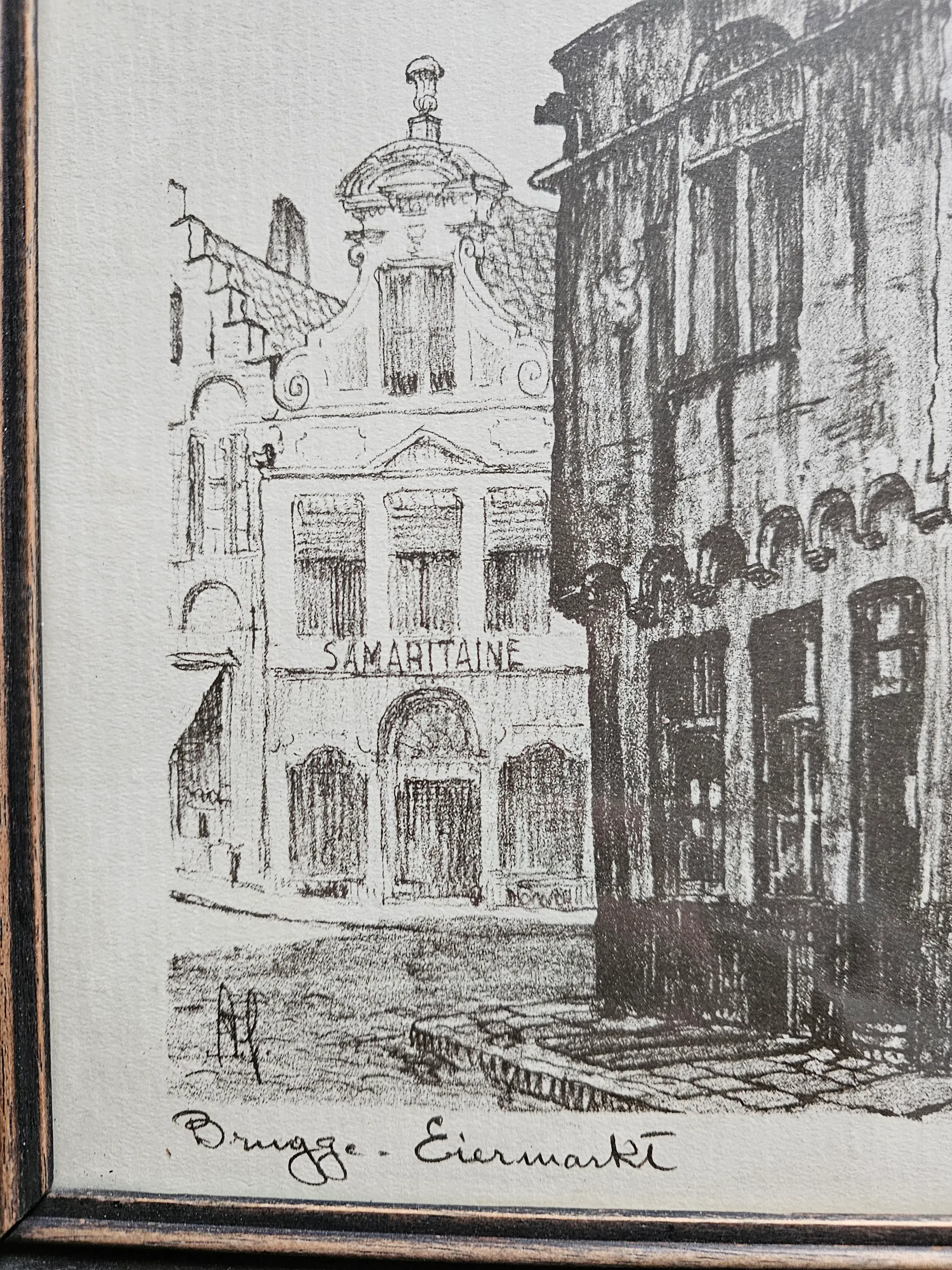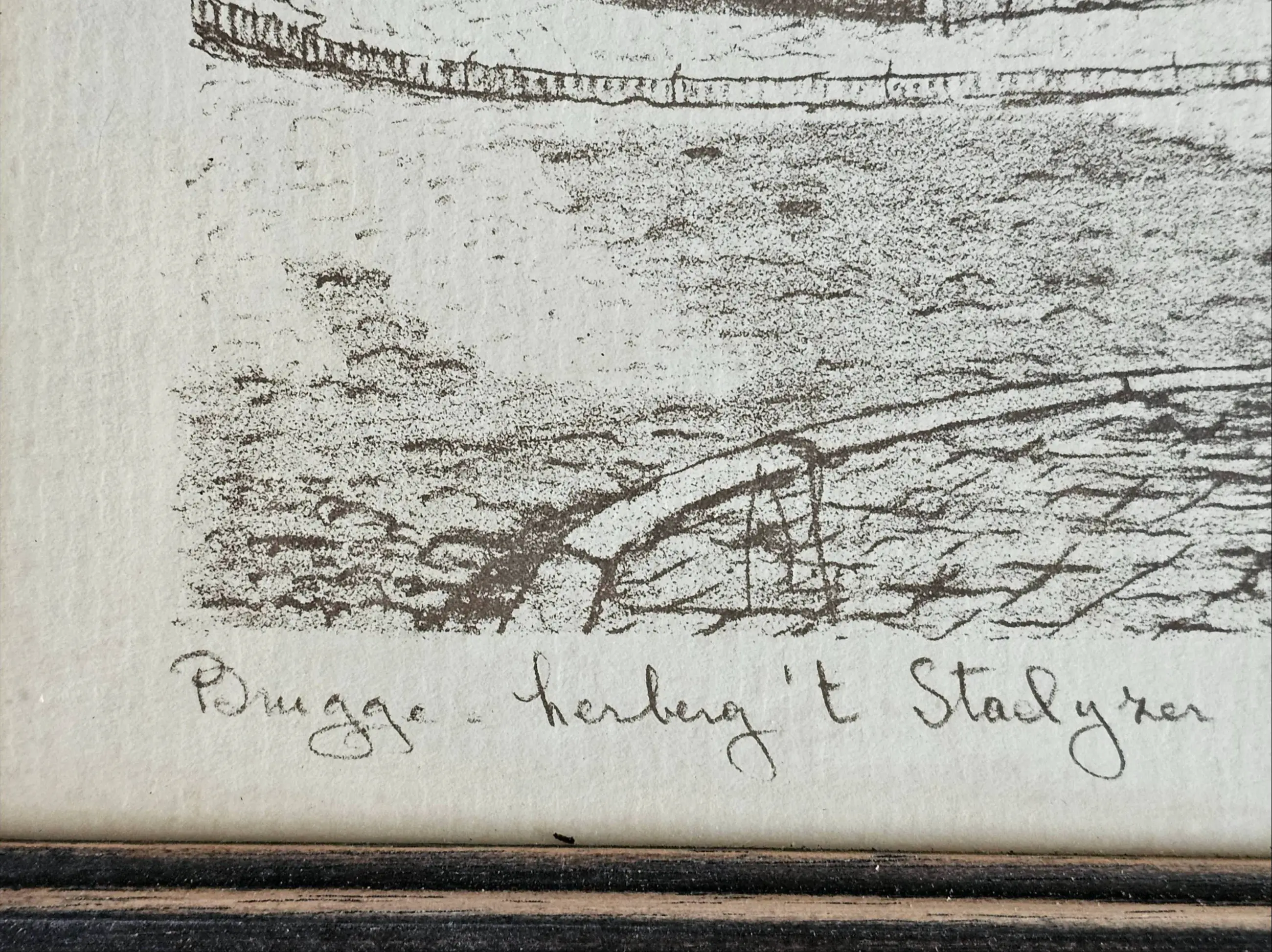 2 Litho's door Albert Goethals Belgische kunstenaar (1885-1973). zijn van Stadsgezicht oude Eierenmarkt van brugge en de andere van de Herberg T Stalhyster Brugge. Gesigneerd . Goede conditie.