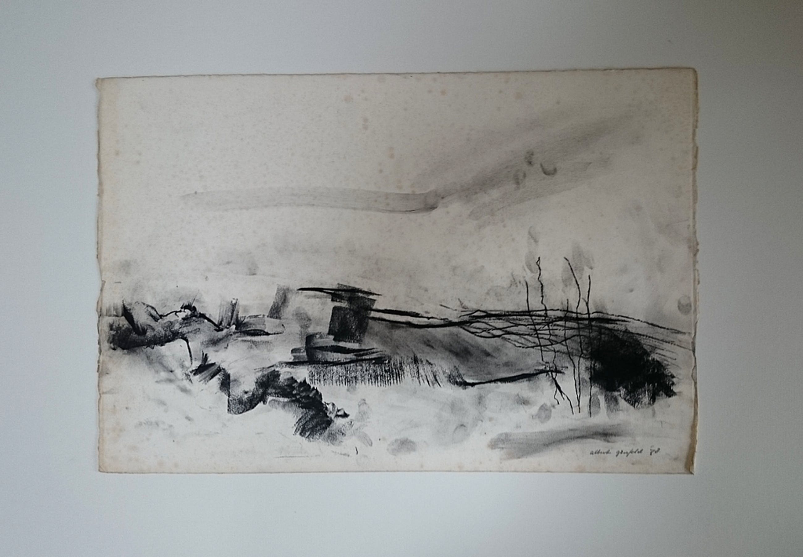 Mooie tekening van Albert Grosfeld uit 1978, opgezet in houtskool en zwart pastel.