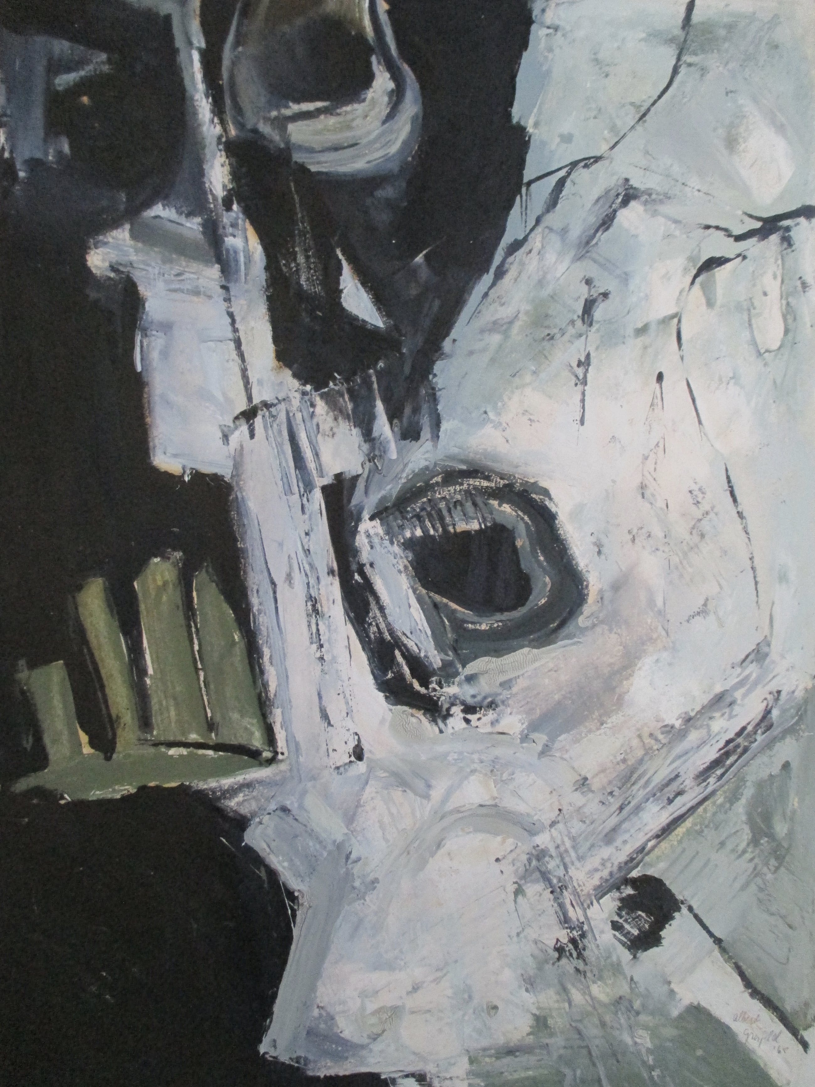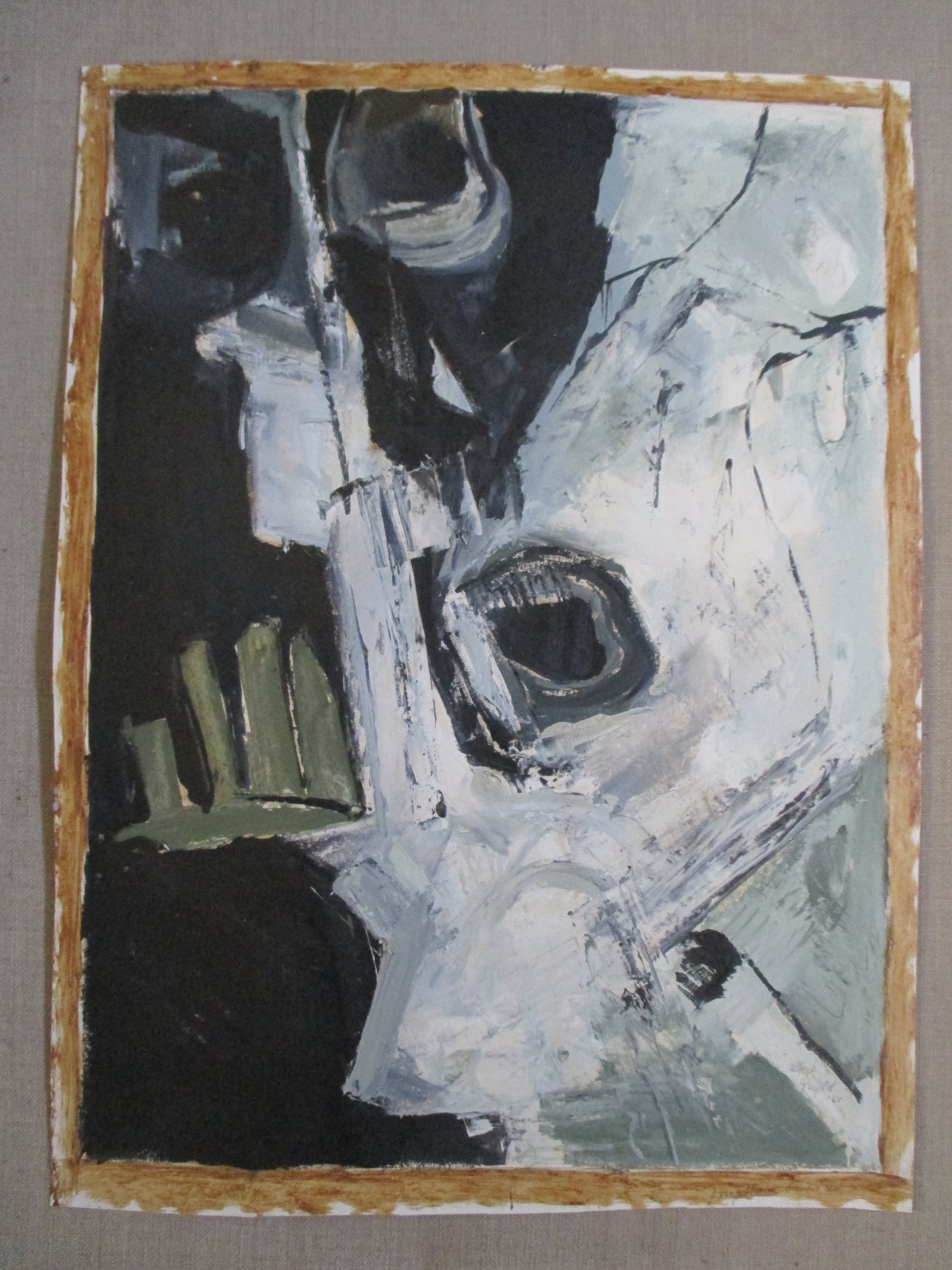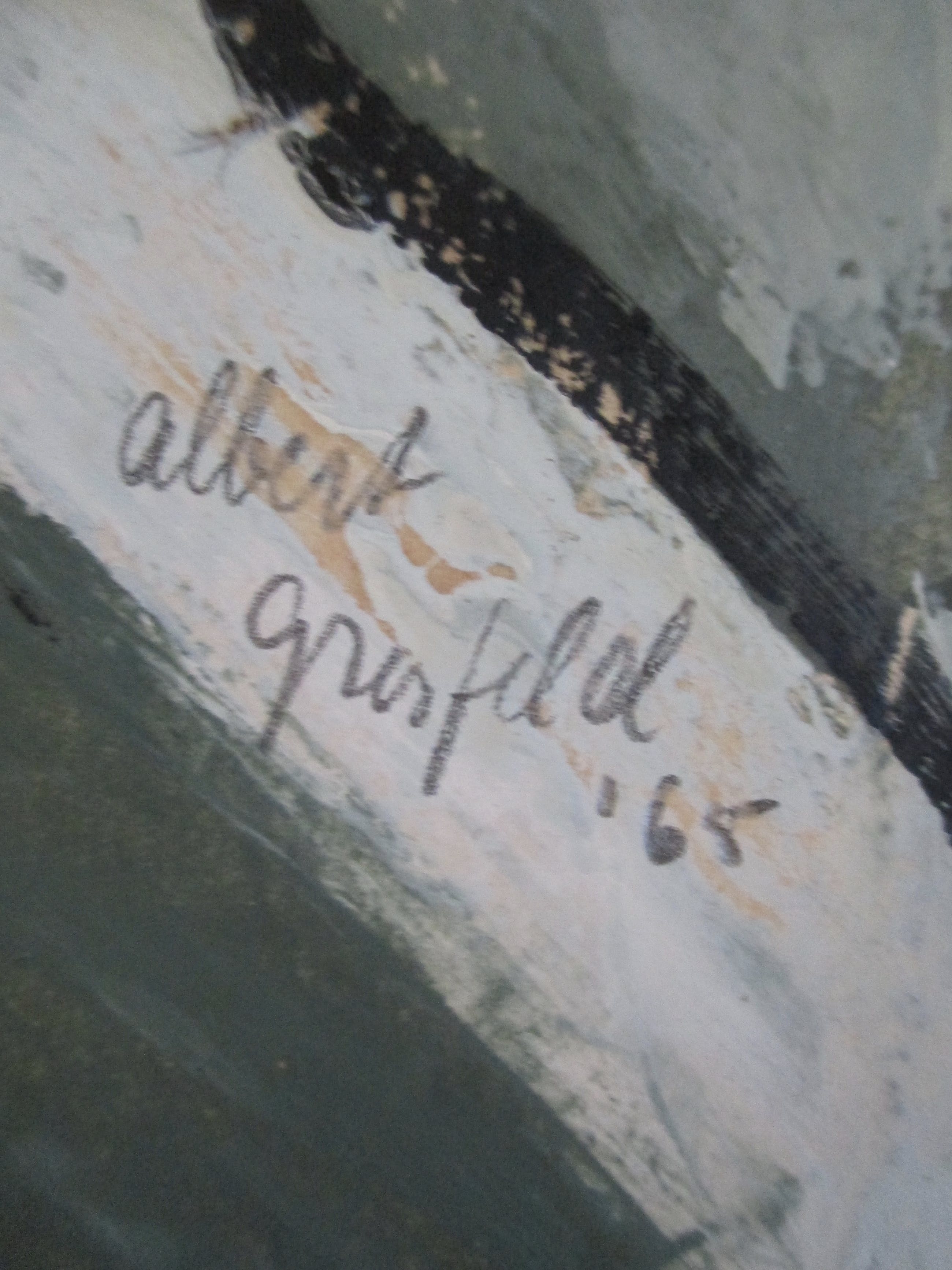 Schilderij op papier van Albert Grosfeld, gesigneerd en gedateerd en getiteld in potlood r.o. verzending tussen twee platen, 8,25, aangetekend 10,20