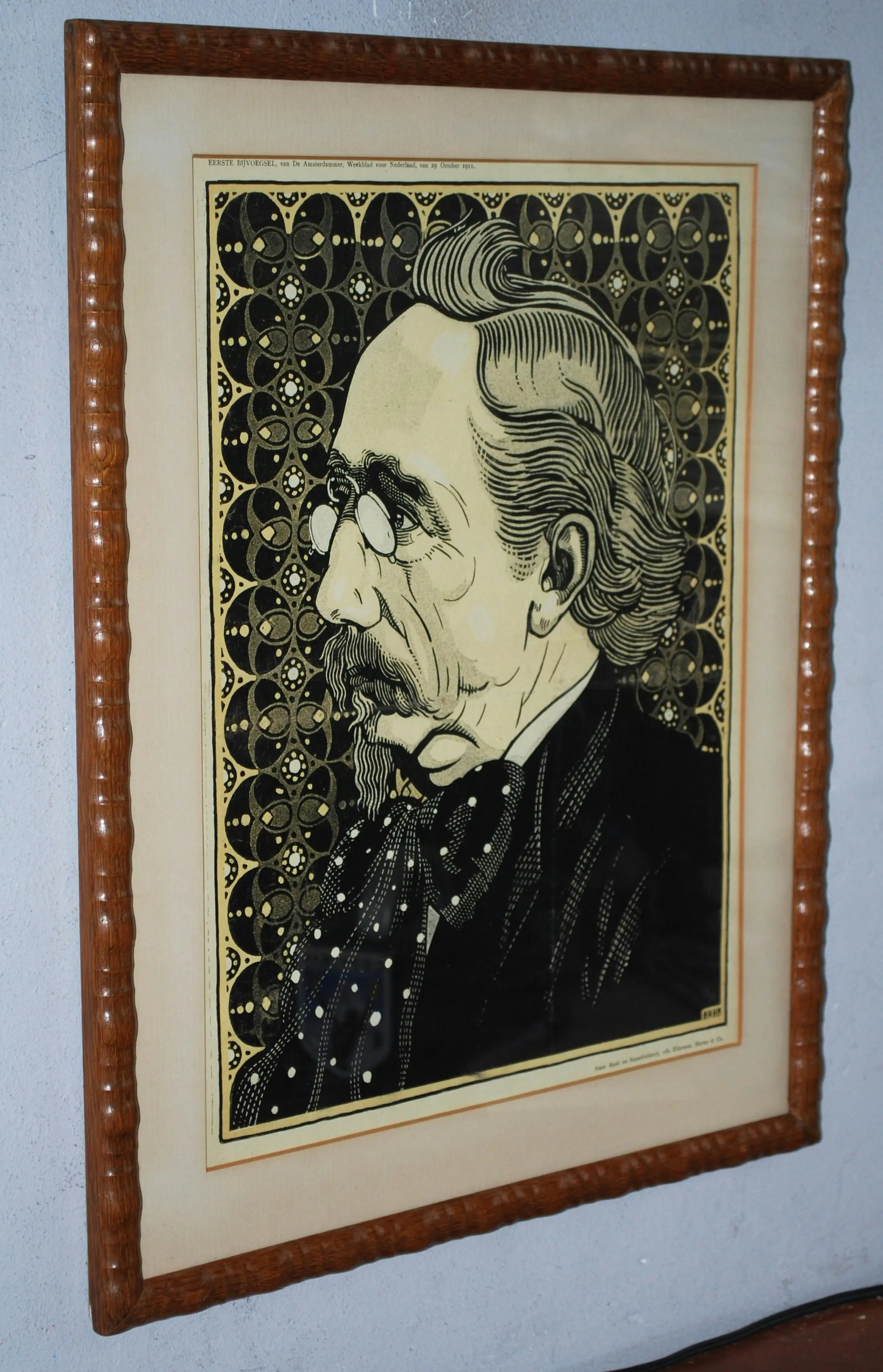 - 1e bijvoegsel door Albert Hahn: Johan Braakensiek, steendruk, achter glas en passepartout, in een periode lijst.