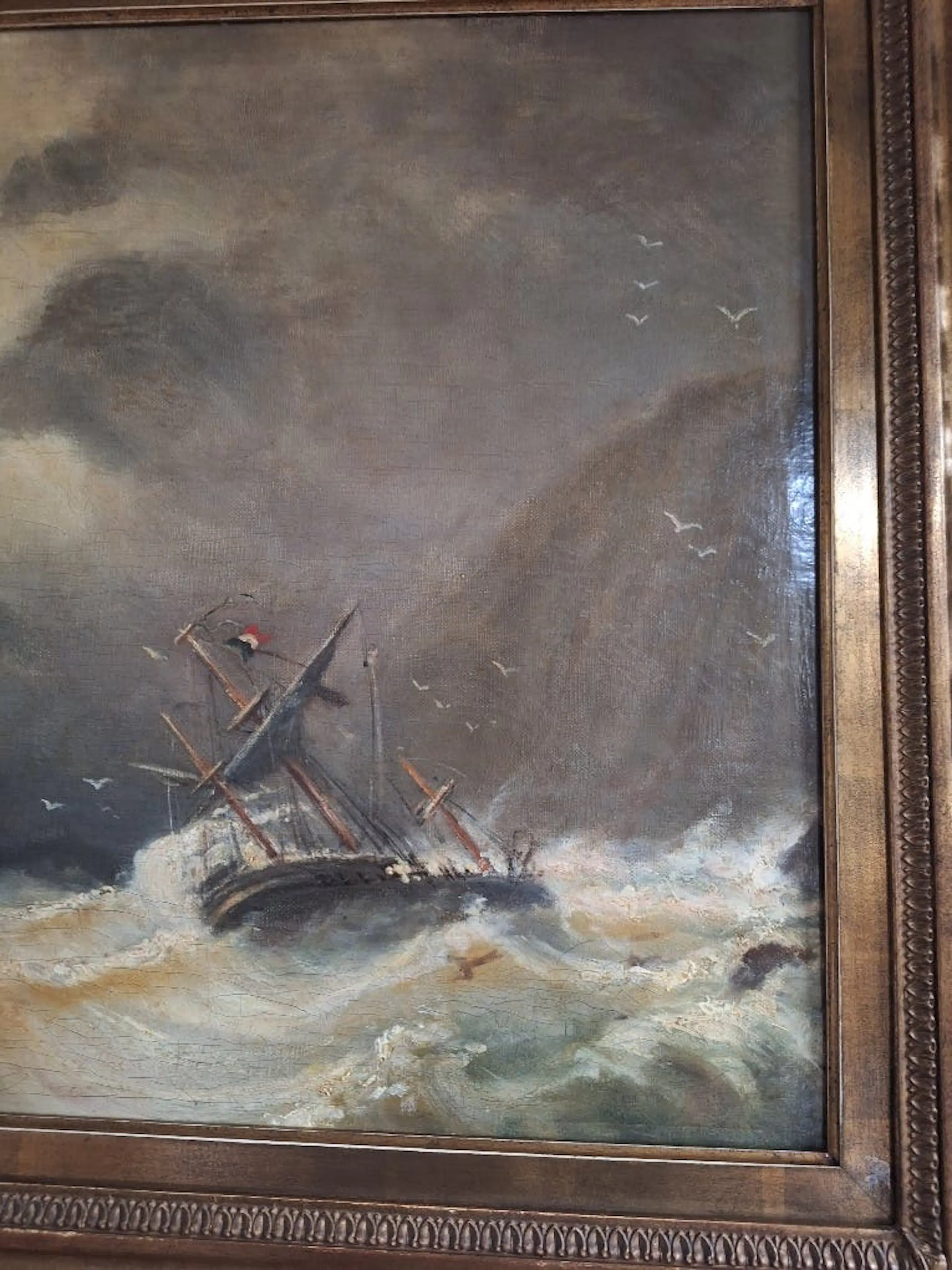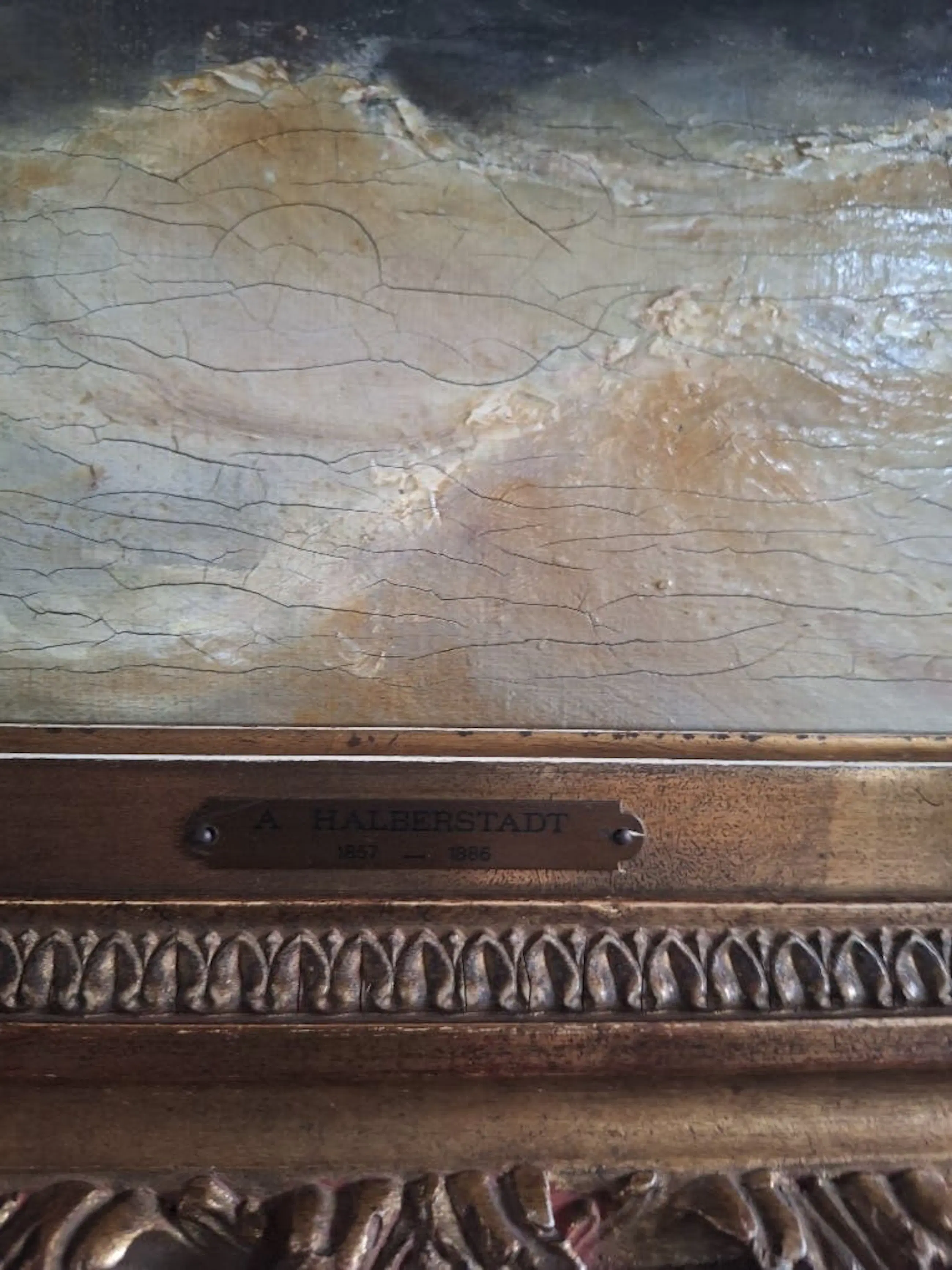 Olieverf op doek op paneel. (Marouflé) 50x80CM in vergulde ornamentenlijst.