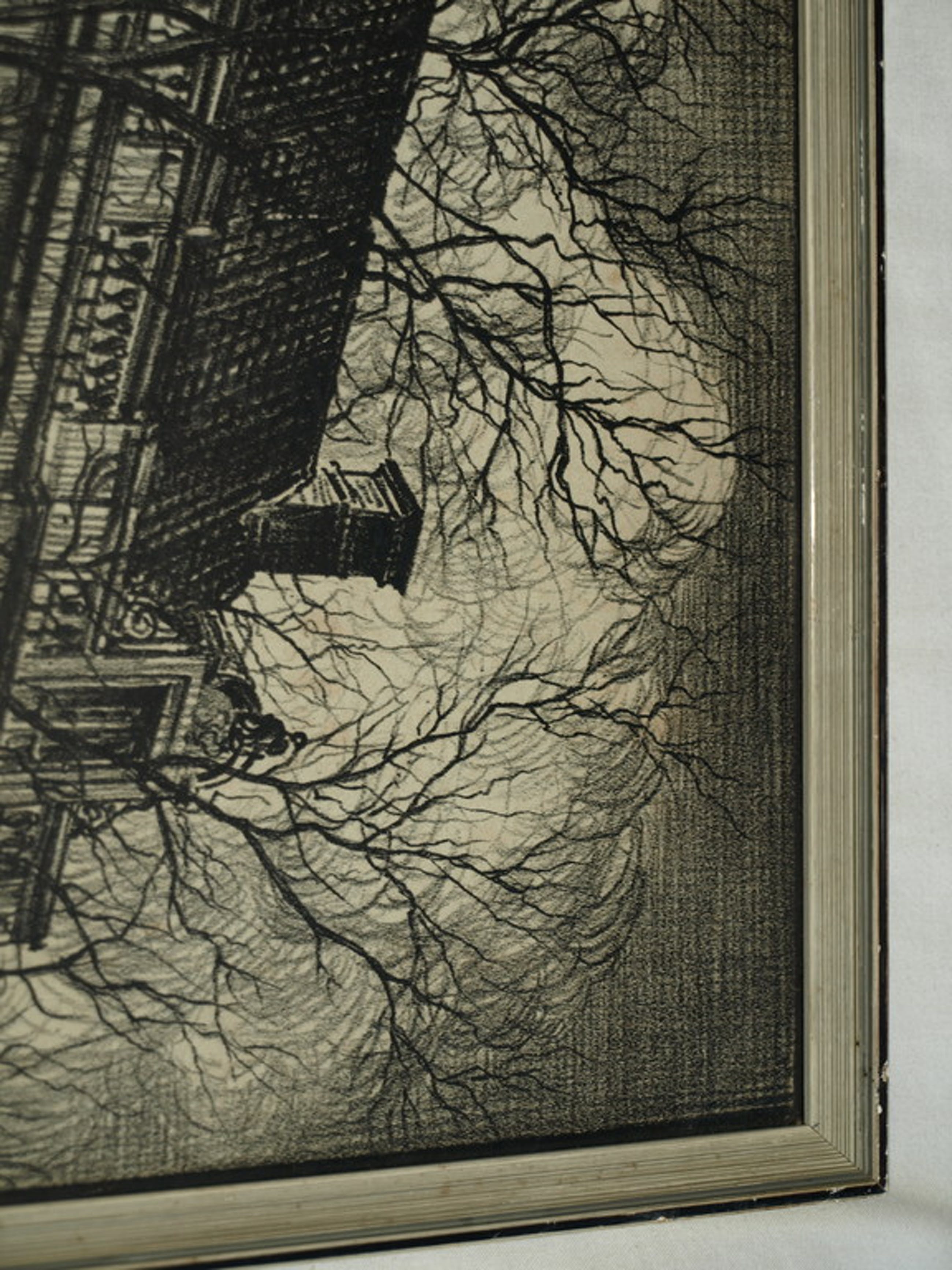 Conditie: De litho is in zeer goede staat. De lijst heeft slijtplekken en is ‘verweerd’. De kartonnen achterplaat heeft aan de rand (vocht)vlekken.