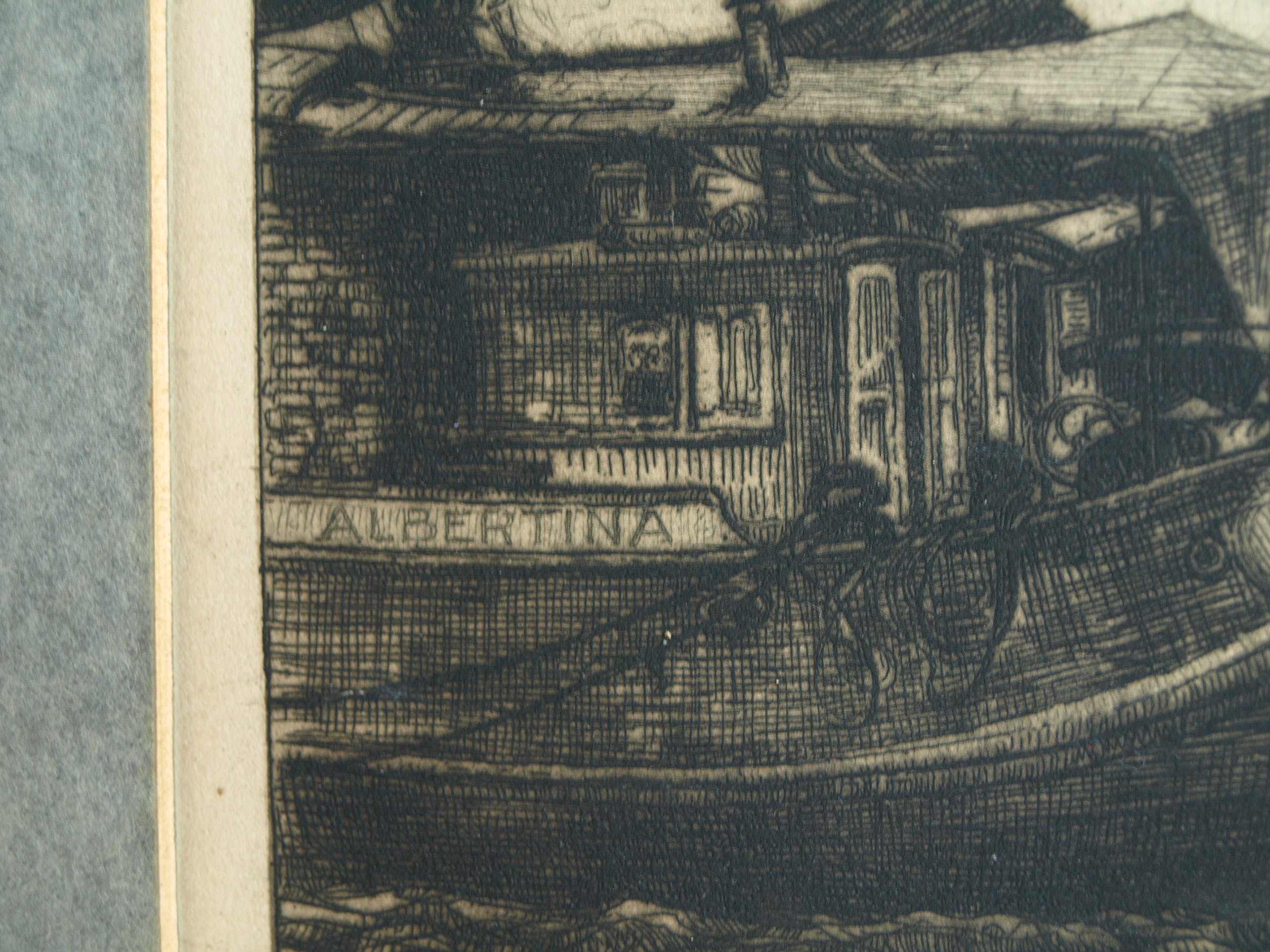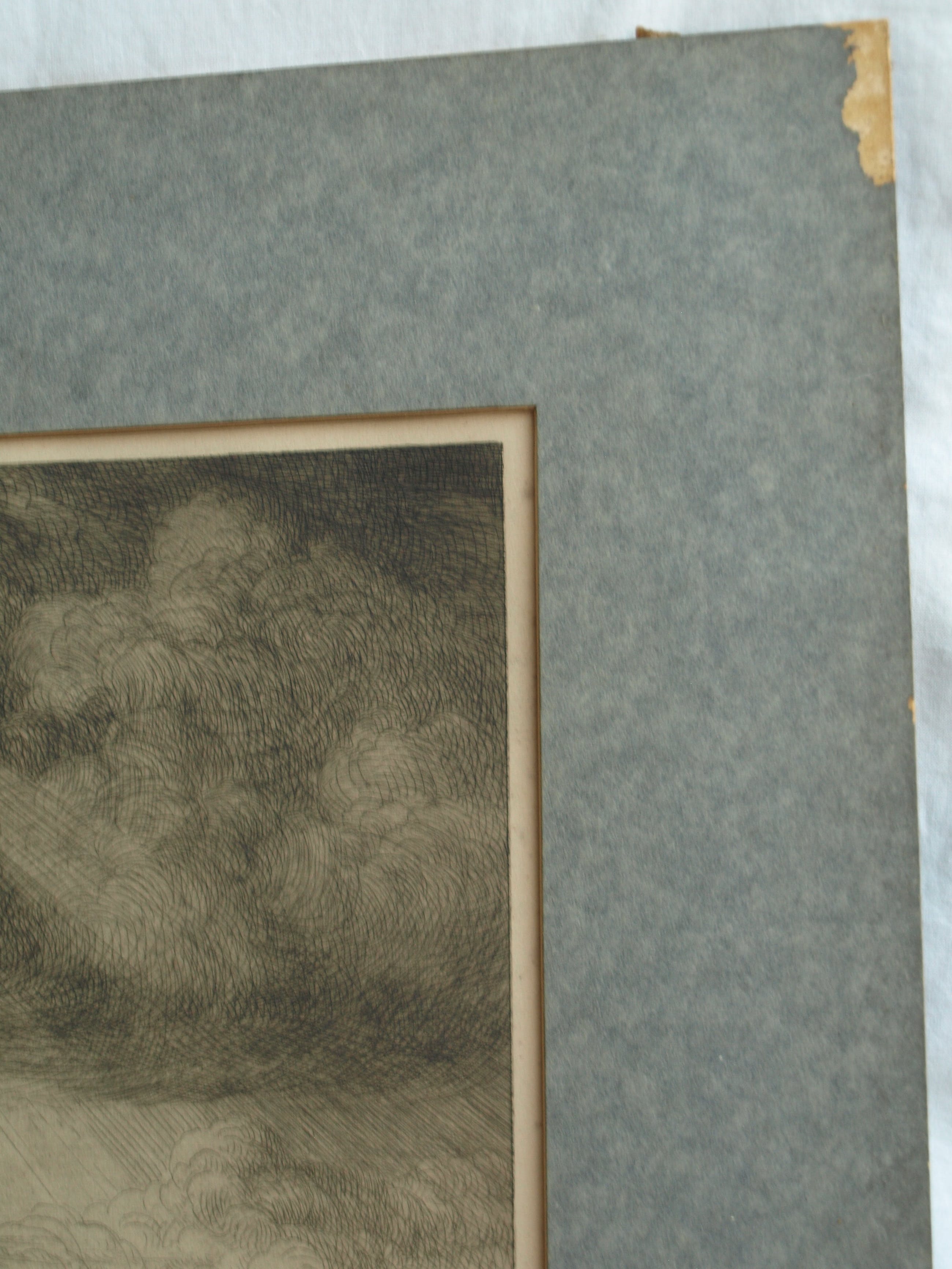 -Conditie: De ets is in goede staat. Het papier van de ets is wat vergeeld en heeft ‘zuurvlekjes’ die in het beeld niet zijn te zien, maar wel op de achterkant van het papier. Het kartonnen passe-partout heeft een beschadiging aan de rechterrand.