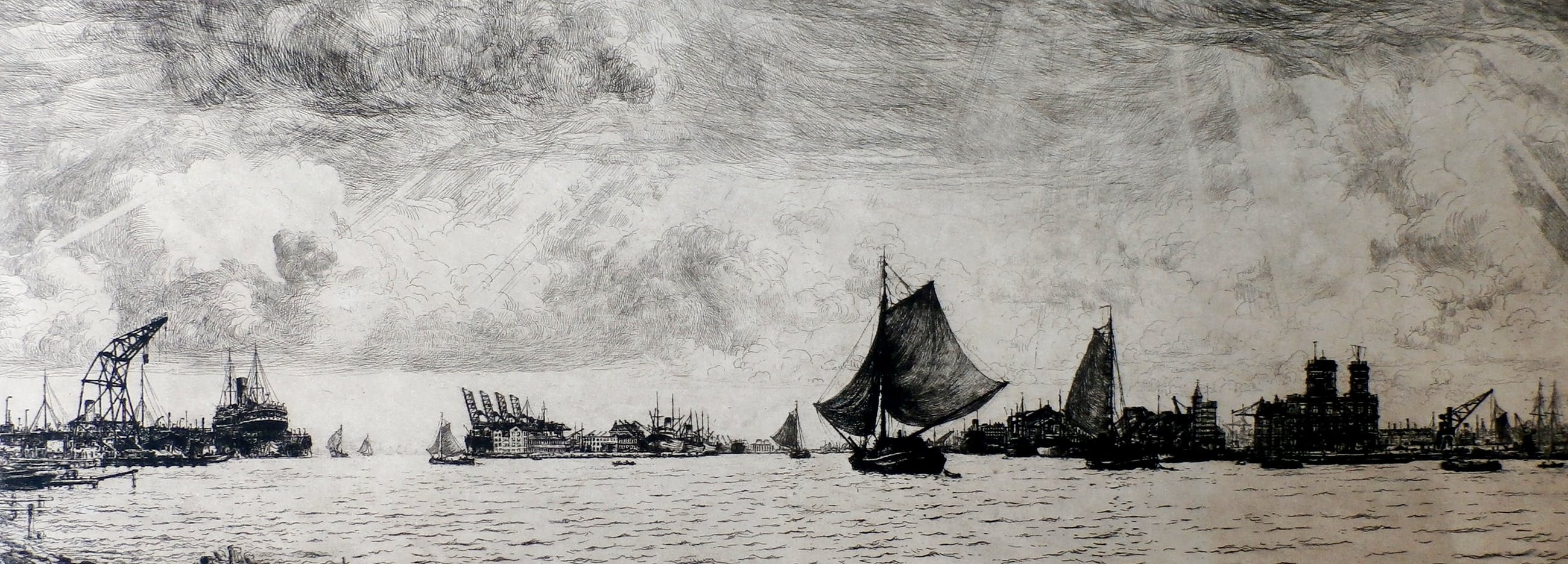Nummer: 53/150 Het werk is rechtsonder, met potlood, door de kunstenaar gesigneerd. Afmetingen voorstelling: h28 x b71 cm.