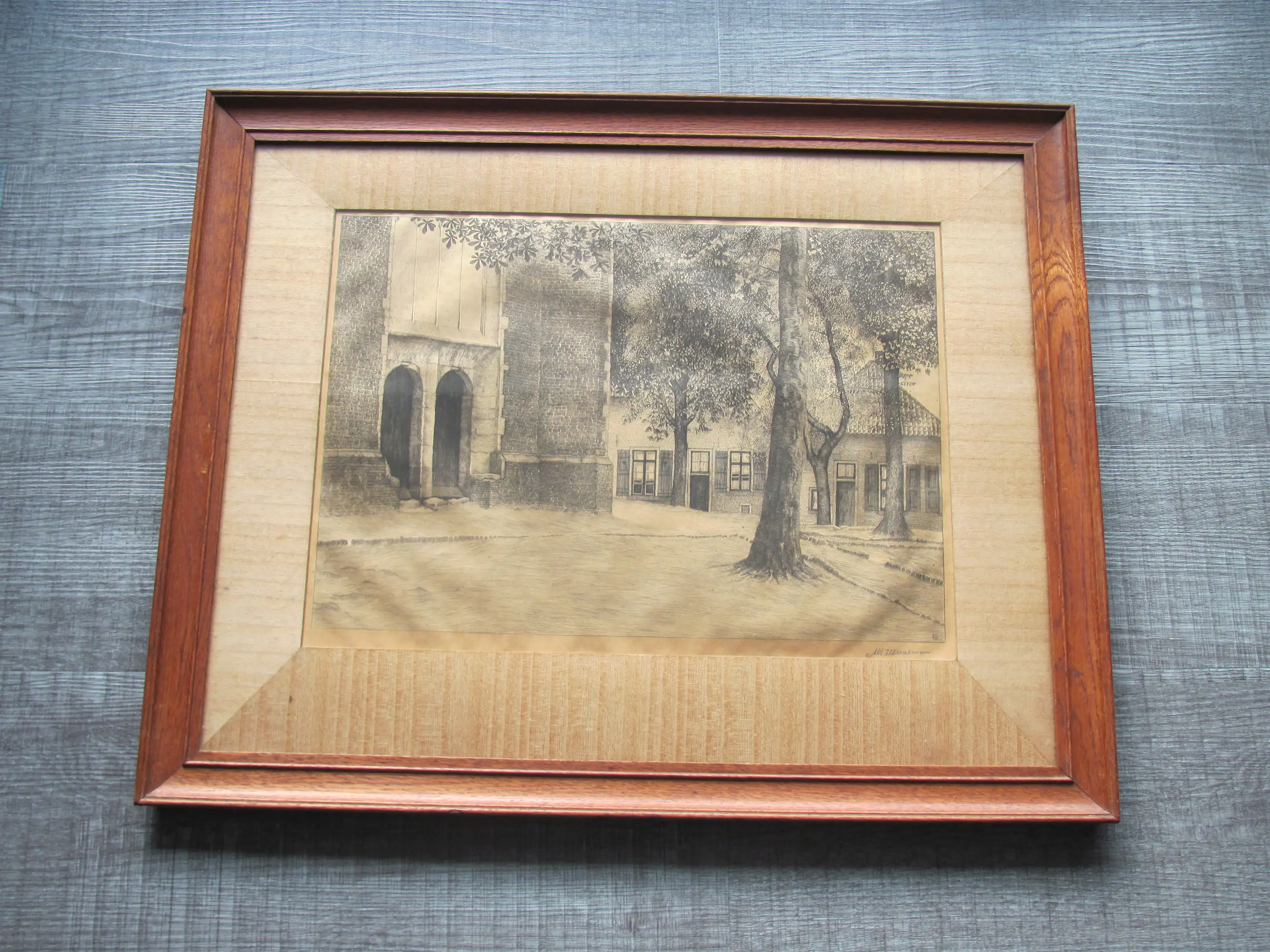 De ets, passe-partout en de lijst zijn in goede staat. Papier is in de loop der tijd iets gebobbeld. Op de foto's lijkt dit erger dan het in het echt is.
