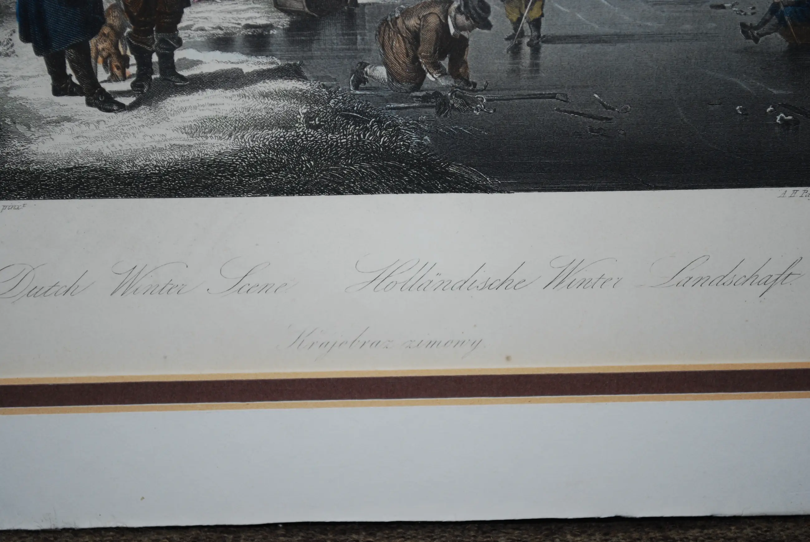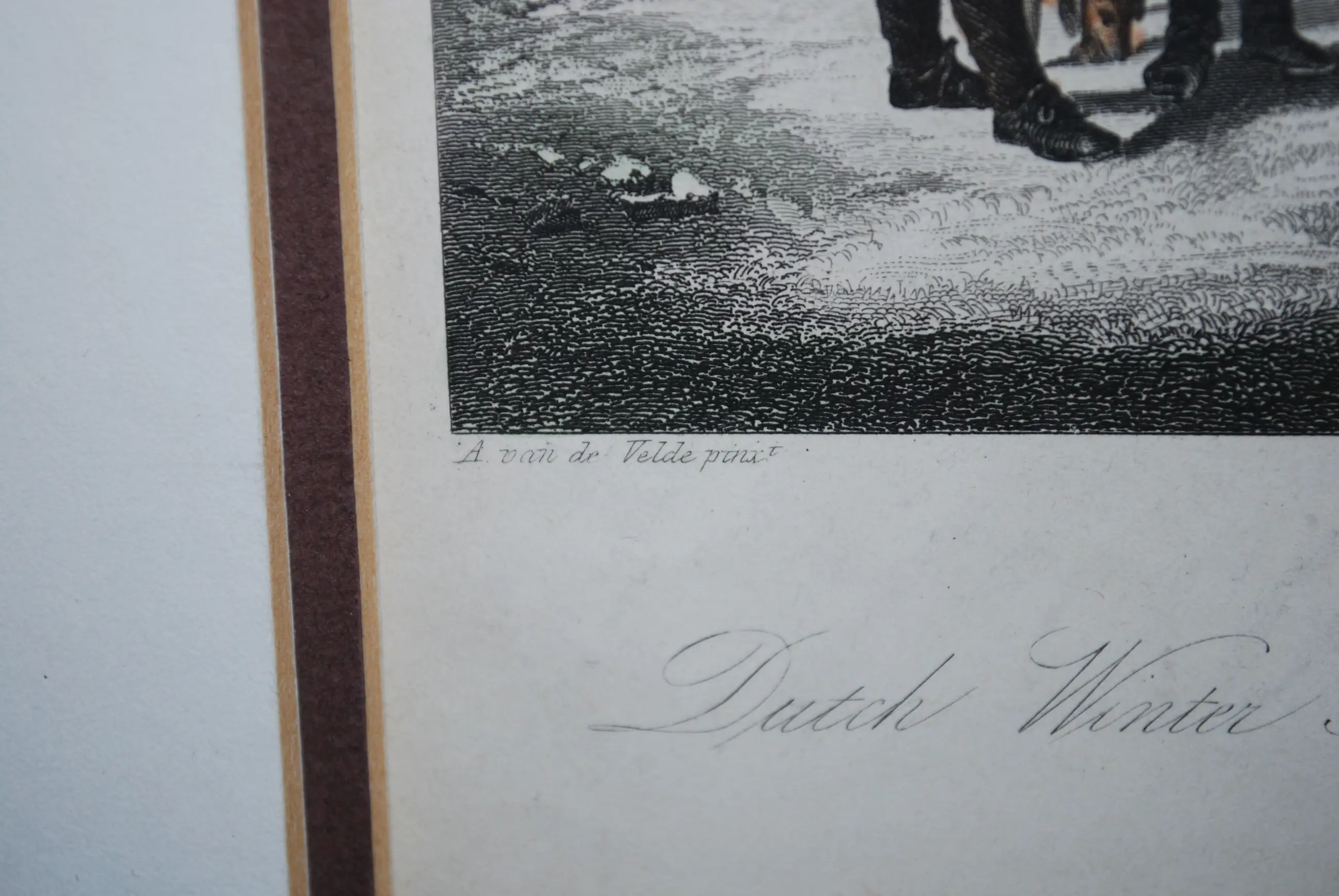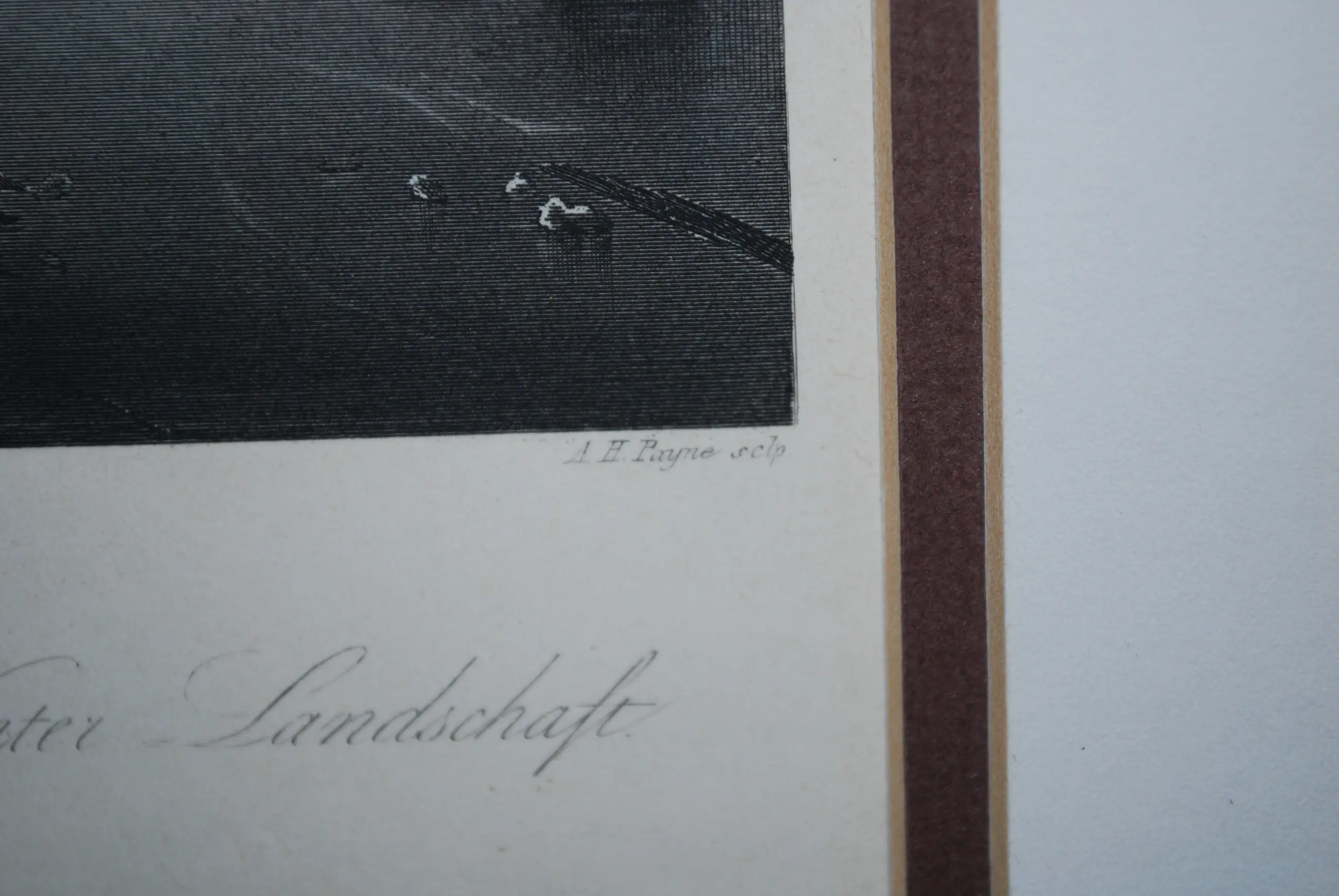 Met een enkel plakkertje bevestigd achter een dubbel passepartout.