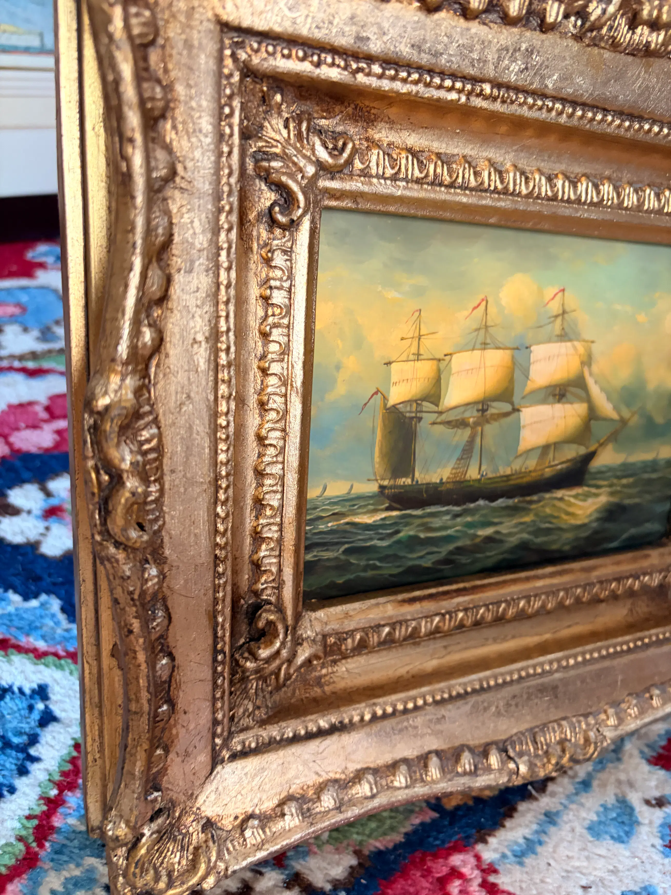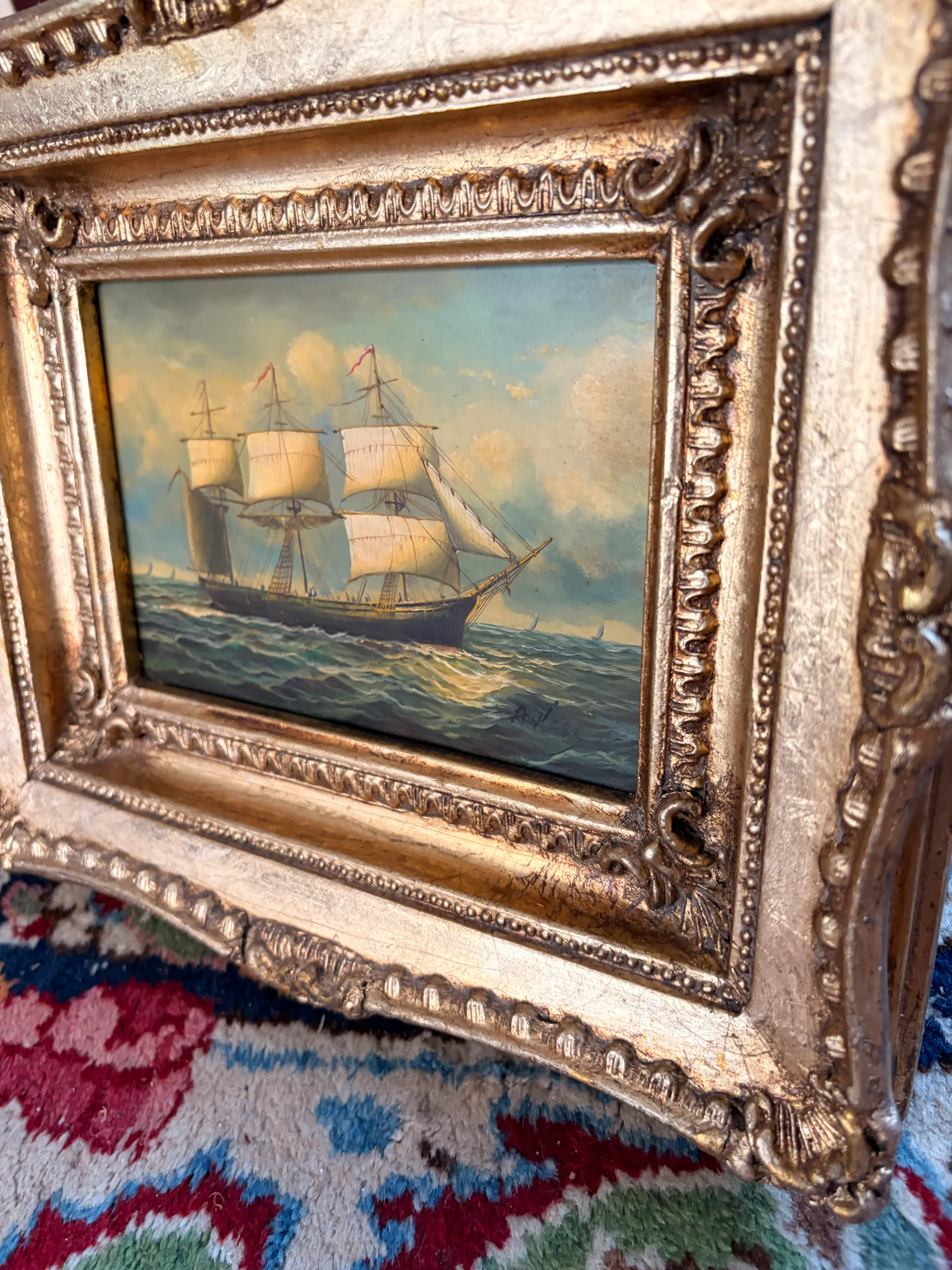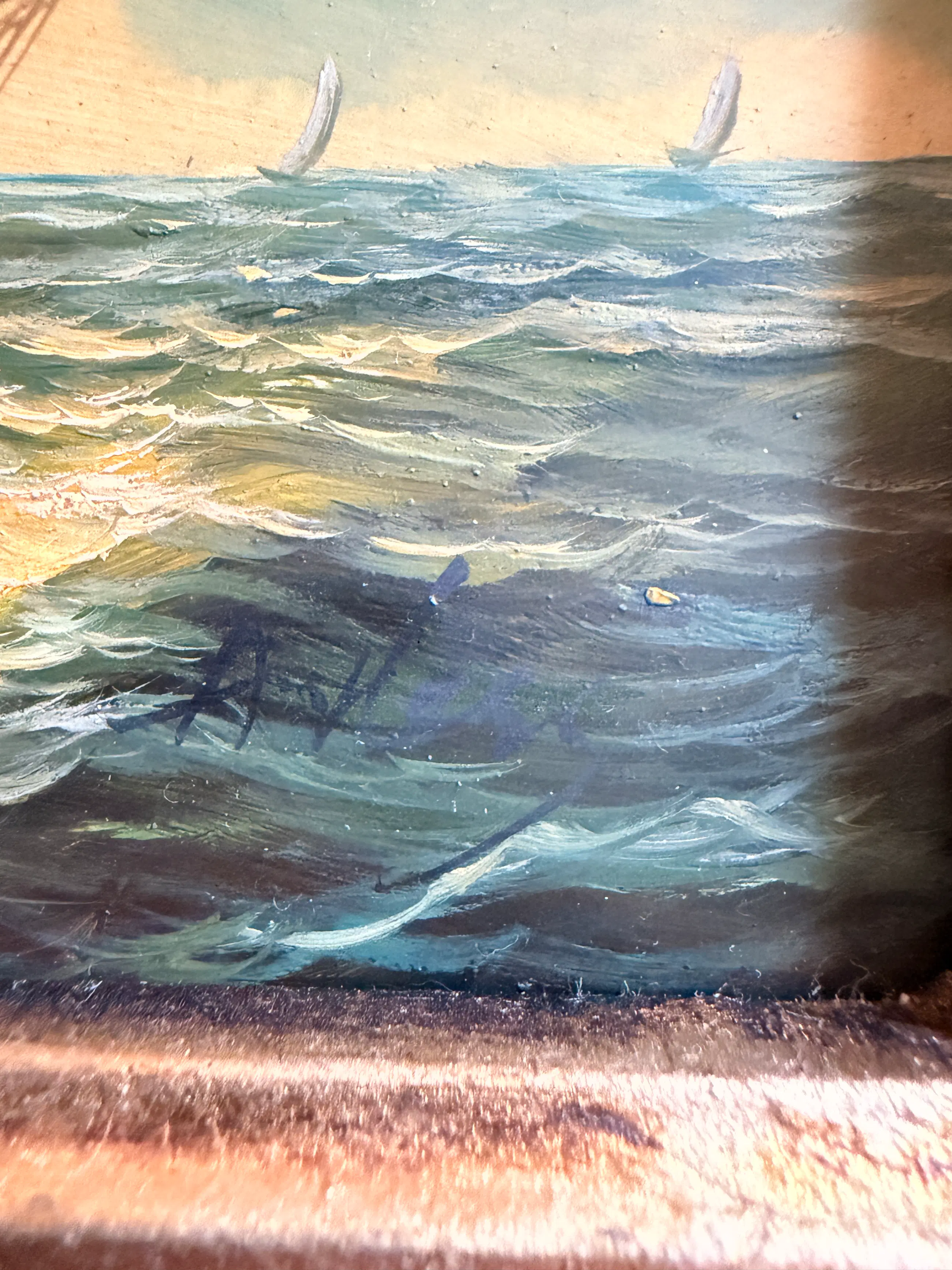 Een handgesigneerd kunstwerk van Albert Hess. Certificaat van originaliteit op de achterkant te vinden. Zee uitzicht met zeilboot. Olieverf op canvas, met kader inclusief.