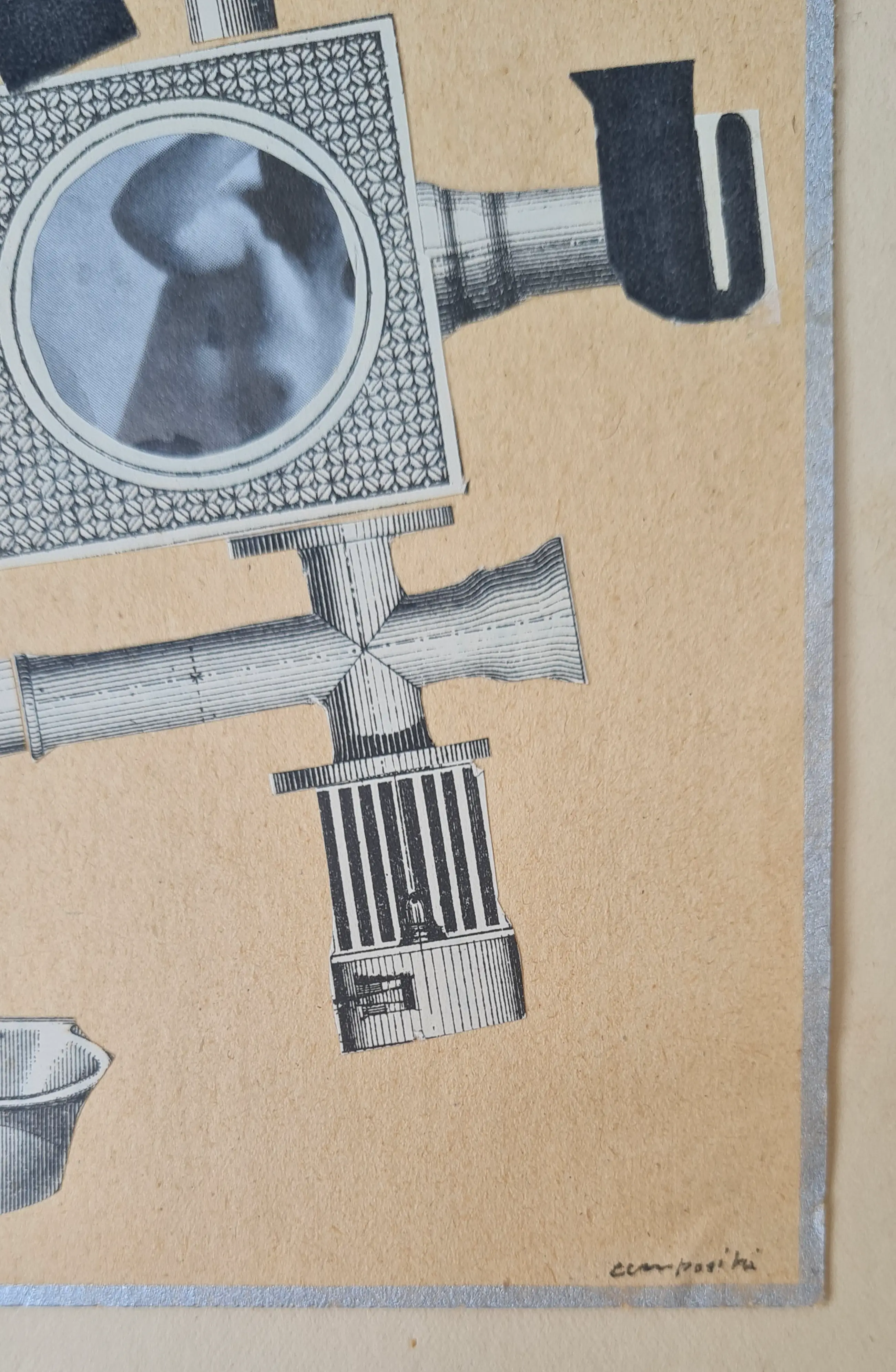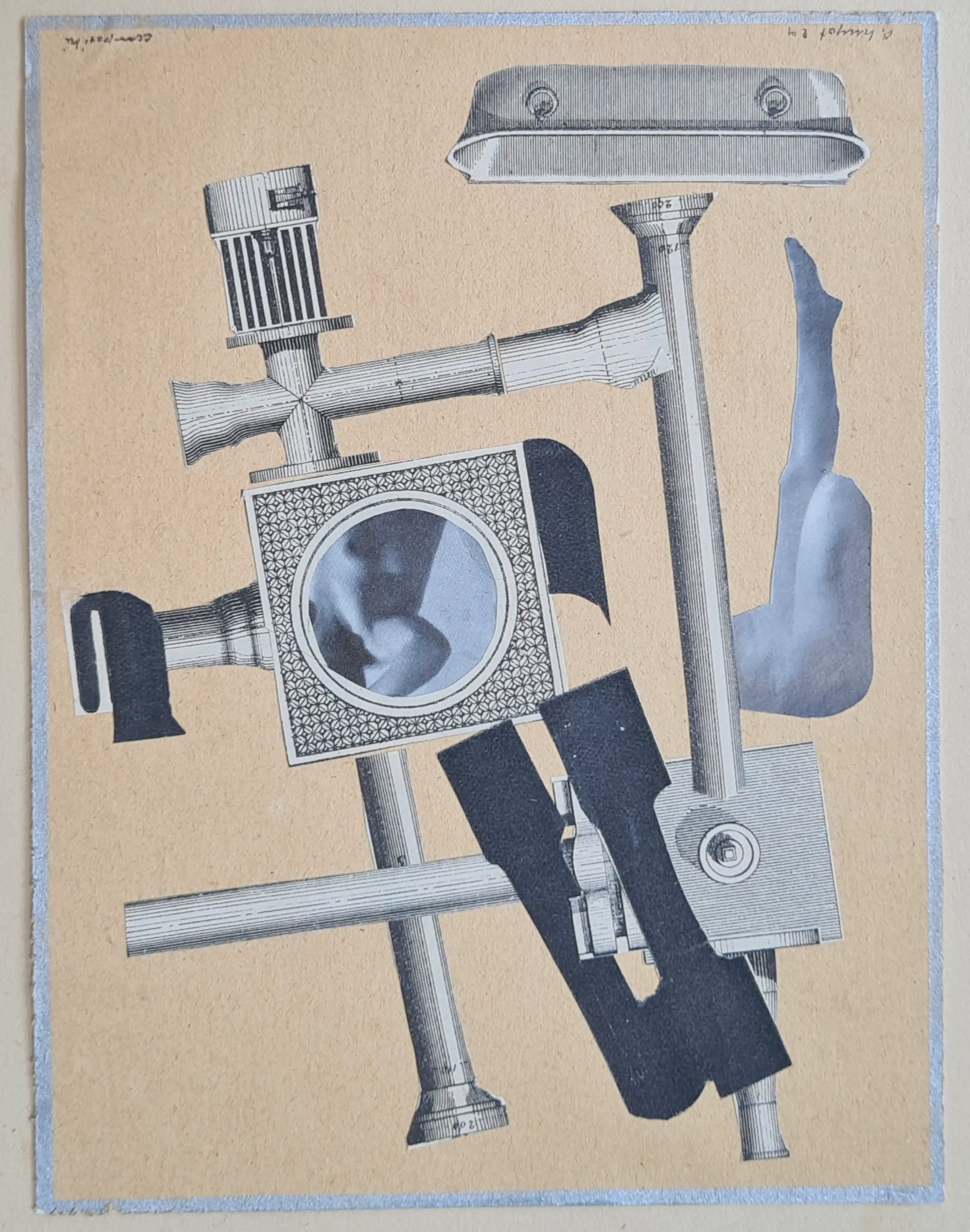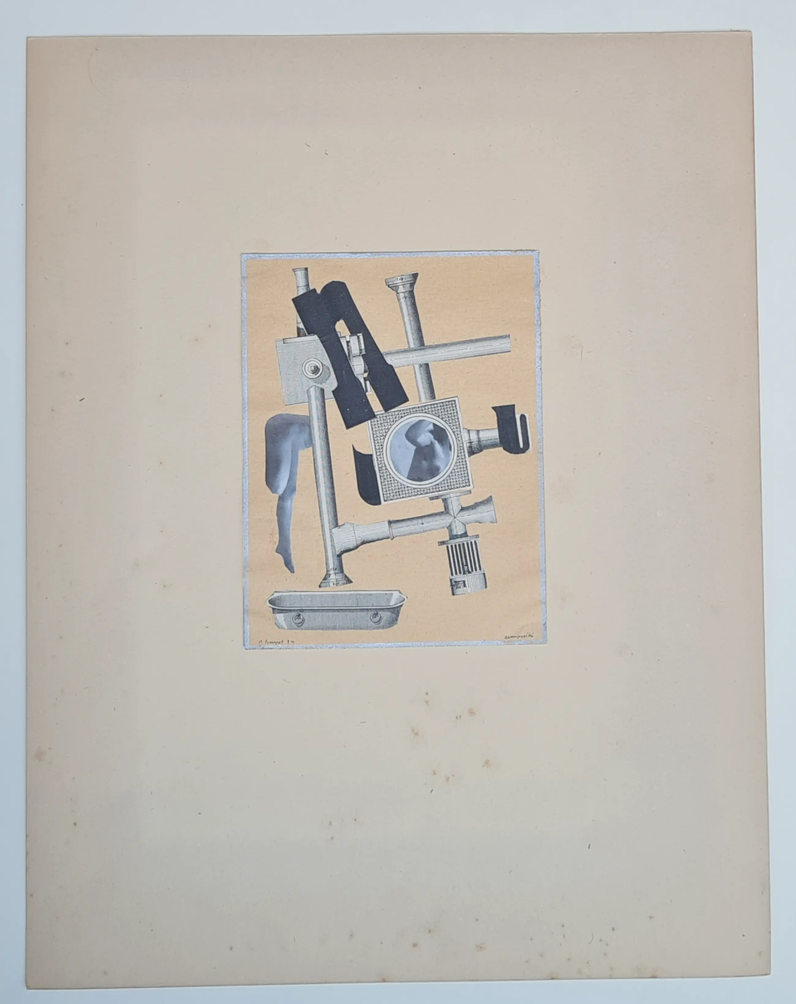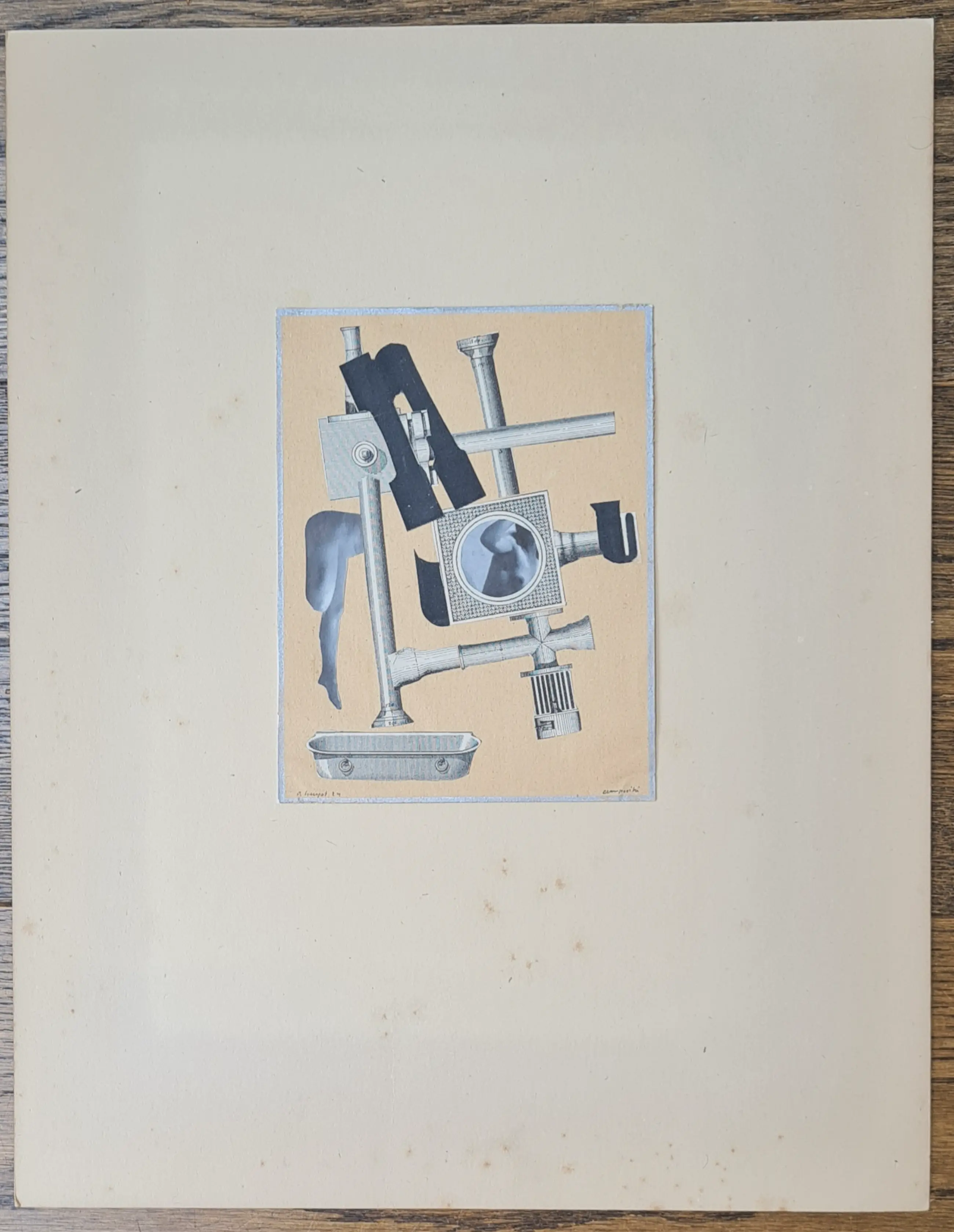 Leuke en vroege collage van Albert Huyot, voluit gesigneerd en gedateerd in pen.