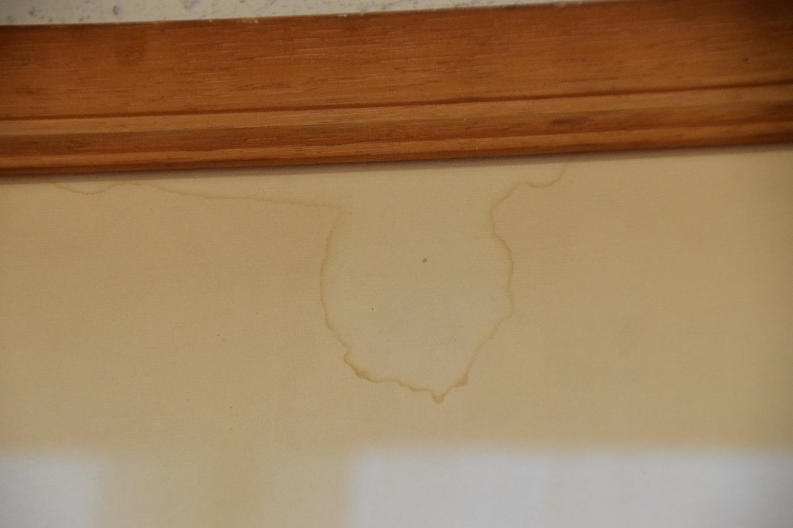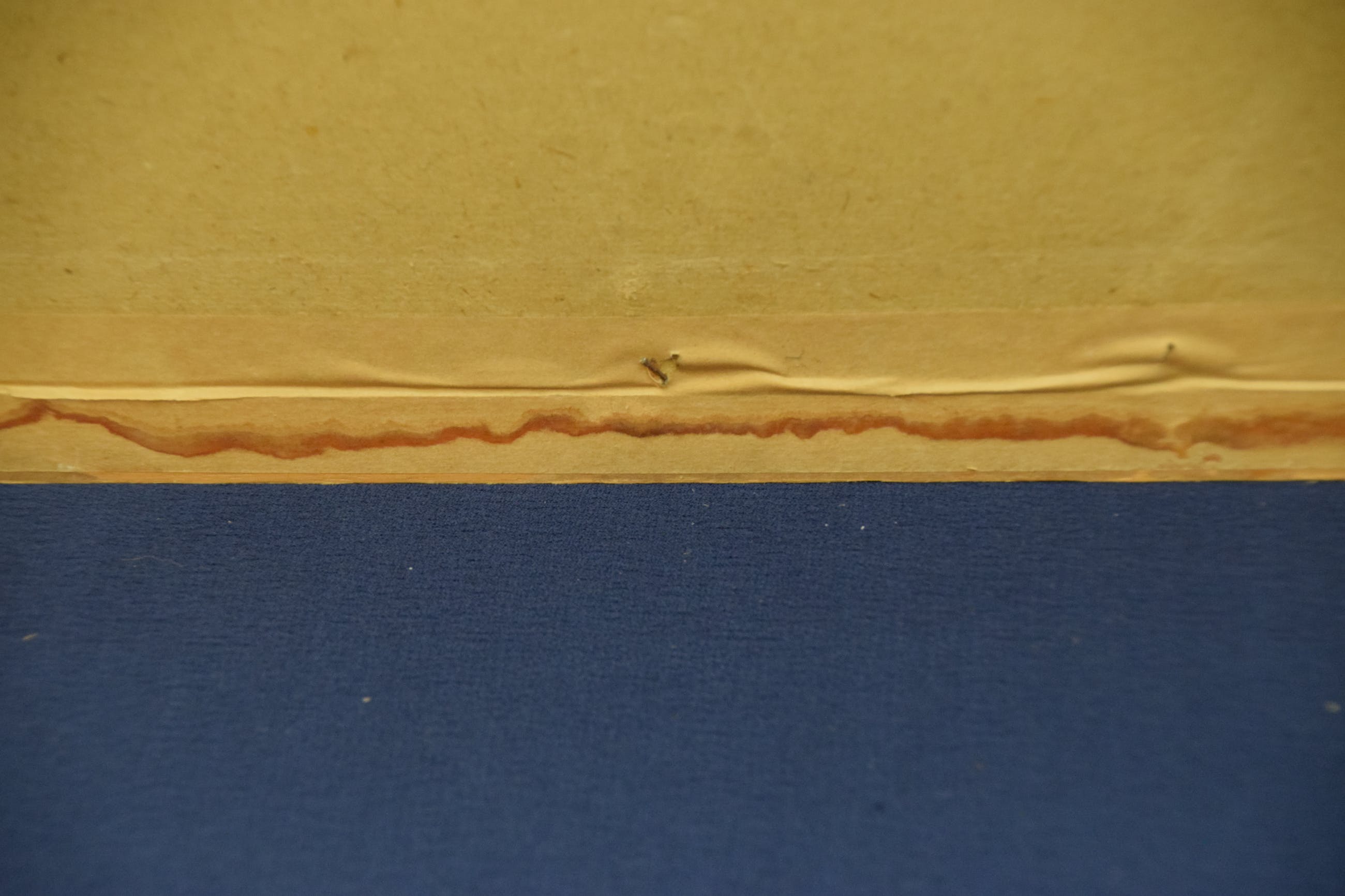 | Er zitten een aantal bruine vlekken in het papier. Het papier is gebobbeld. | |