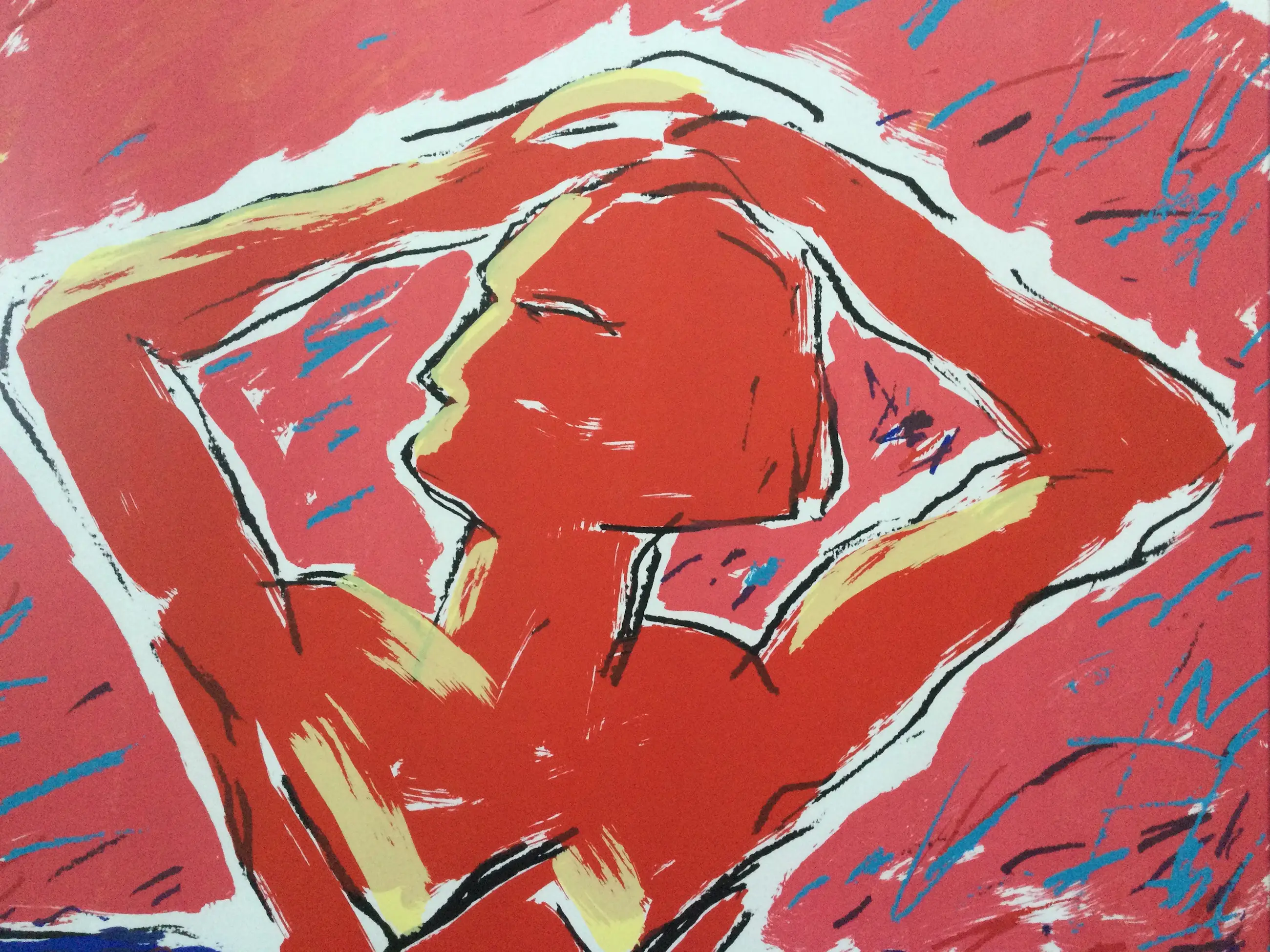 Fraaie kleuren zeefdruk van de in Berlijn woonachtige Zwitserse kunstenaar Albert Merz (1942)