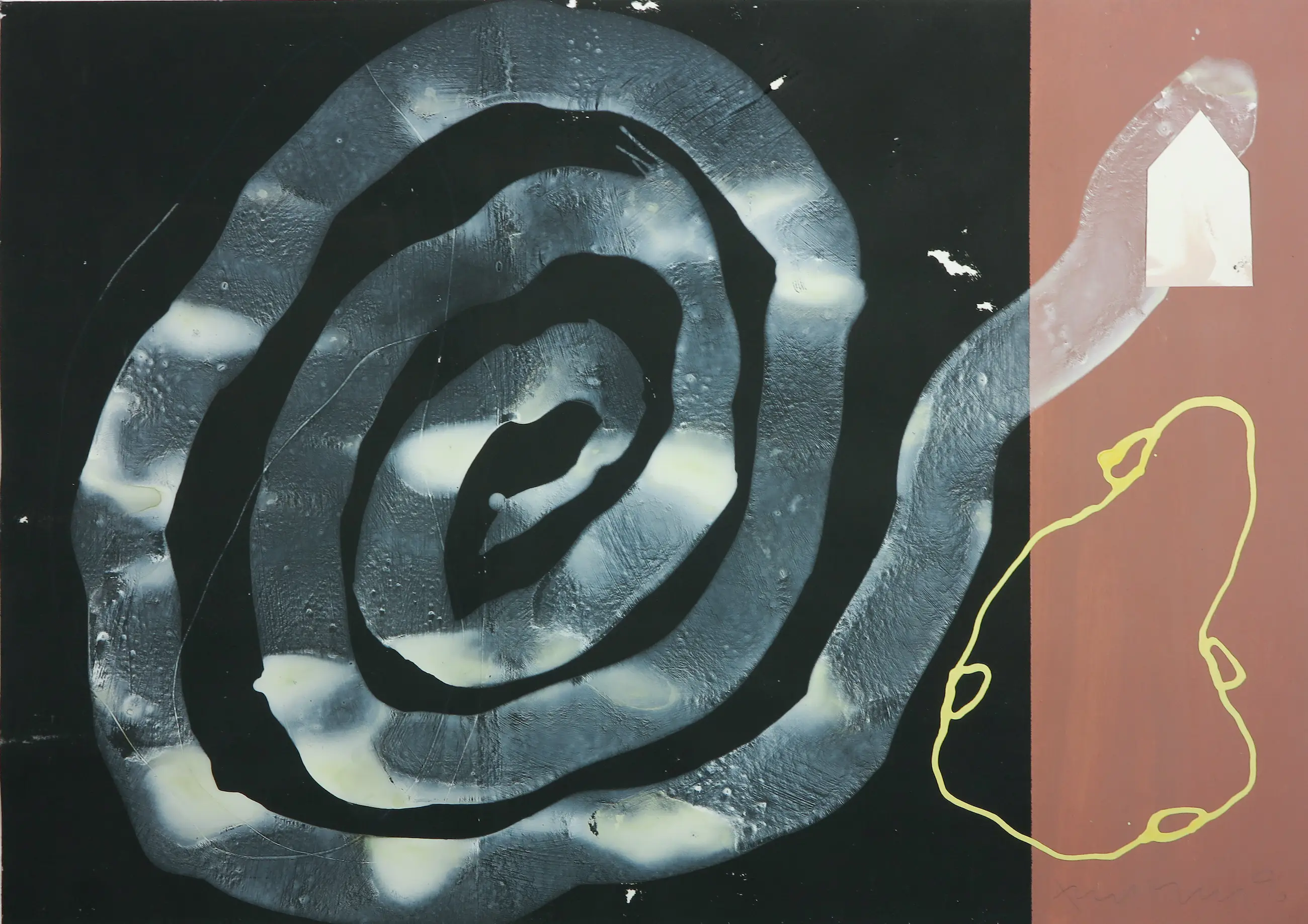 | De staat van het tweede werk is matig aangezien het werk beschadigd is. De zwarte kleur van de achtergrond is op verschillende plaatsen afgescheurd. | |||||||||||