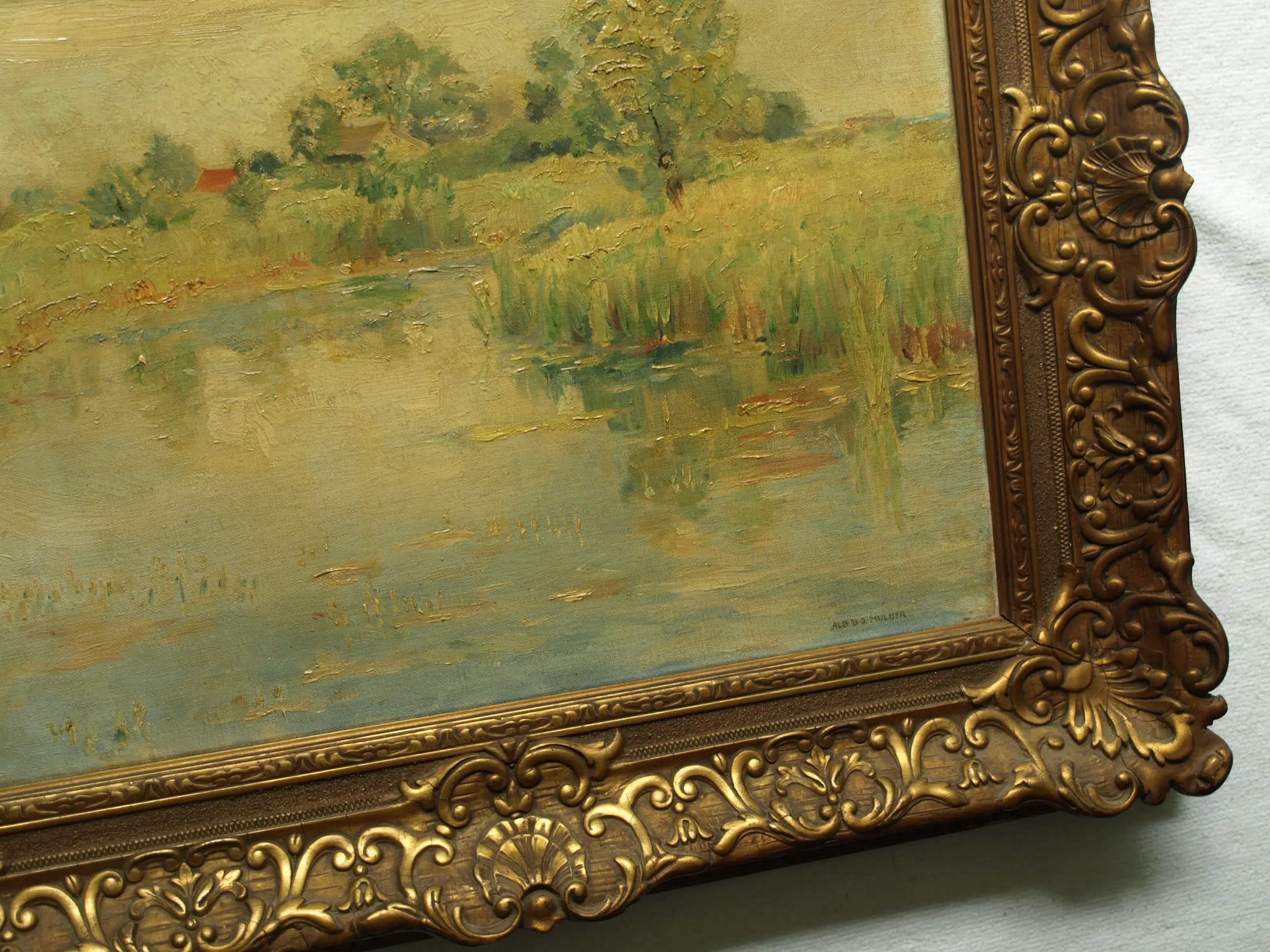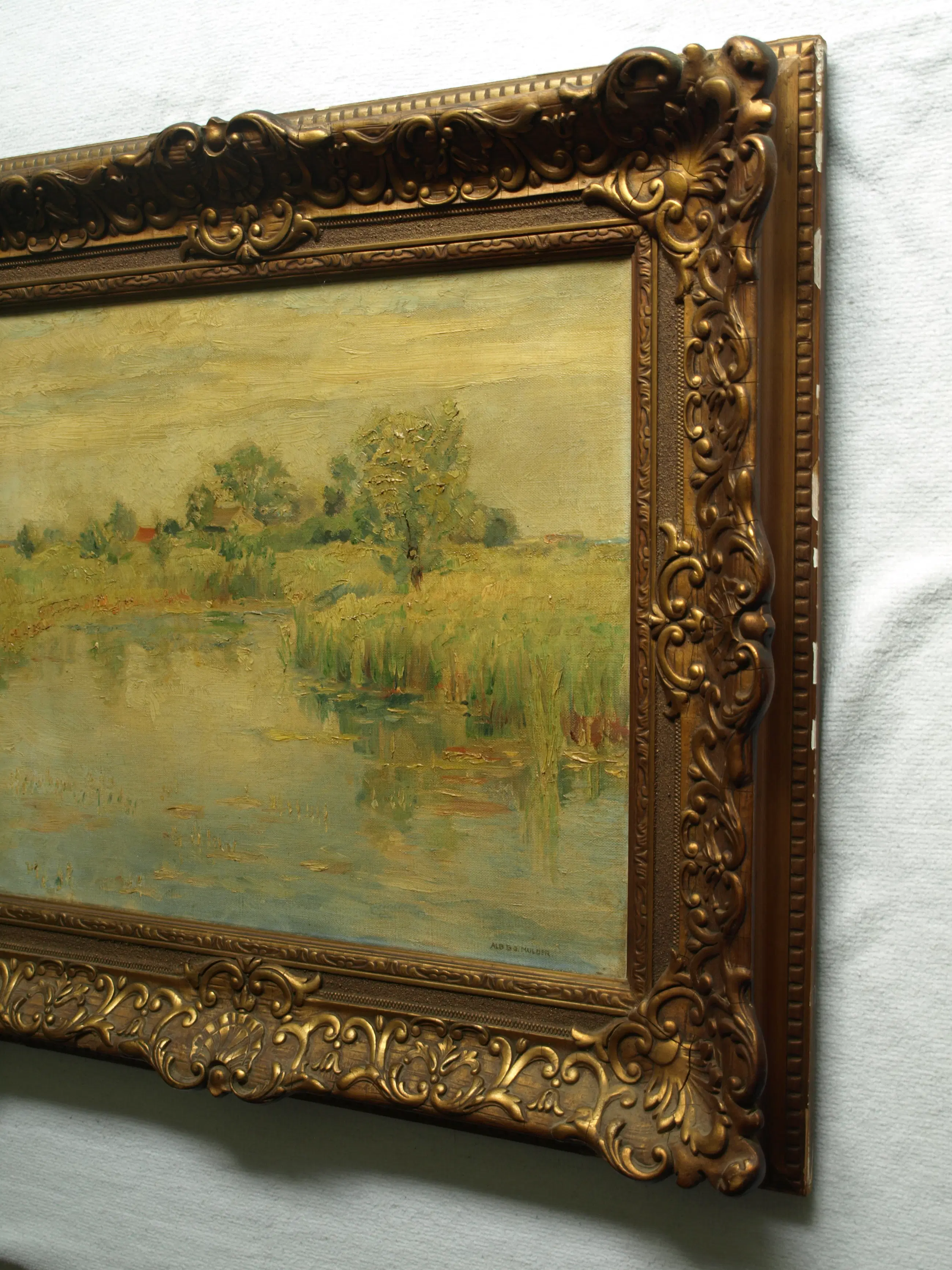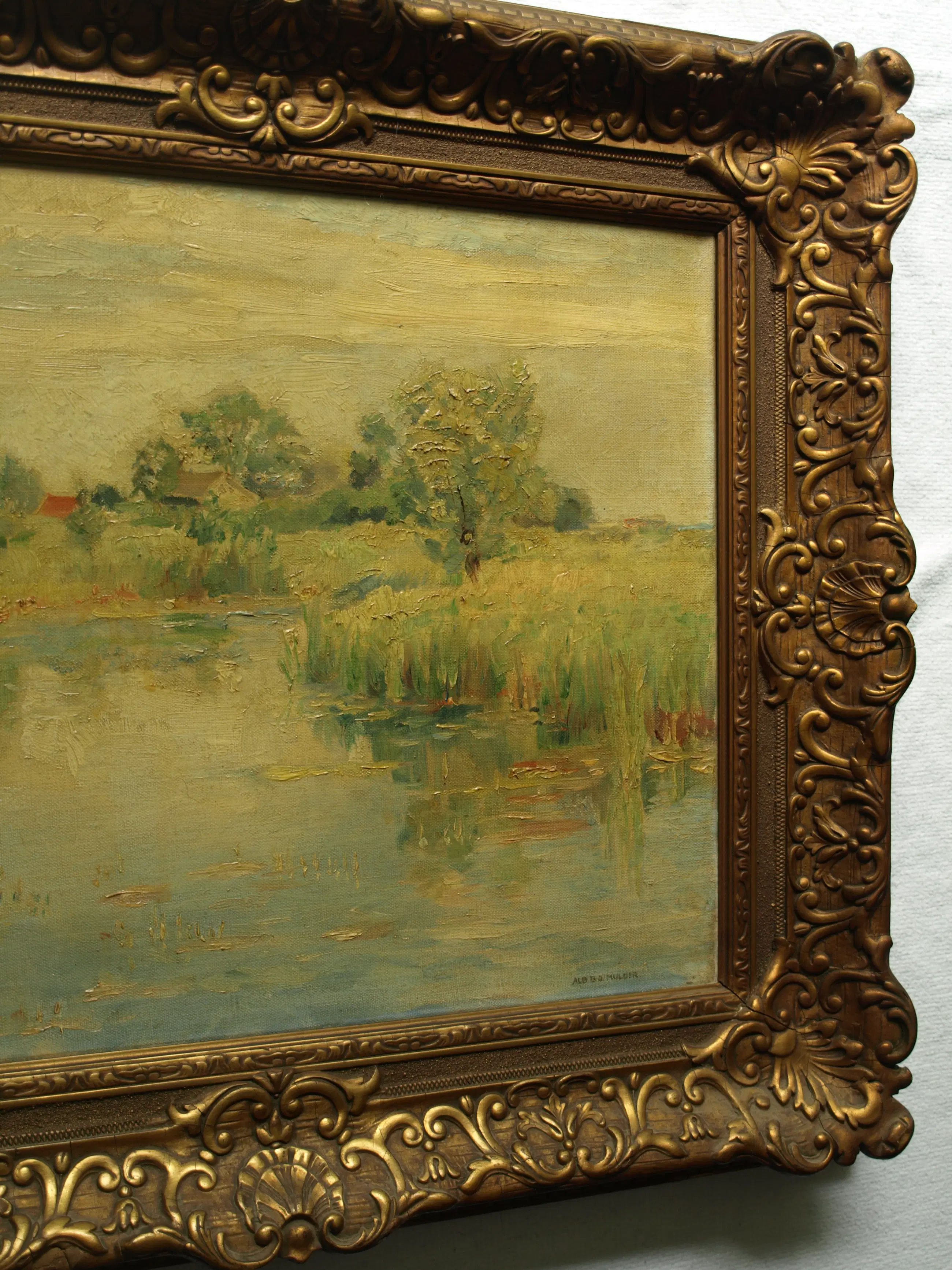 Een schilderij van de Nederlandse kunstenaar Albert Mulder (1889-1987). -Techniek: Olieverf op doek, opgespannen op een houten spieraam en ingelijst in een houten lijst met sierrand. -Gesigneerd rechtsonder. -Afmetingen: Lijst, 60 x 70 x 6 cm. Spieraam, 40 x 50 cm. Beeld, 39 x 49 cm. -Herkomst: Uit een inboedel. -Conditie: In goede staat met ouderdomssporen en oppervlaktevuil. De lijst heeft slijtplekken en heeft beschadigingen aan de rand. Zie ook de foto’s voor een eigen indruk. Kan zo aan de muur.