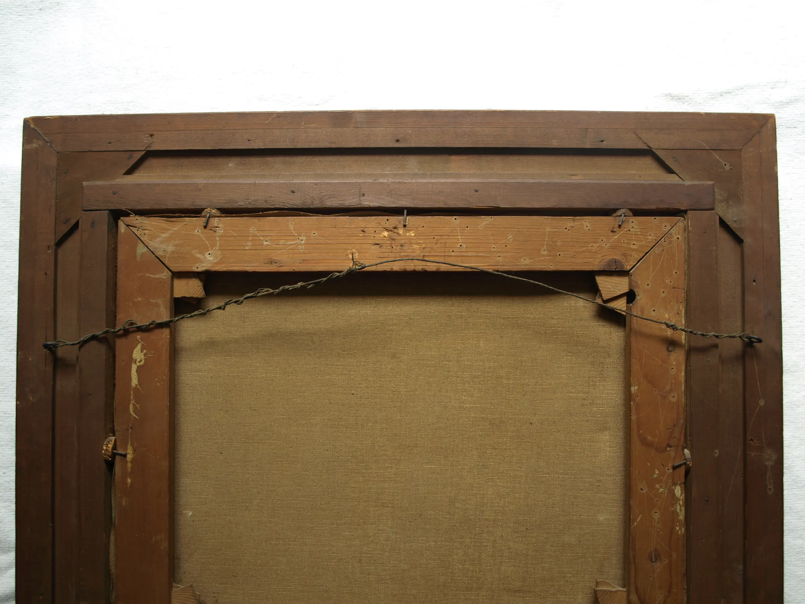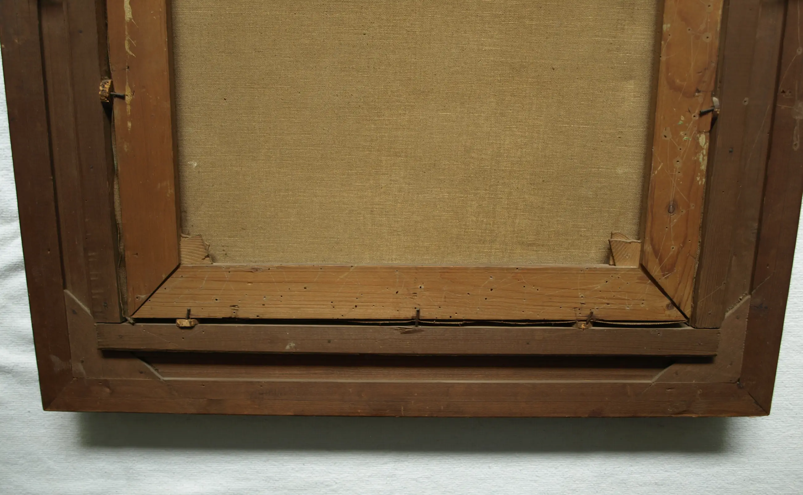 In goede staat met ouderdomssporen en oppervlaktevuil. De lijst heeft slijtplekken en heeft beschadigingen aan de rand.