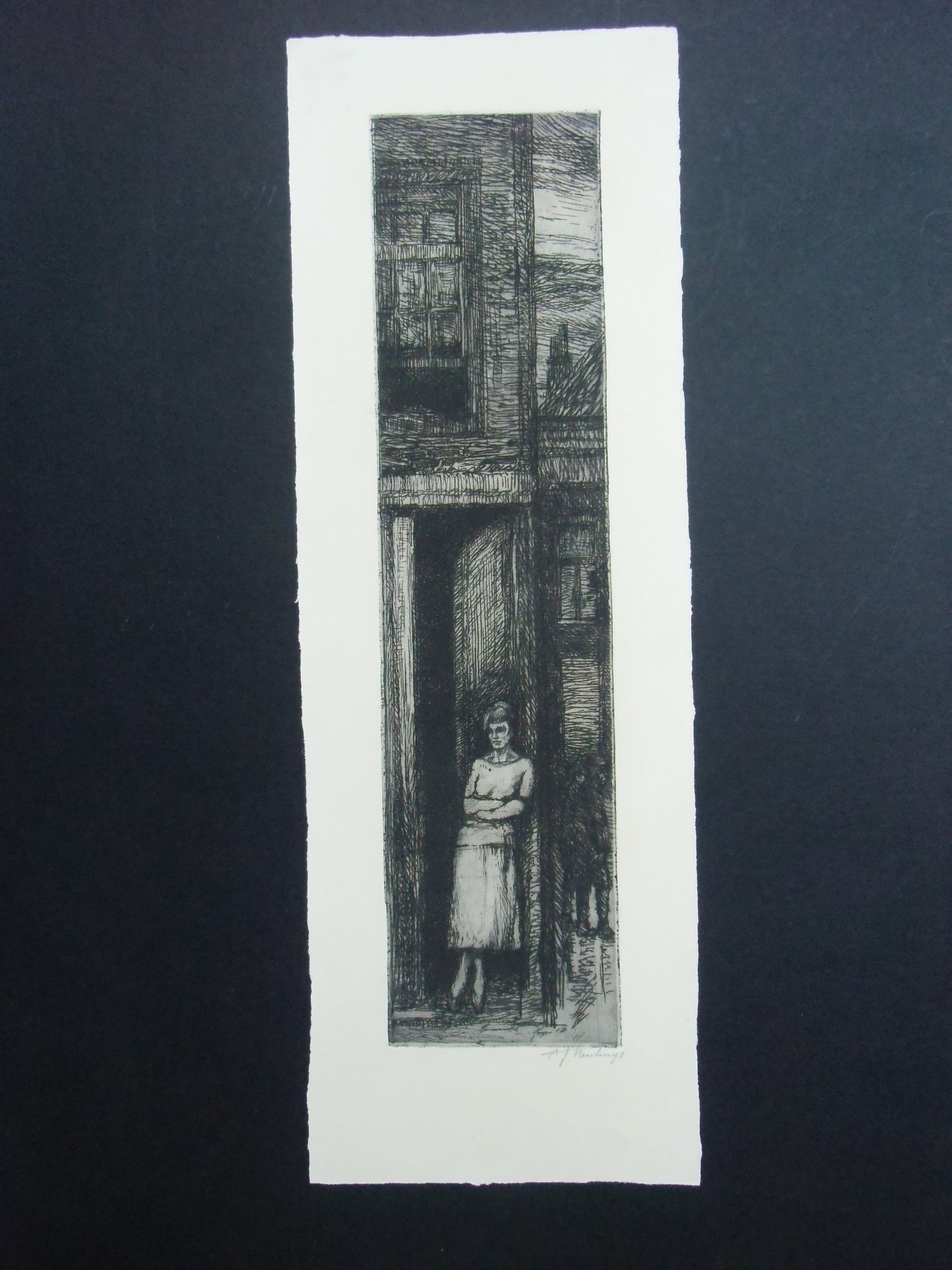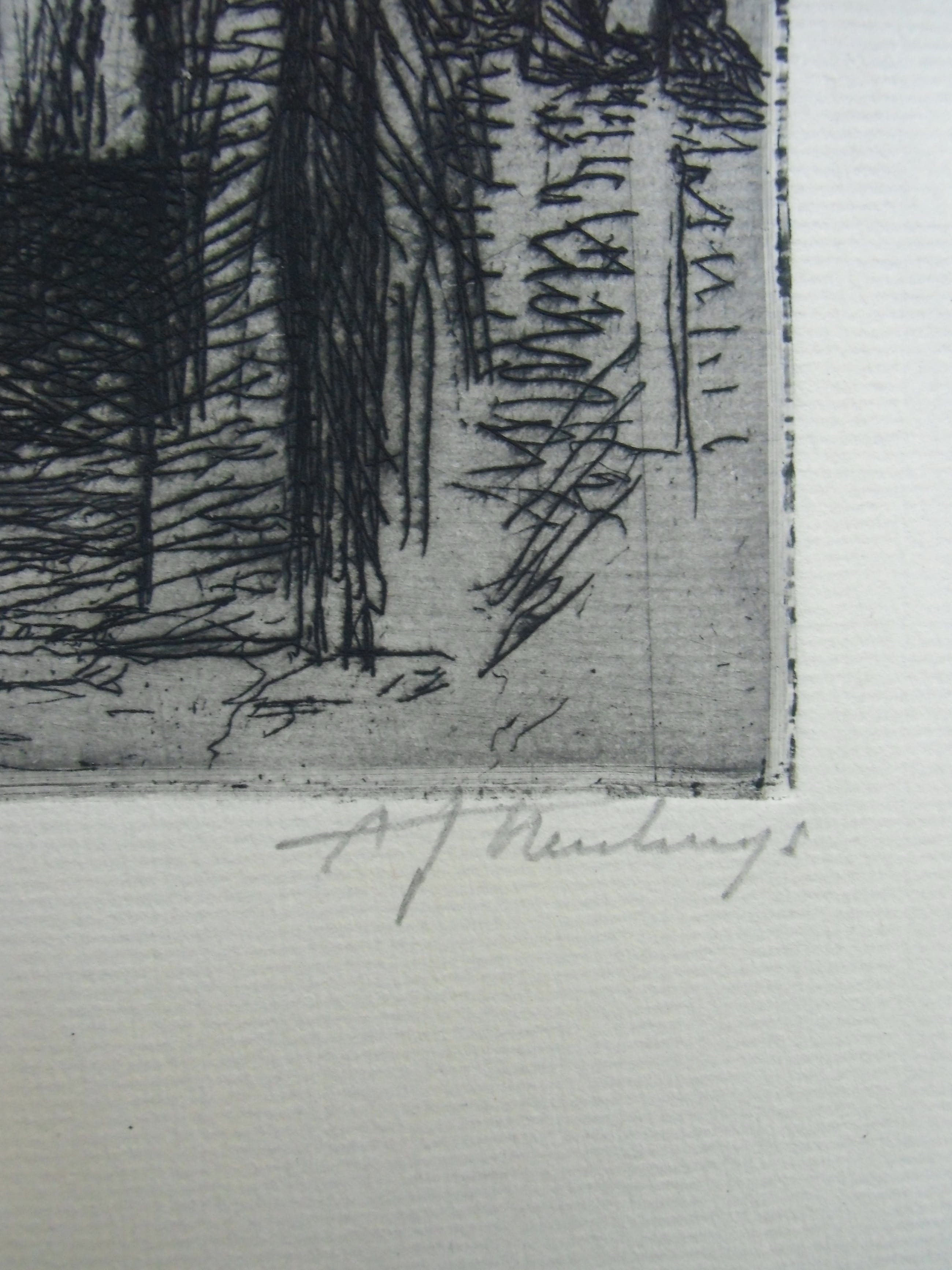 Deze ets te dateren rond 1930. Neuhuys maakte in die tijd vooral haventaferelen, vaak in bijzondere formaten. Deze ets is daarvan een voorbeeld. Gesigneerd met potlood r.o. Ets op geschept papier in zeer goede conditie. Geen passepartout of lijst.