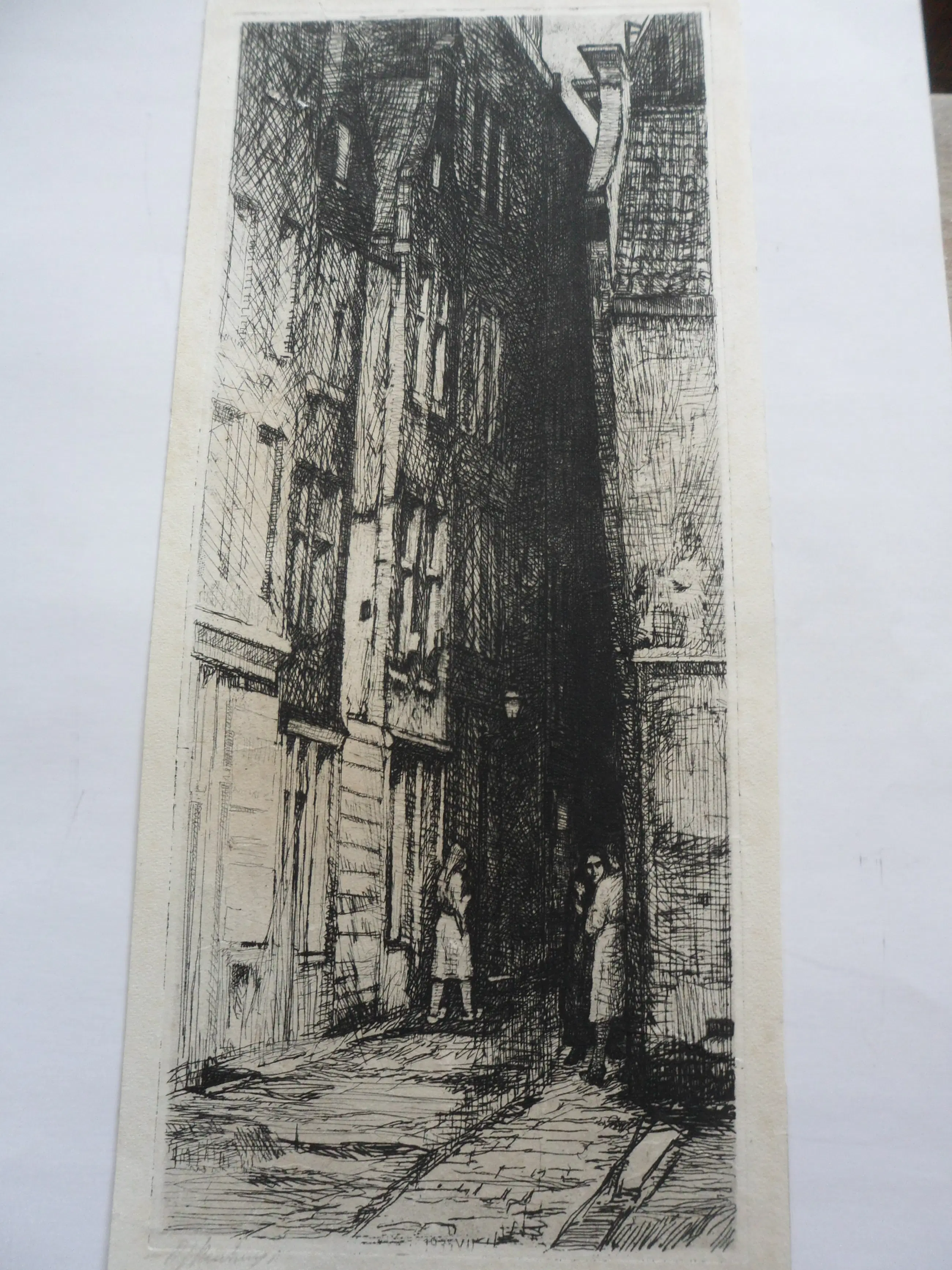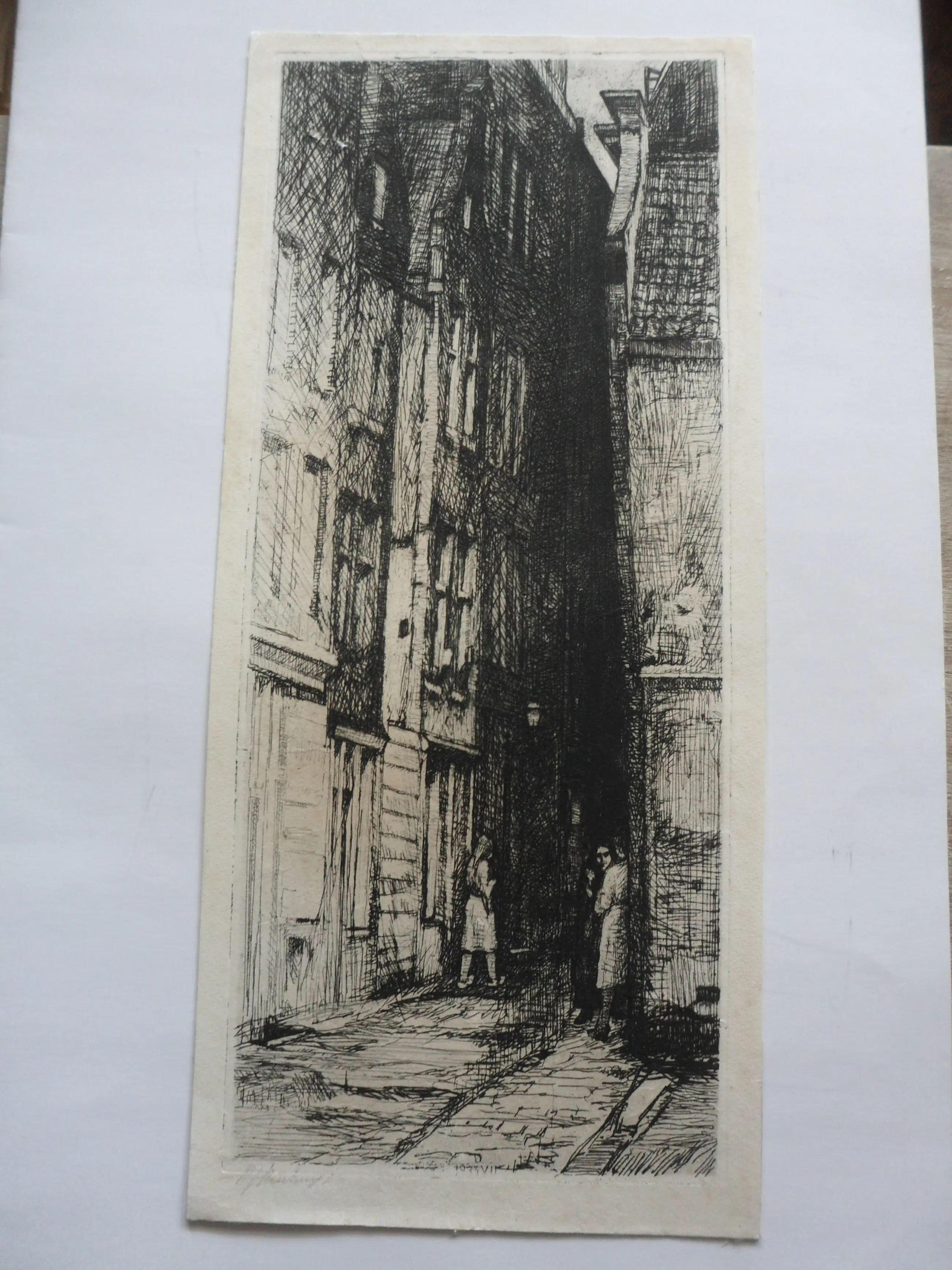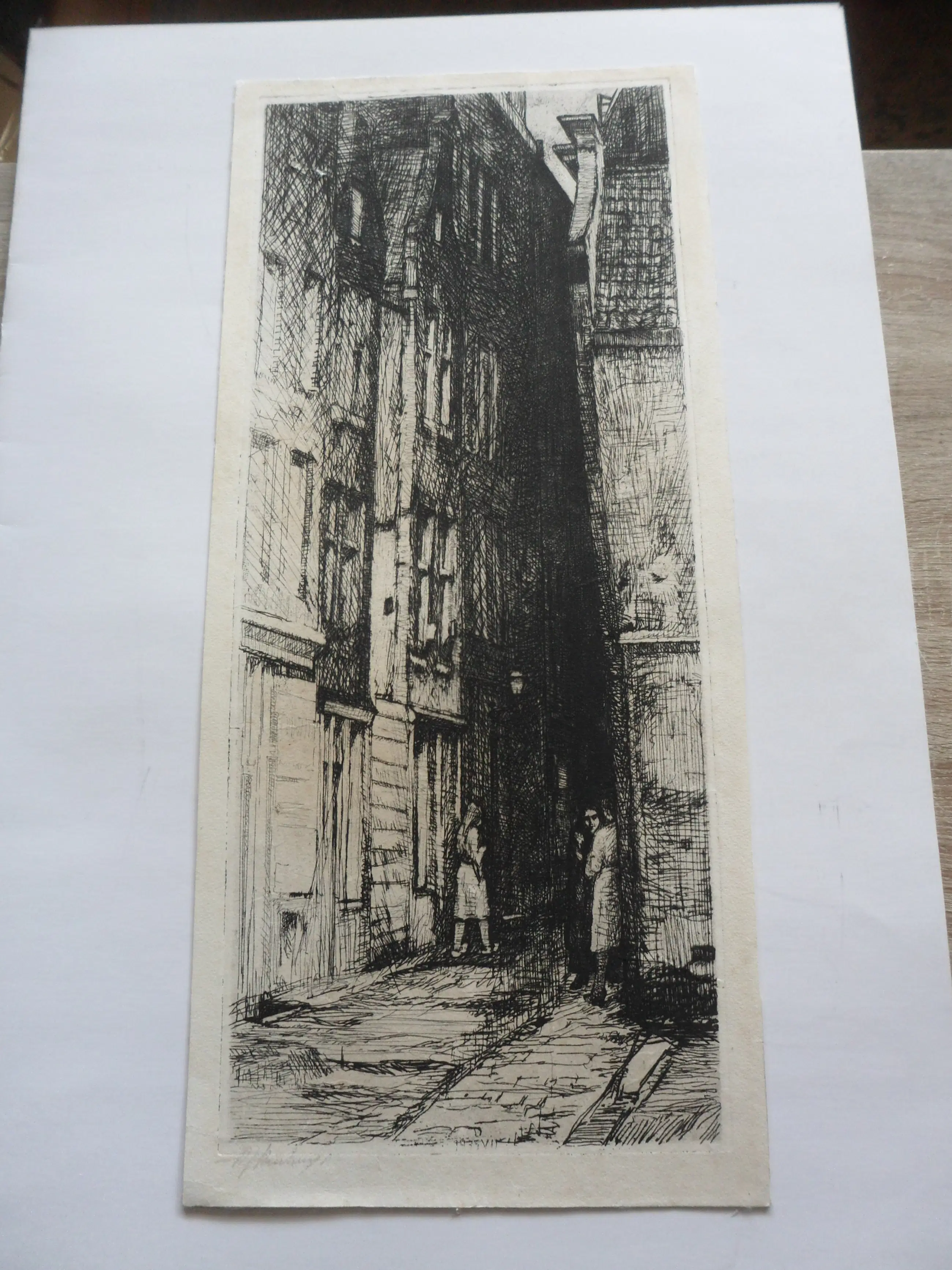 Deze ets met droge naald dateert uit 1935 en verkeert in goede staat. Gesigneerd