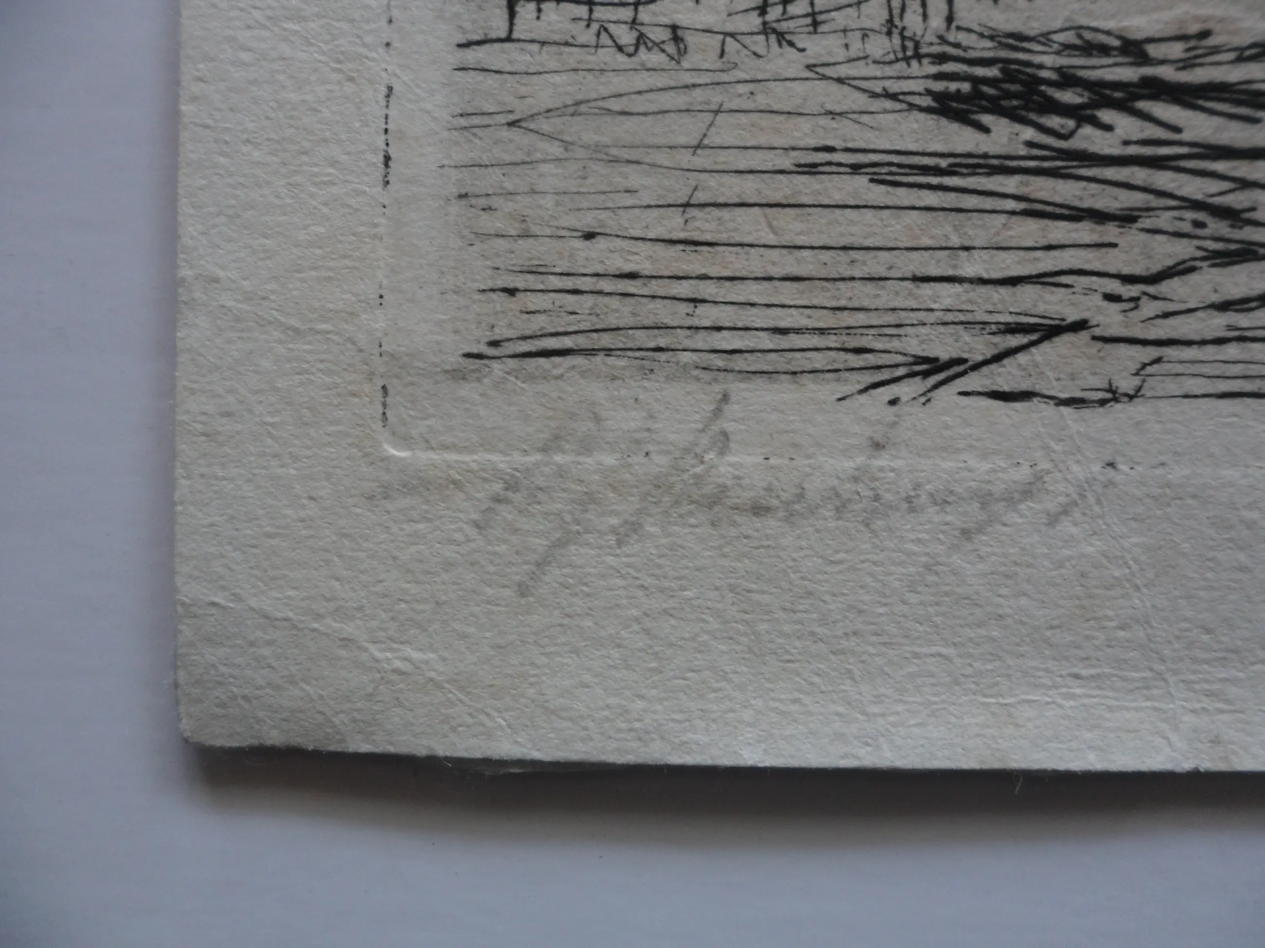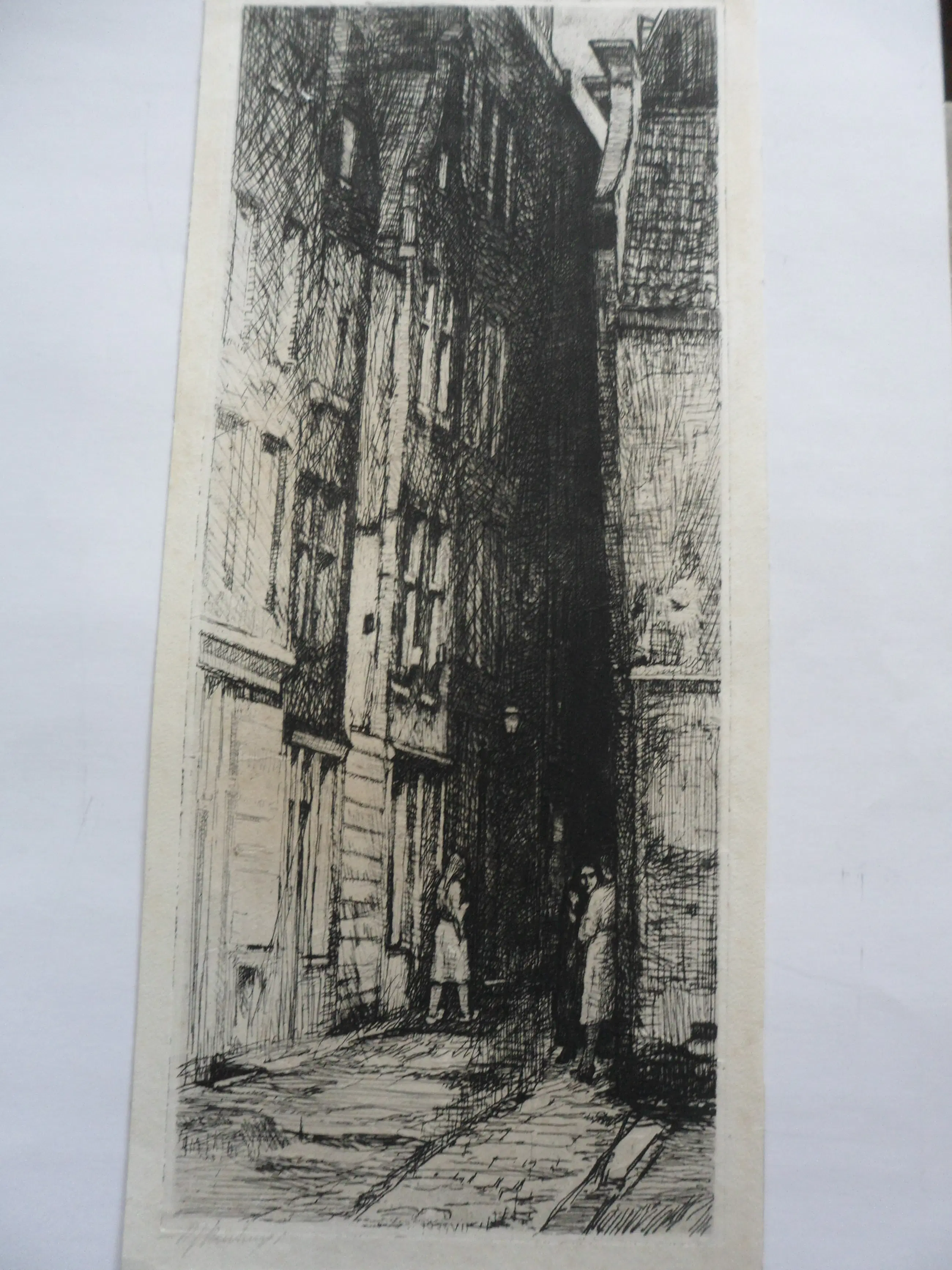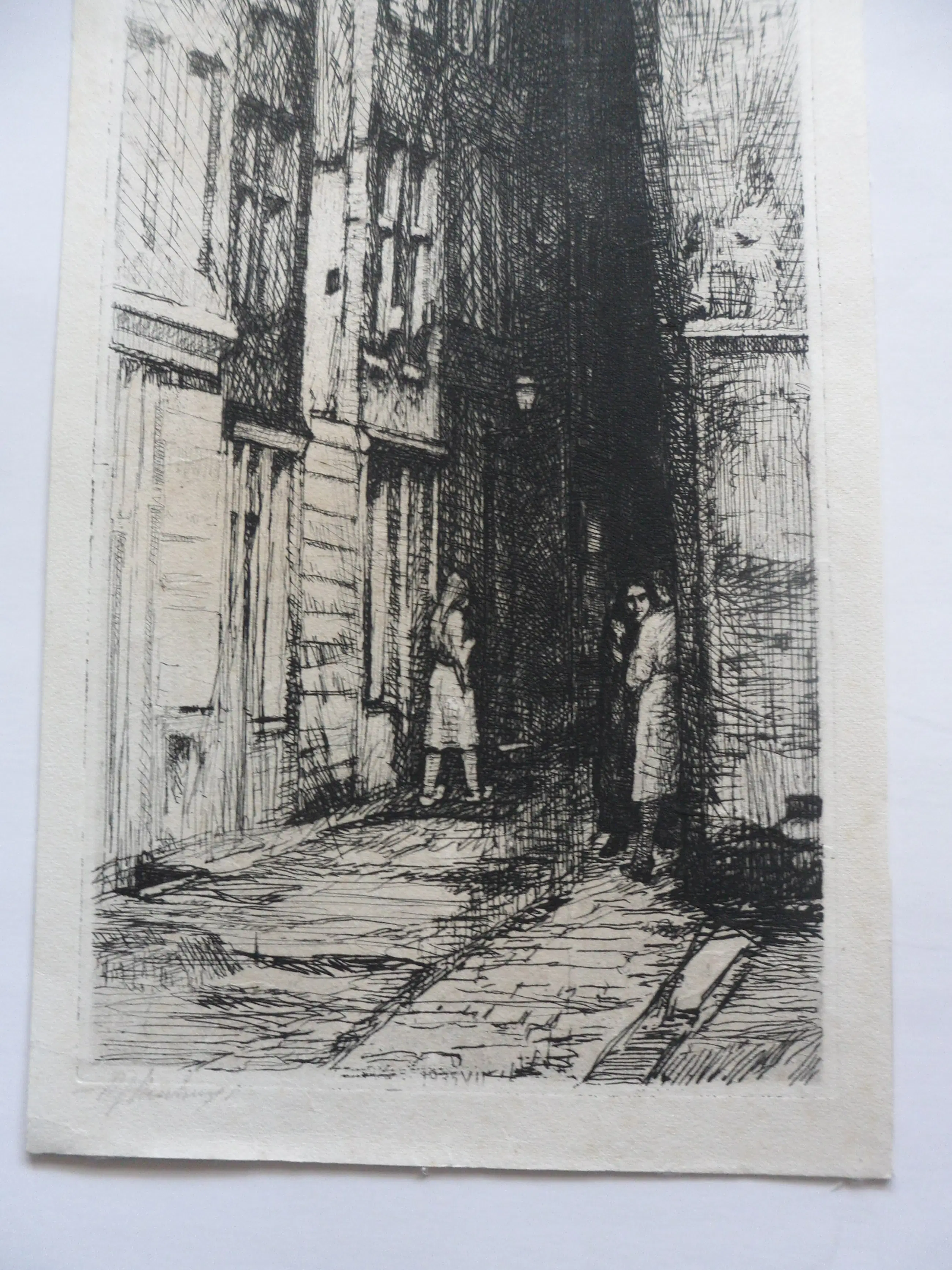 Deze ets met droge naald dateert uit 1935 en verkeert in goede staat. Gesigneerd