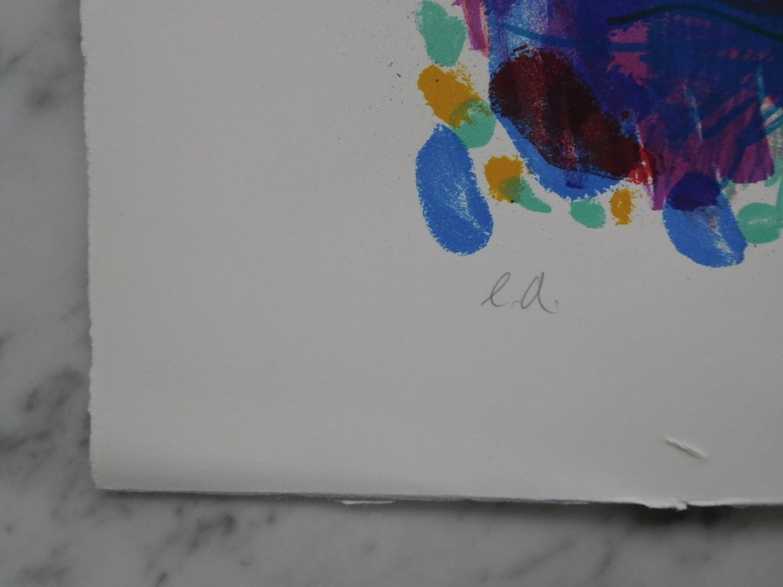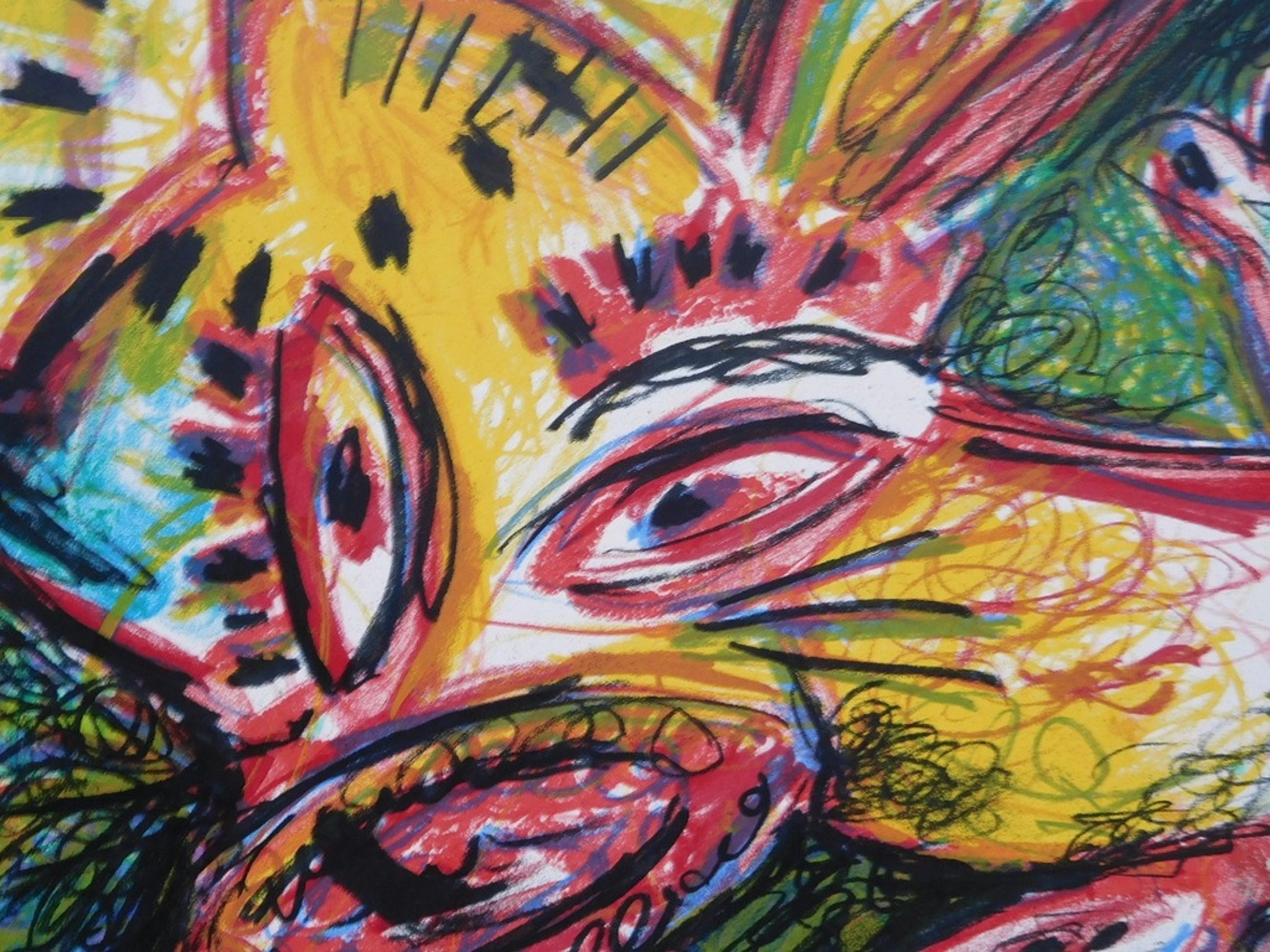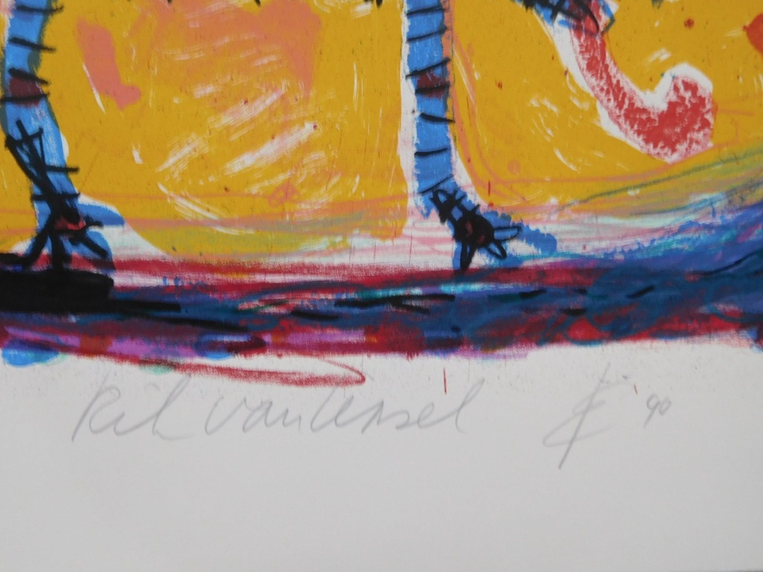 Vrolijke kleurige zeefdruk van Albert Niemeyer en Rik van Iersel. Deze samenwerking kwam tot stand in 1990. Het werk is 76 x 57 cm groot. Het is een "Epreuve d' artiste" (EA) en is door beiden gesigneerd.