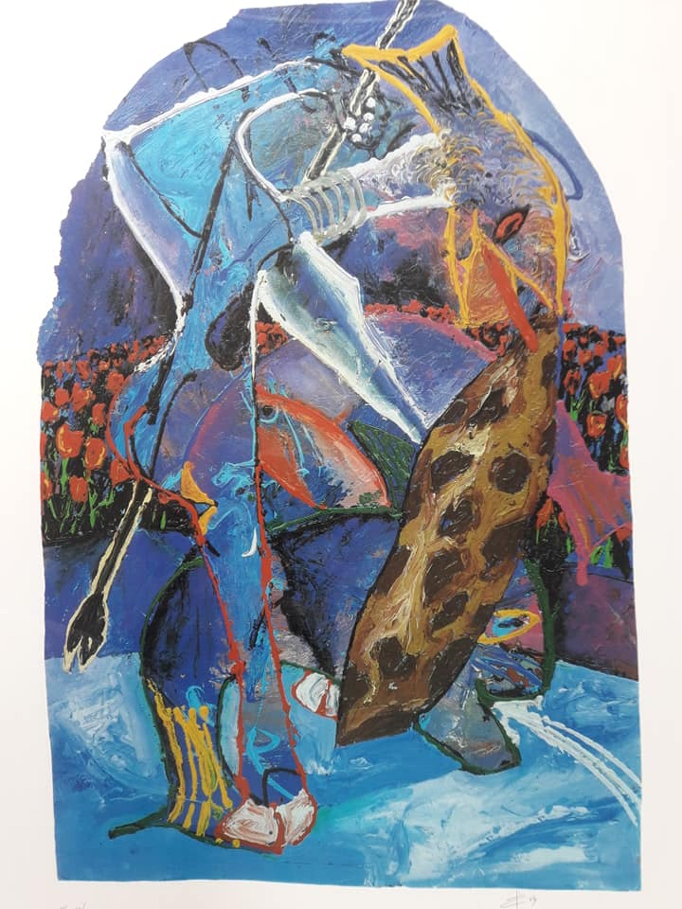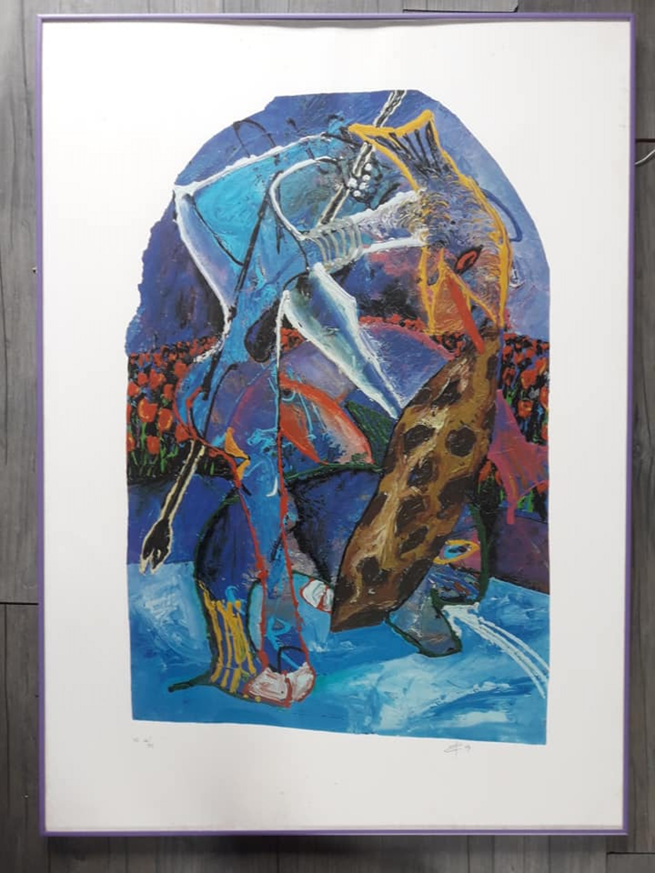 Dit mooie kleurrijke werk kan niet worden opgestuurd door het zeer grote formaat van de glasplaat. Het kan worden opgehaald of gebracht door prive koerier.