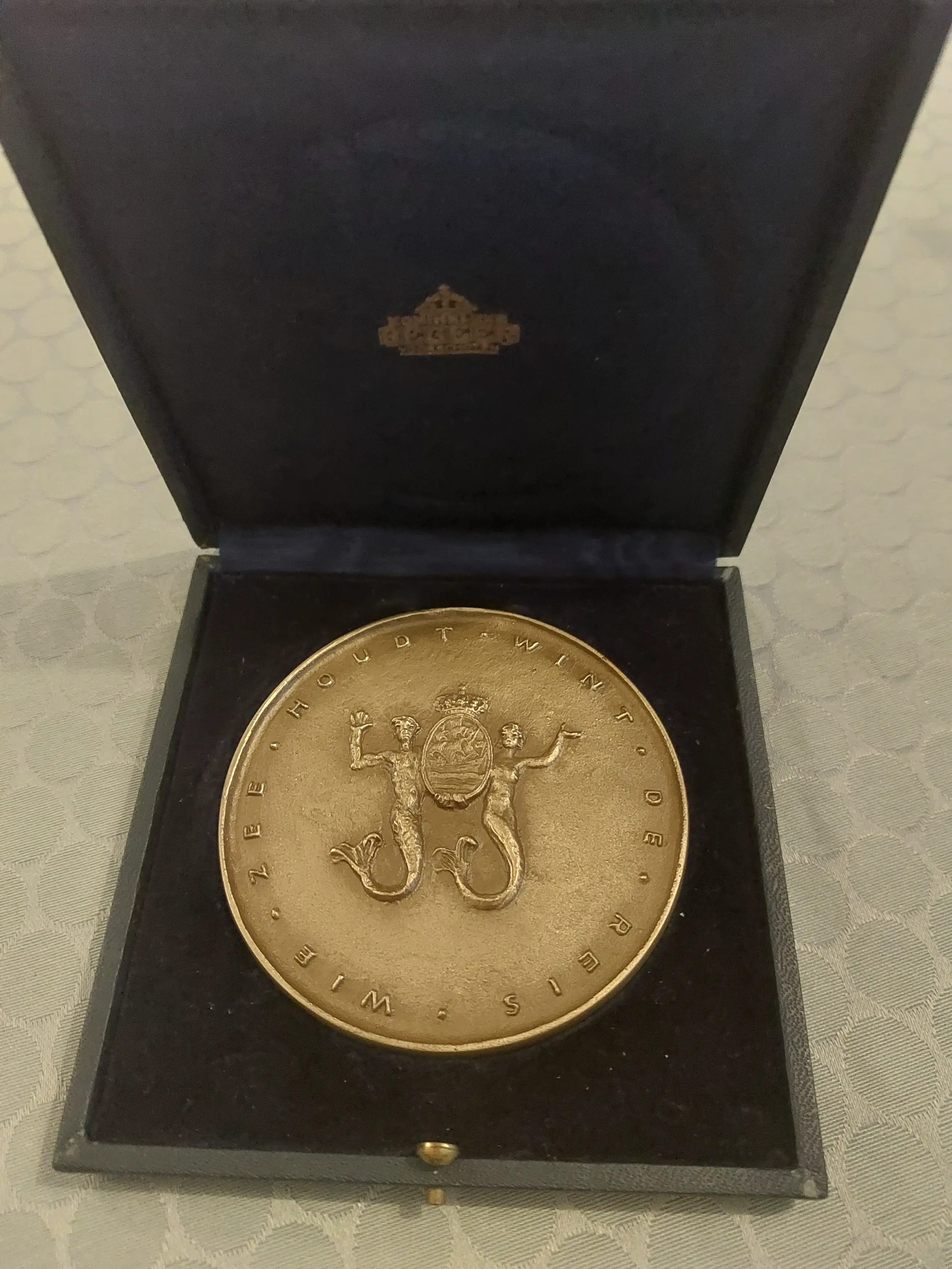 Bijzonderheid! De grote penning van 85MM is allen gegeven aan de Kapiteins van de Firma. Als zodanig een zeer zeldzaam stuk. De ander stukken hebben een diameter van 60MM en zijn geslagen. Deze penning komt met de originele door en omschrijving.