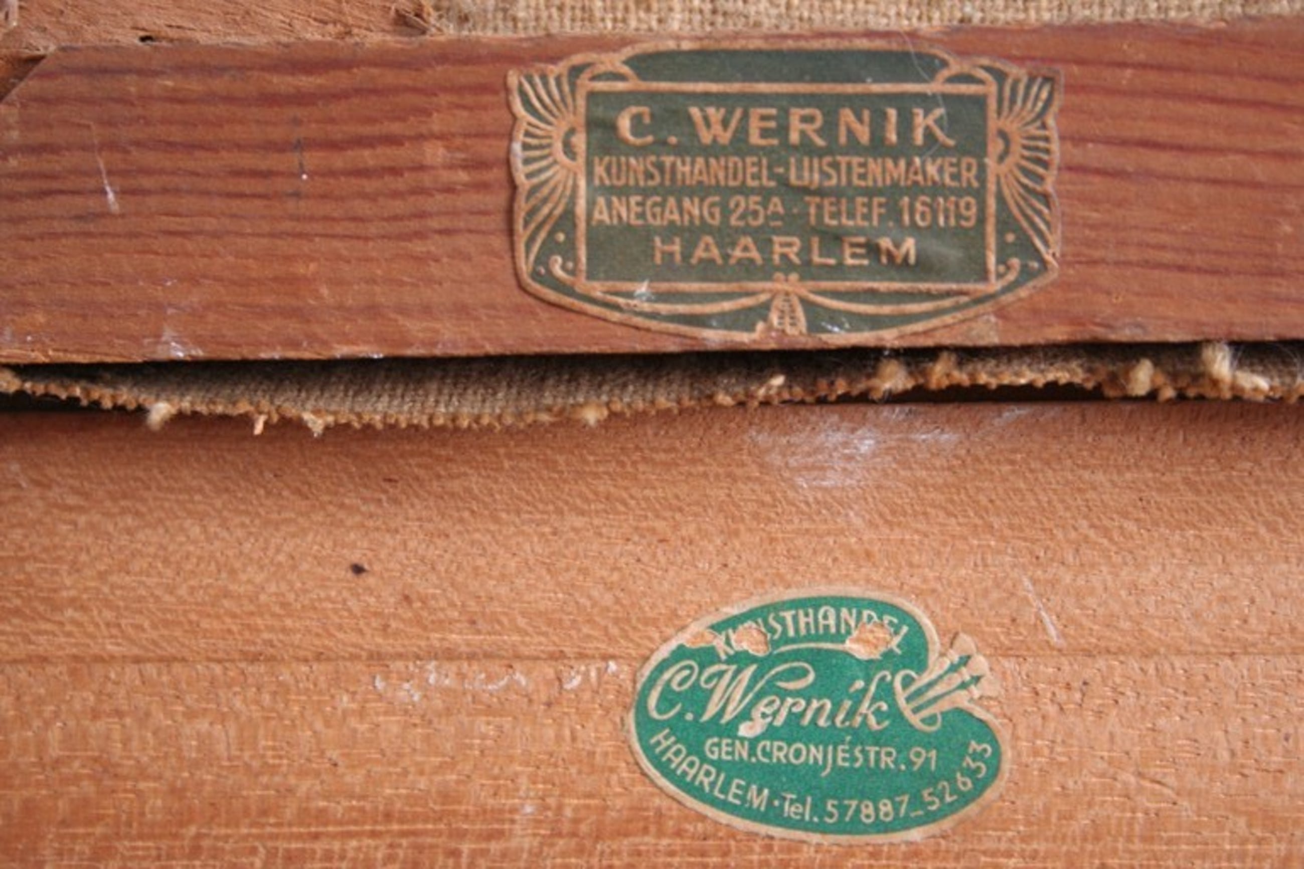 Afmeting schilderij is 60 bij 40 cm. Met lijst 70 bij 50 cm. Aan de achterzijde een sticker van de voormalige kunsthandel Wernik.