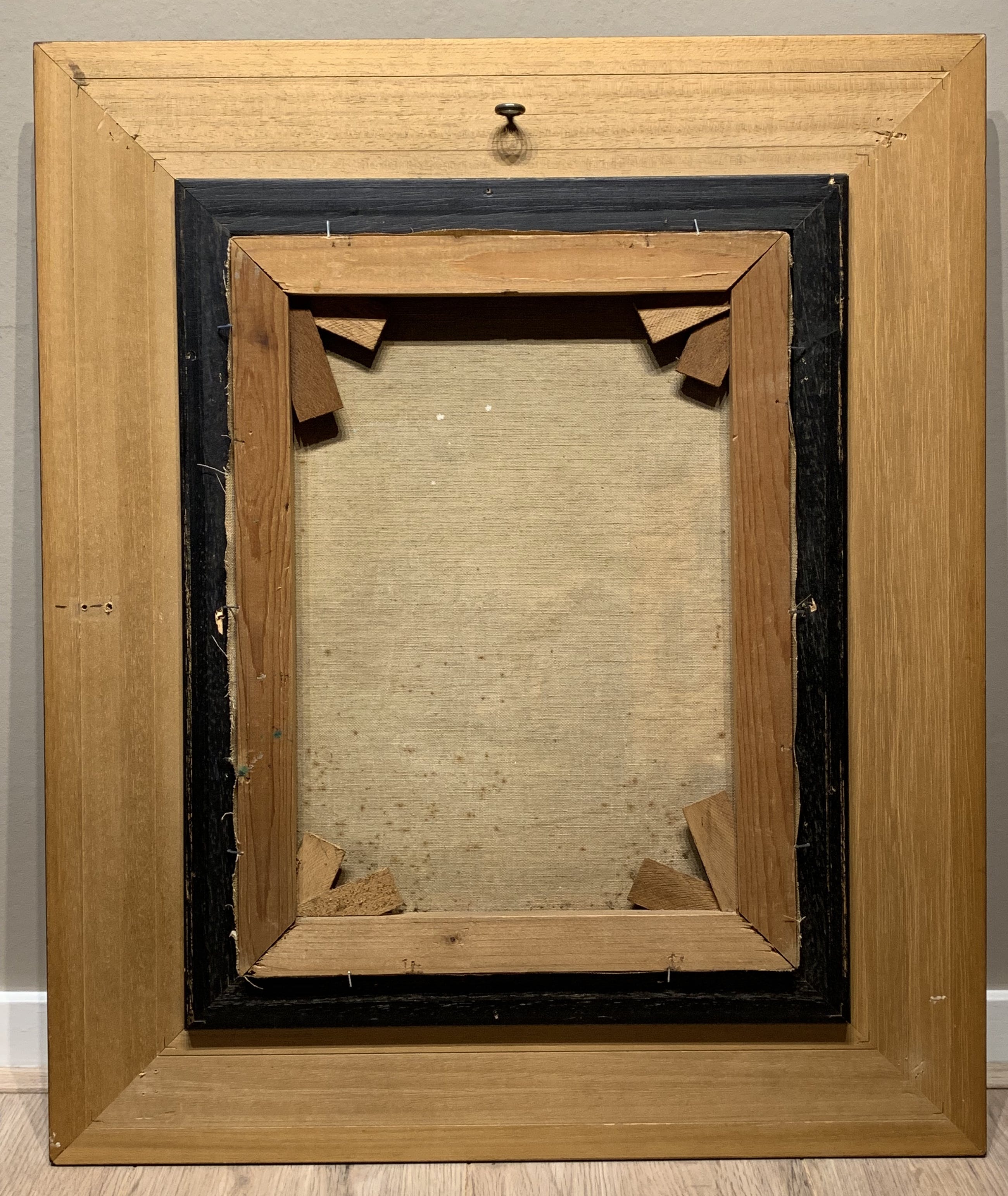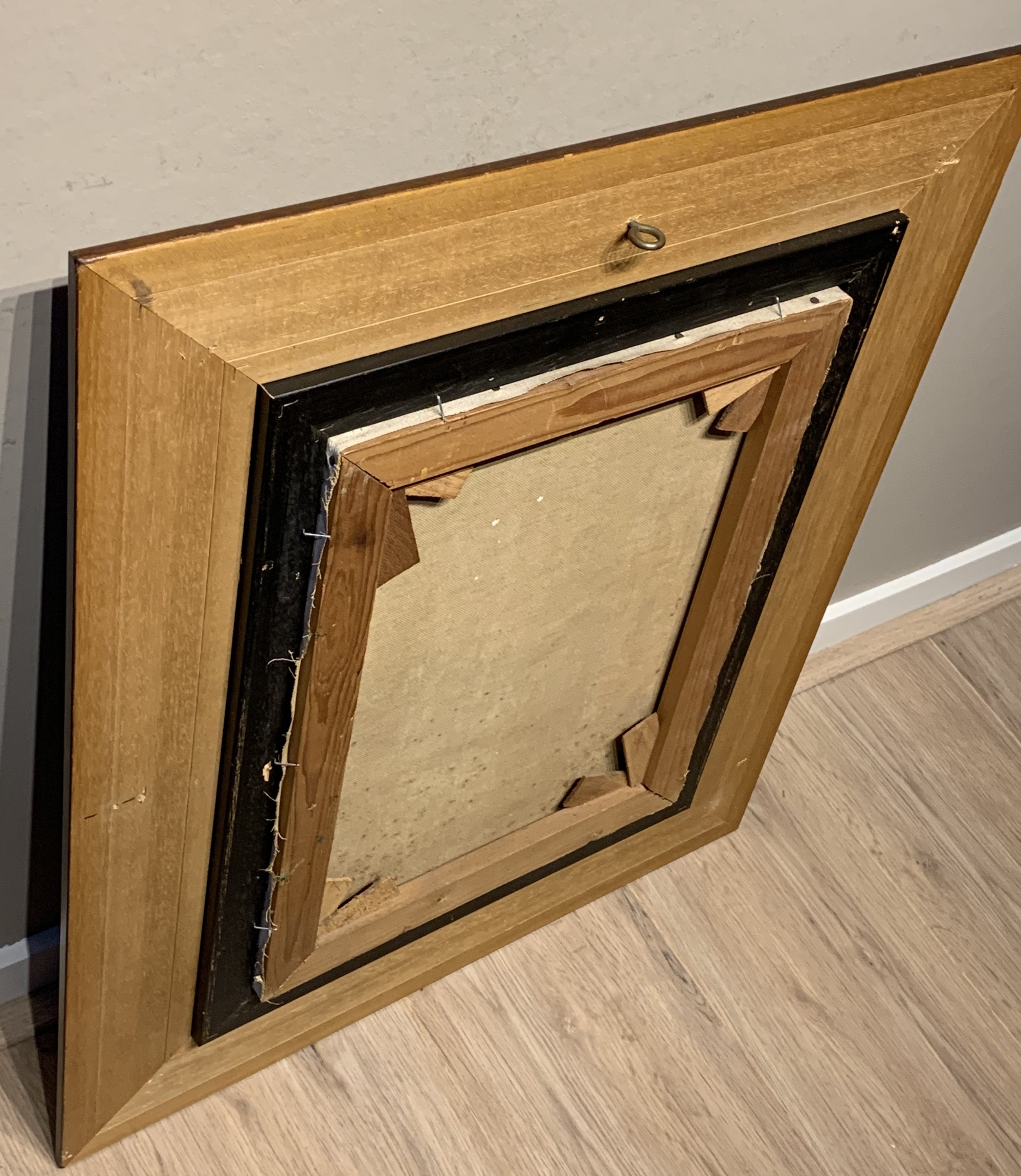 Het schone werk is omlijst met een puntgave strakke klassieke houten lijst , die het tot een prachtig geheel maakt.