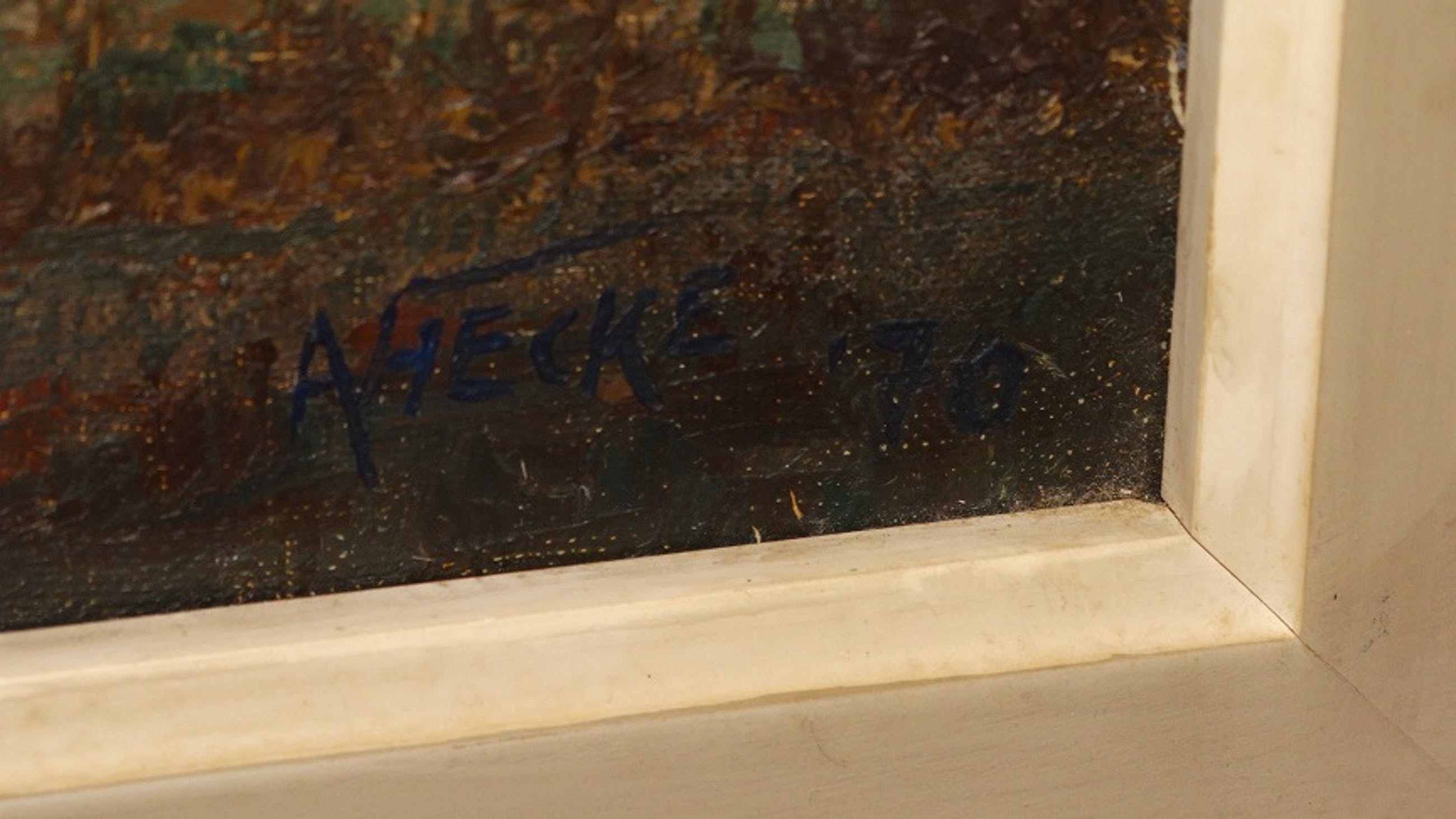 Albert Van Hecke (1909-1993) landschap met bomen.olieverf op doek. gesigneerd : A. Van Hecke. uit 1970. in zeer goede staat. doekmaat : 40 cm op 30 cm. afmetingen inclusief kader : 53,50 cm op 43,50 cm. verzending mogelijk