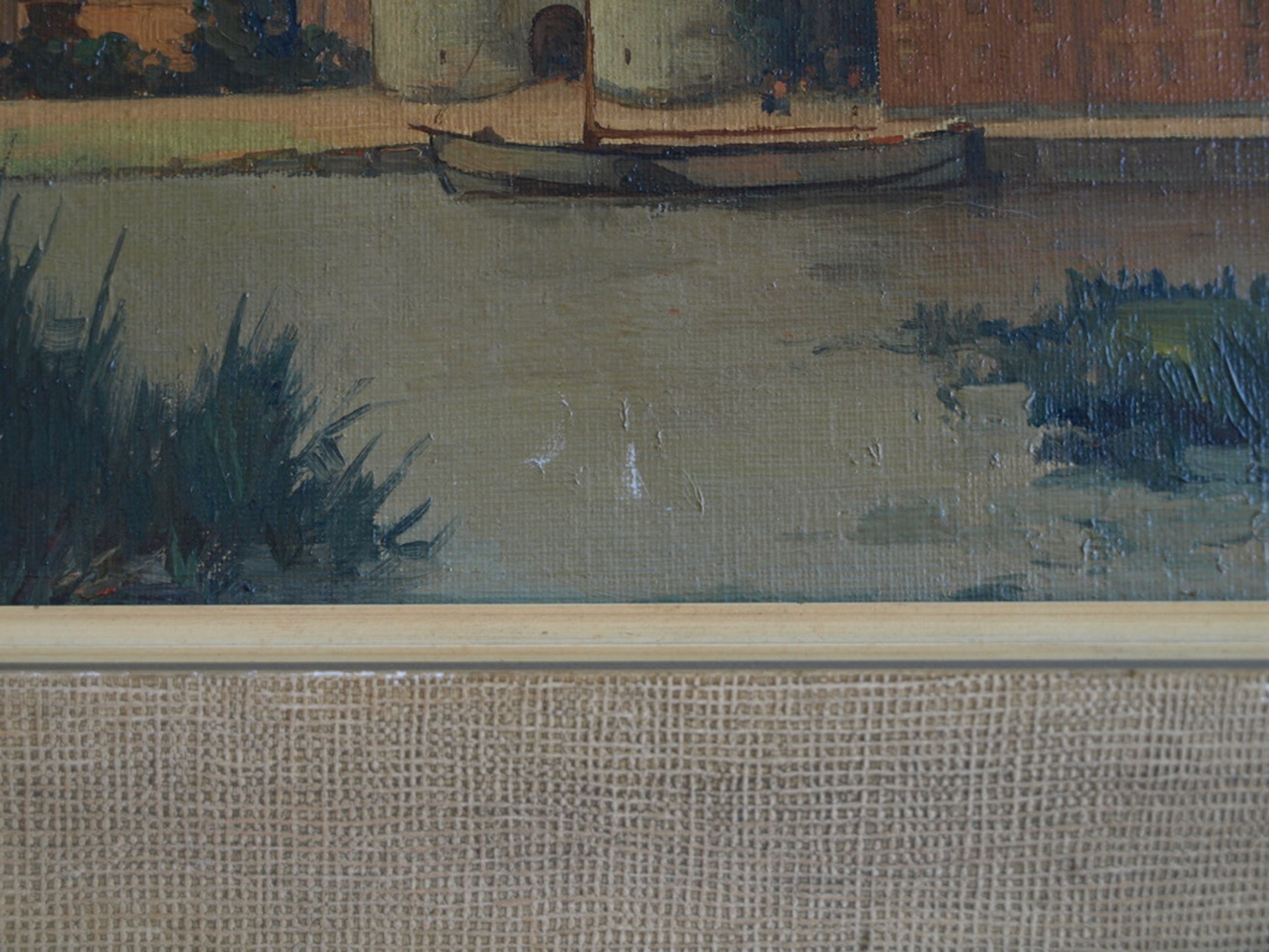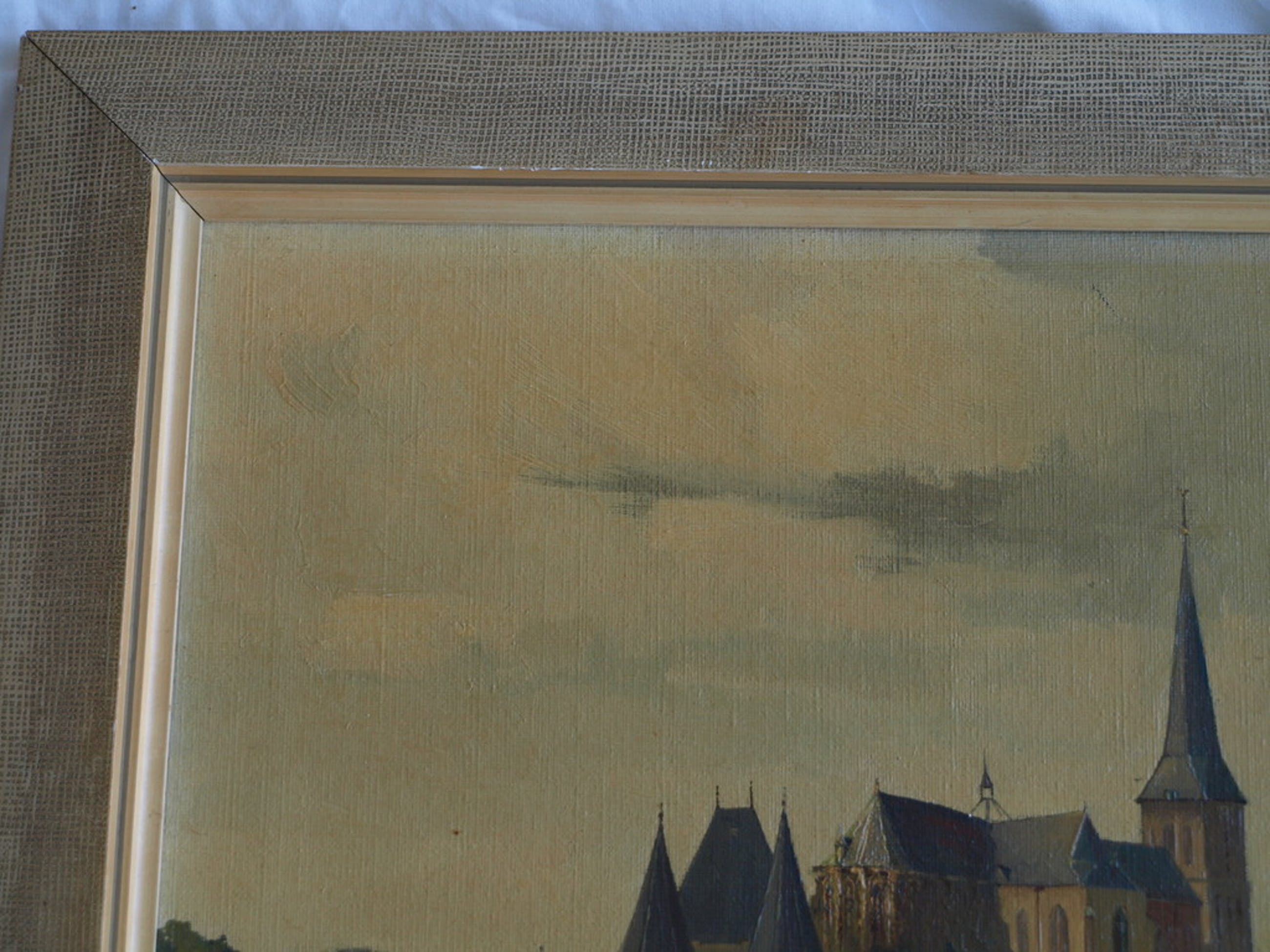 Een schilderij van de Nederlandse kunstenaar Albert Vinke (1895-1988) met een voorstelling van een watergezicht met op de achtergrond de Bovenkerk (ook wel St. Nicolaaskerk) in de stad Kampen in de provincie Overijssel.