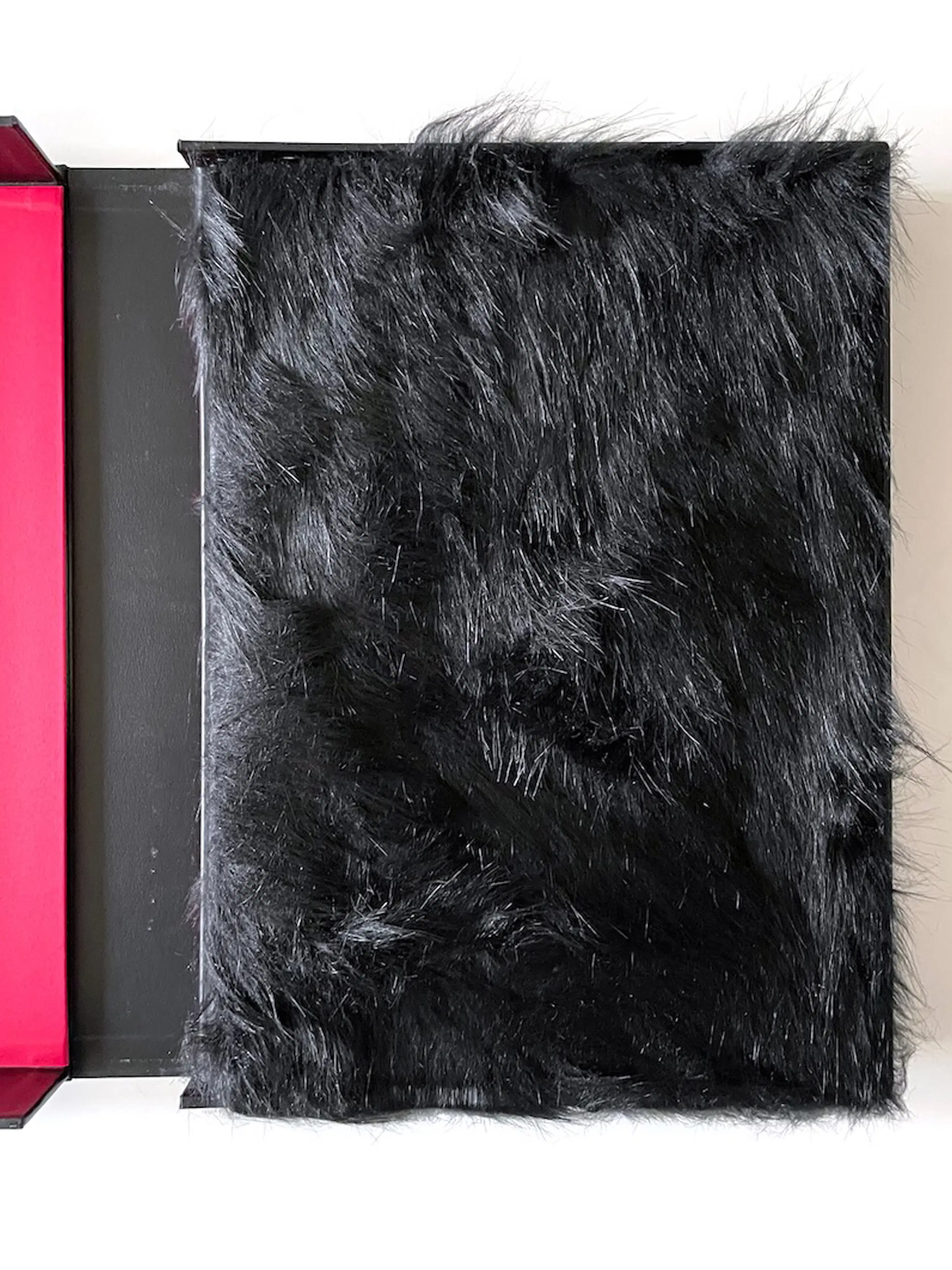 Hardcover met imitatie-chimpanseebont, in clamshell box, 41 x 55 cm, 408 pagina's.