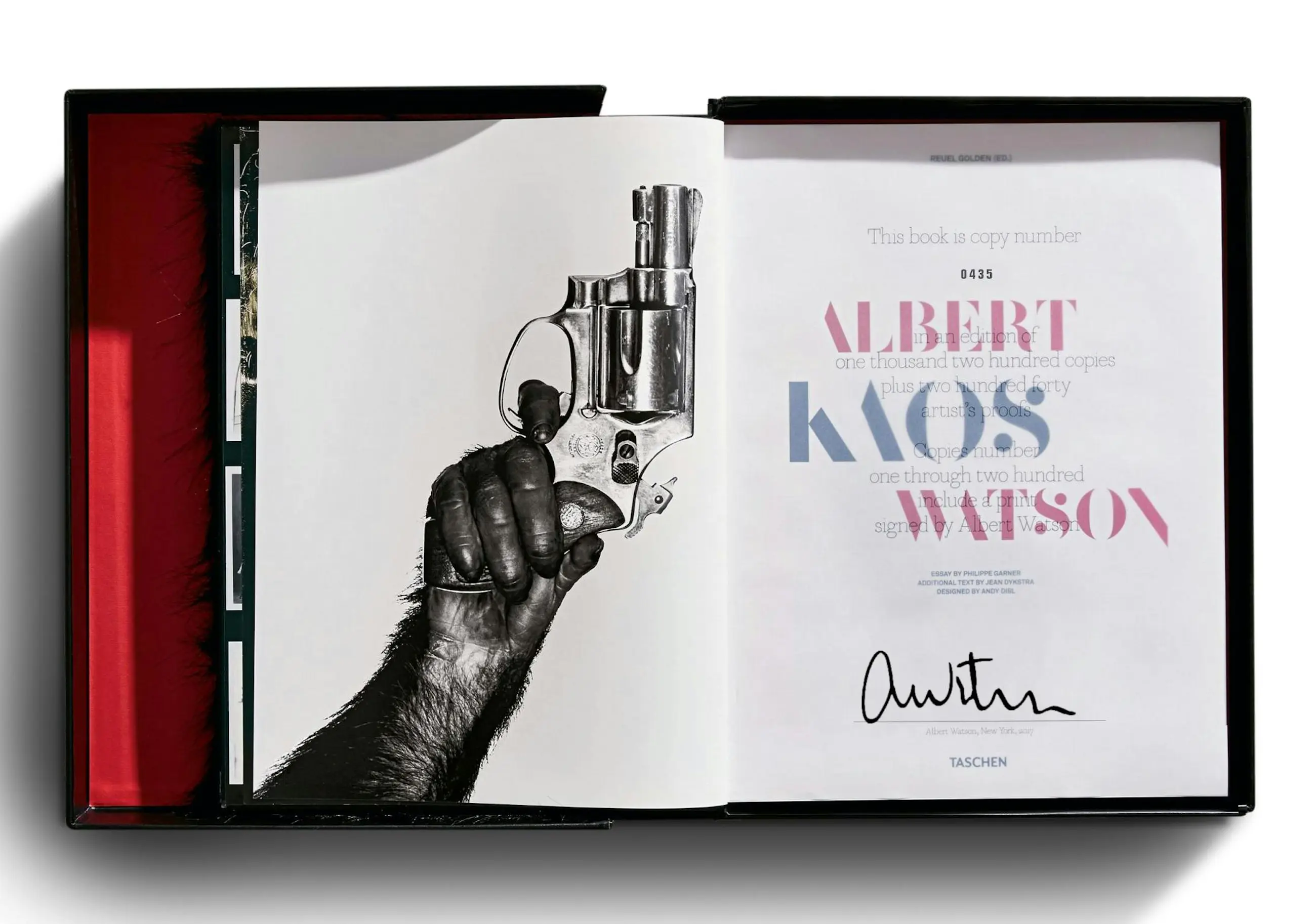Hardcover met imitatie-chimpanseebont, in clamshell box, 41 x 55 cm, 408 pagina's.