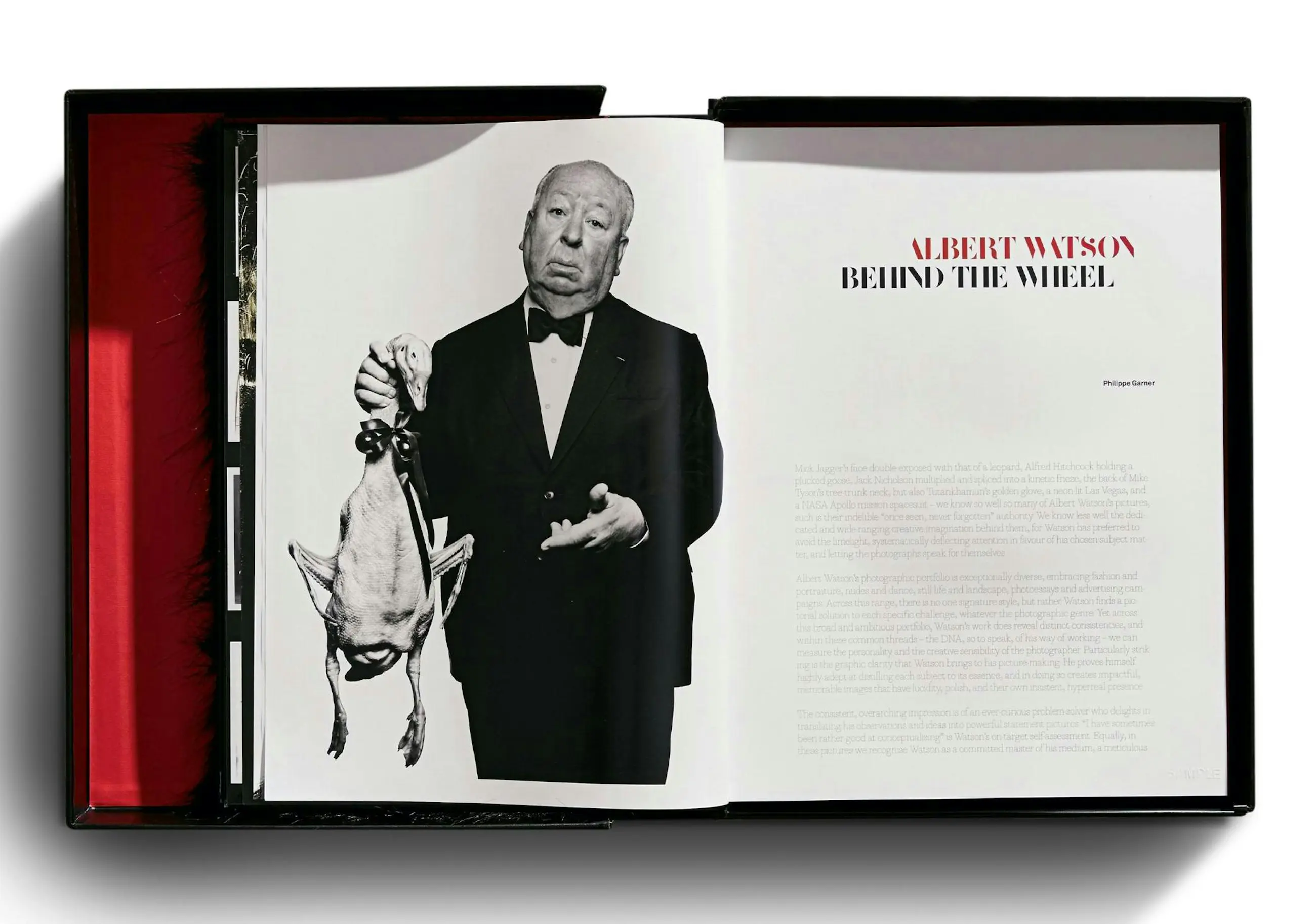 Albert Watson (geb. 1942) werd geboren in Schotland. Zijn opvallende foto's verschenen op meer dan honderd covers van Vogue en zijn te zien geweest in talloze andere publicaties, waaronder Rolling Stone en Time. Watson fotografeerde ook voor honderden succesvolle reclamecampagnes voor bedrijven zoals Prada, Revlon en Chanel. Ondertussen werkte hij veel aan persoonlijke projecten, van Marrakech tot Las Vegas. Zijn doorbraak kwam in 1973 met een foto die hij nog steeds als de belangrijkste uit zijn carrière beschouwt: Alfred Hitchcock met een geplukte gans.