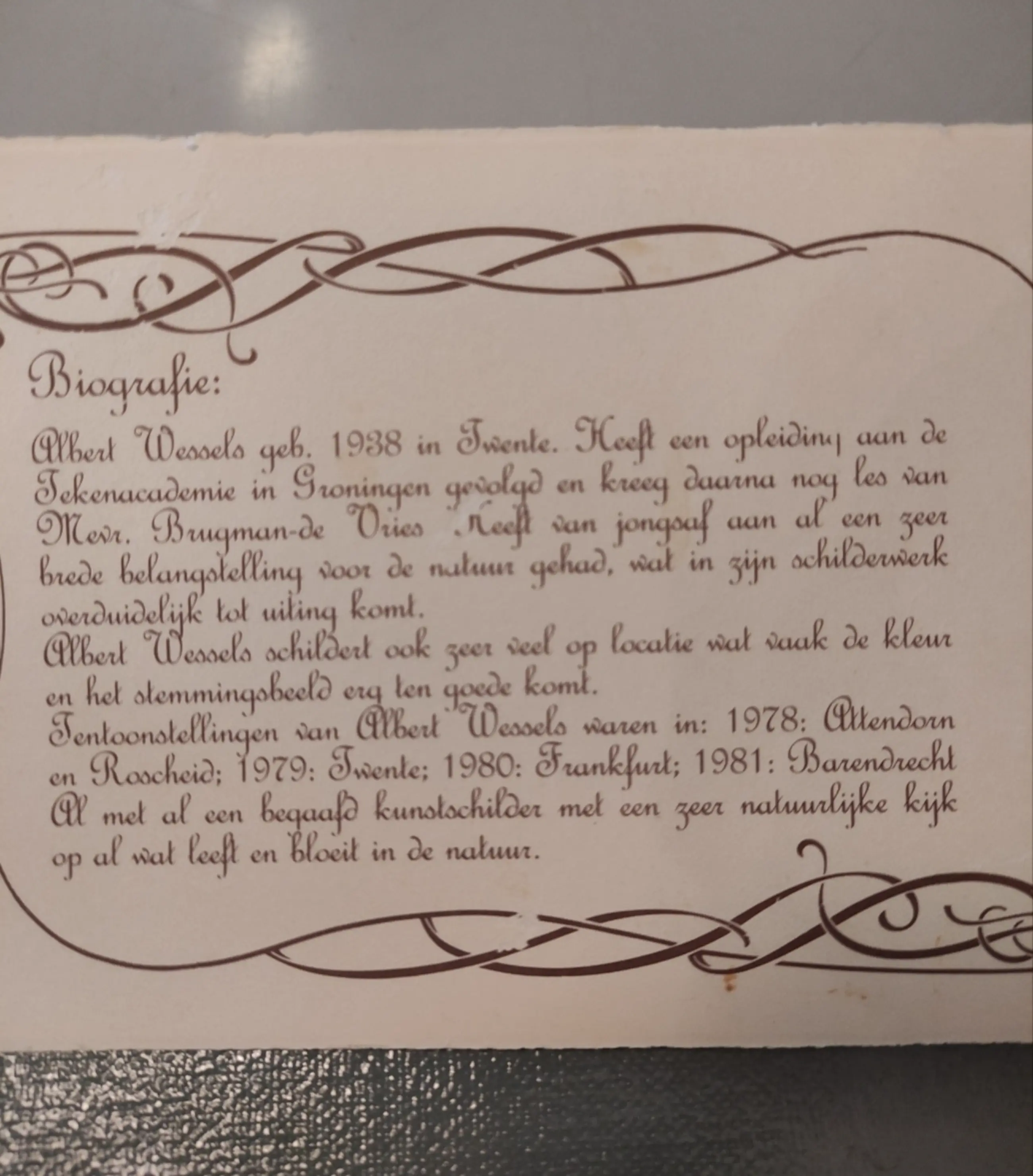 Mooi uniek werk van Albert Wessels. Hij is vooral bekend van zijn landschappen, daarom is dit werk speciaal.