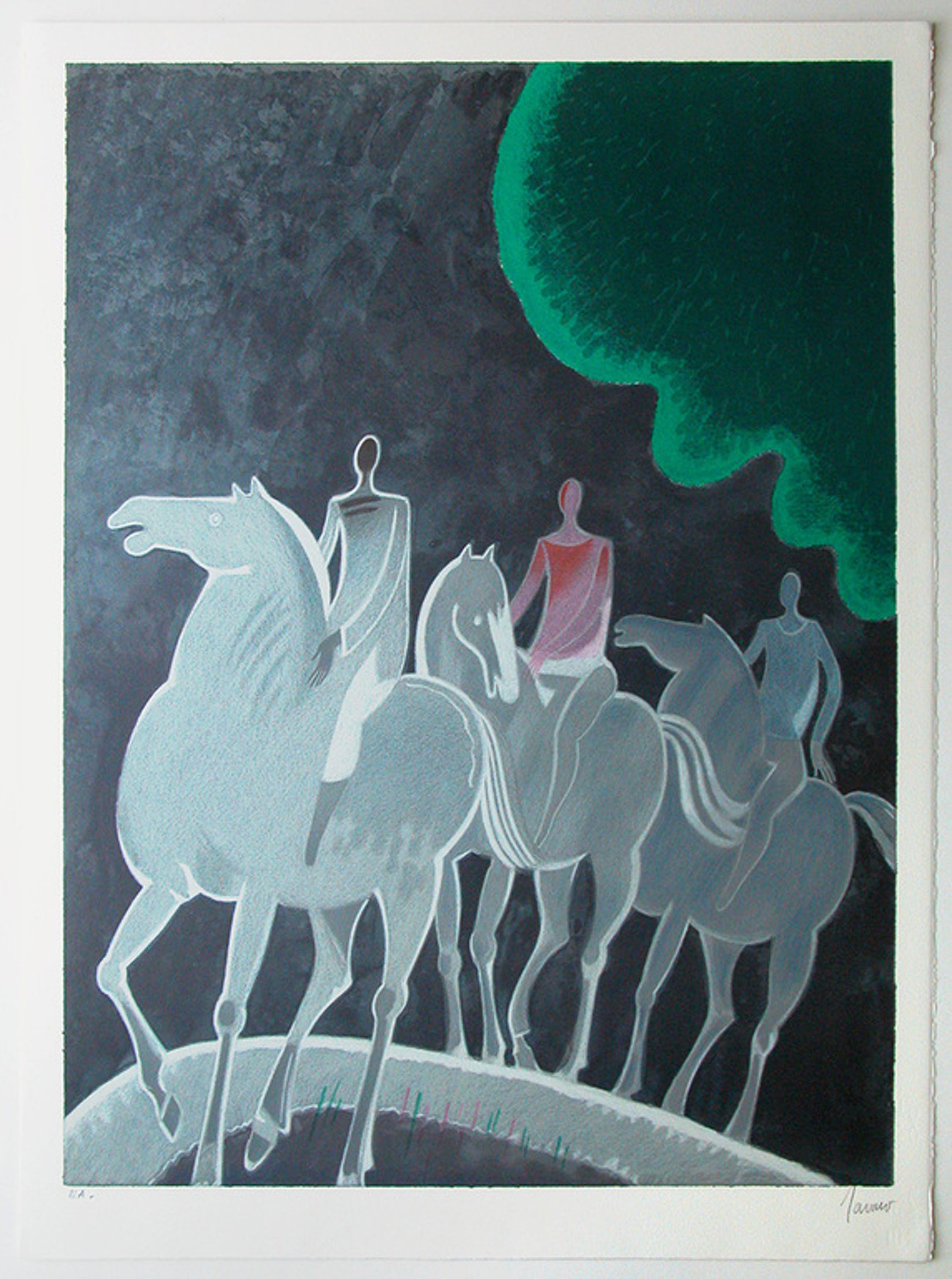Originele kleurenlitho van Albert Zavaro. (Istanbul 1925, werkt en woont in Frankrijk).