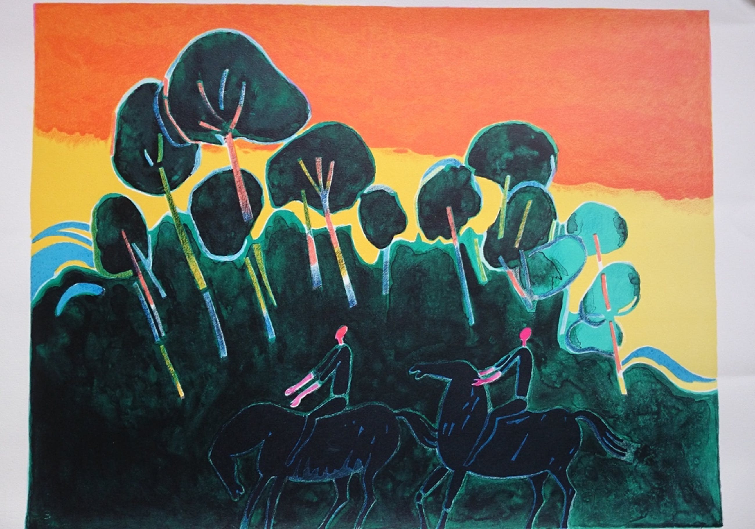 Originele kleurenlitho van Albert Zavaro. (Istanbul 1925, werkt en woont in Frankrijk)