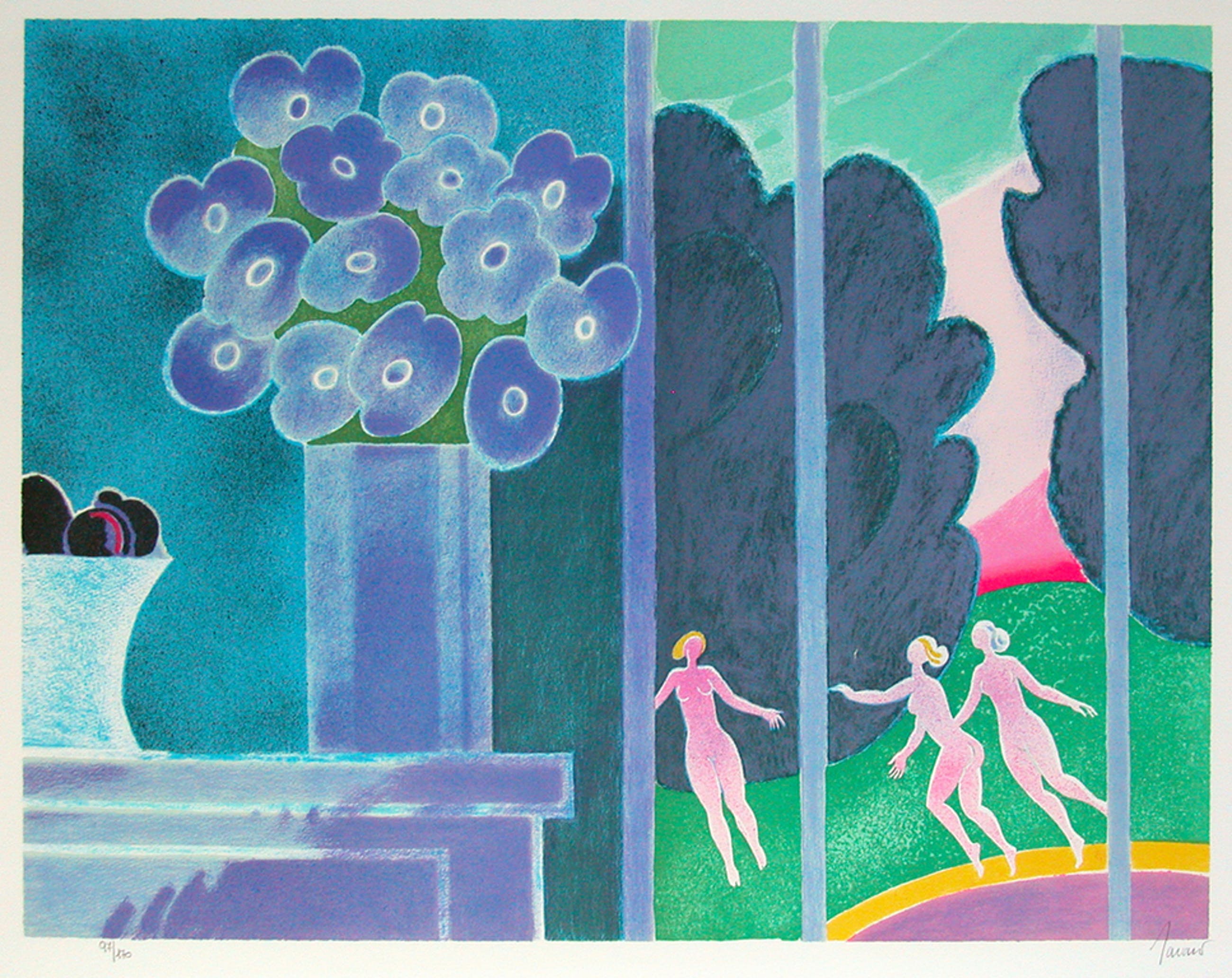Originele kleurenlitho van Albert Zavaro. (Istanbul 1925, werkt en woont in Frankrijk).