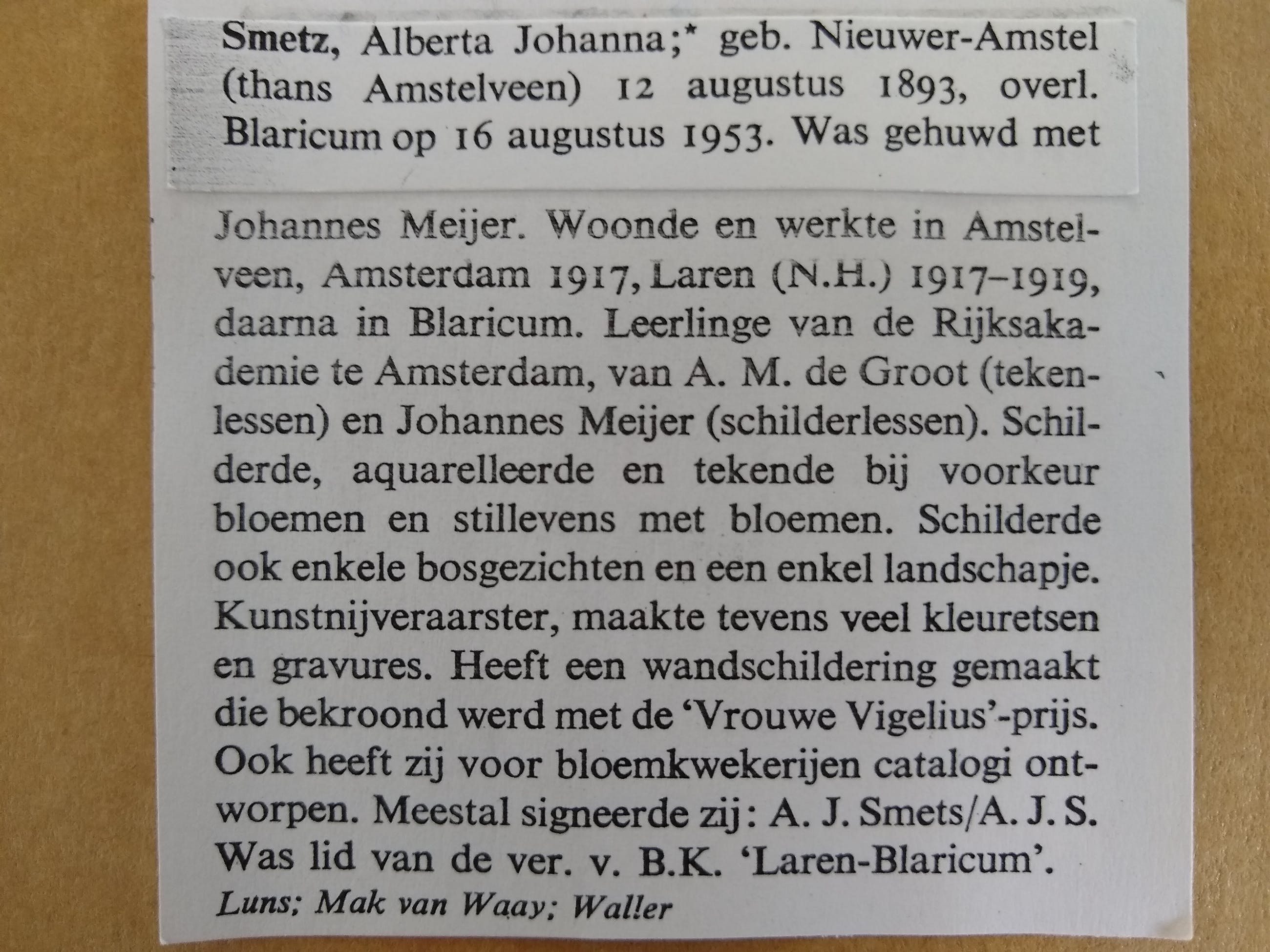 Sprekende aquarel "tulpen in pot". Deze kunstenares was zeer bedreven in het schilderen van bloemen en planten. Dit was dan ook haar hoofdonderwerp. Zij maakte ook catalogi voor bloemkwekerijen. Zie toelichting op bijgesloten foto.