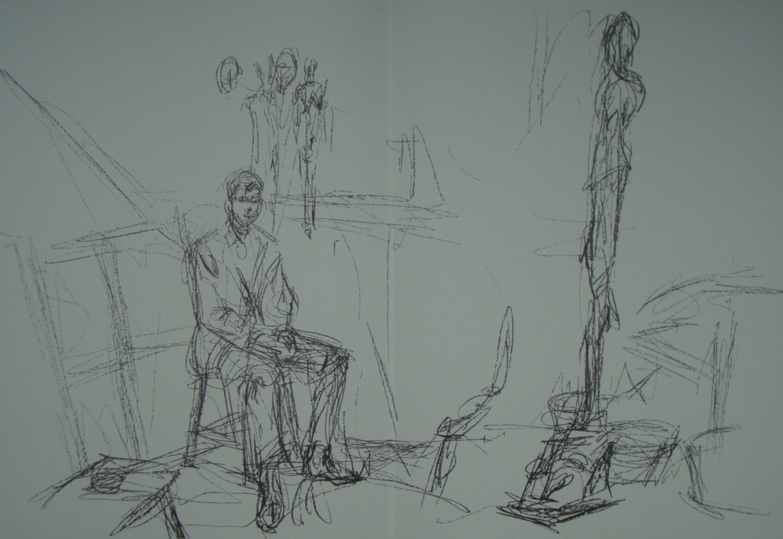 Mooie originele litho van Alberto Giacometti in de voor hem kenmerkende stijl: vanuit de losse pols al zoekende naar de juiste vorm en expressie.