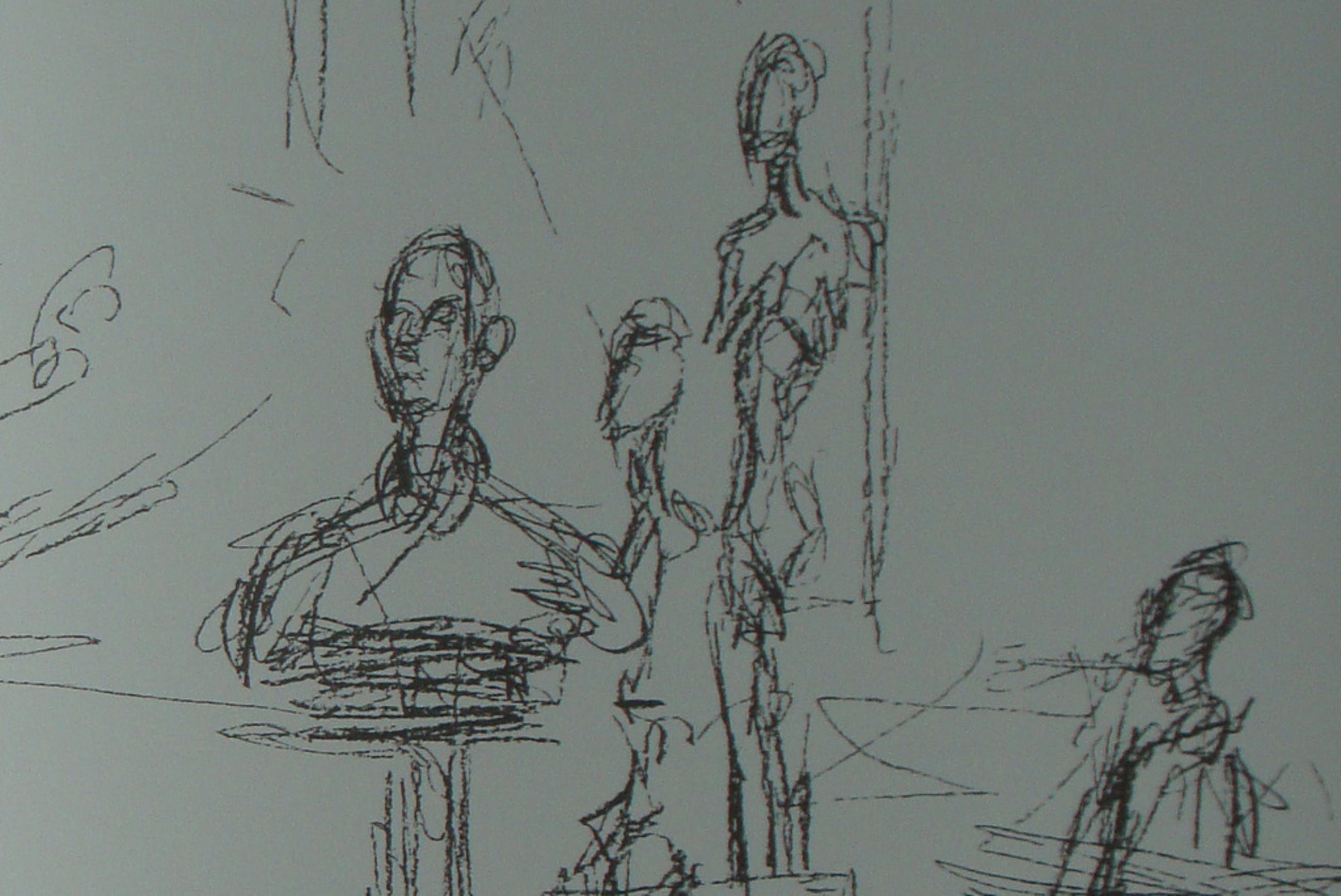 Mooie originele litho van Alberto Giacometti in de voor hem kenmerkende stijl: vanuit de losse pols al zoekende naar de juiste vorm en expressie.