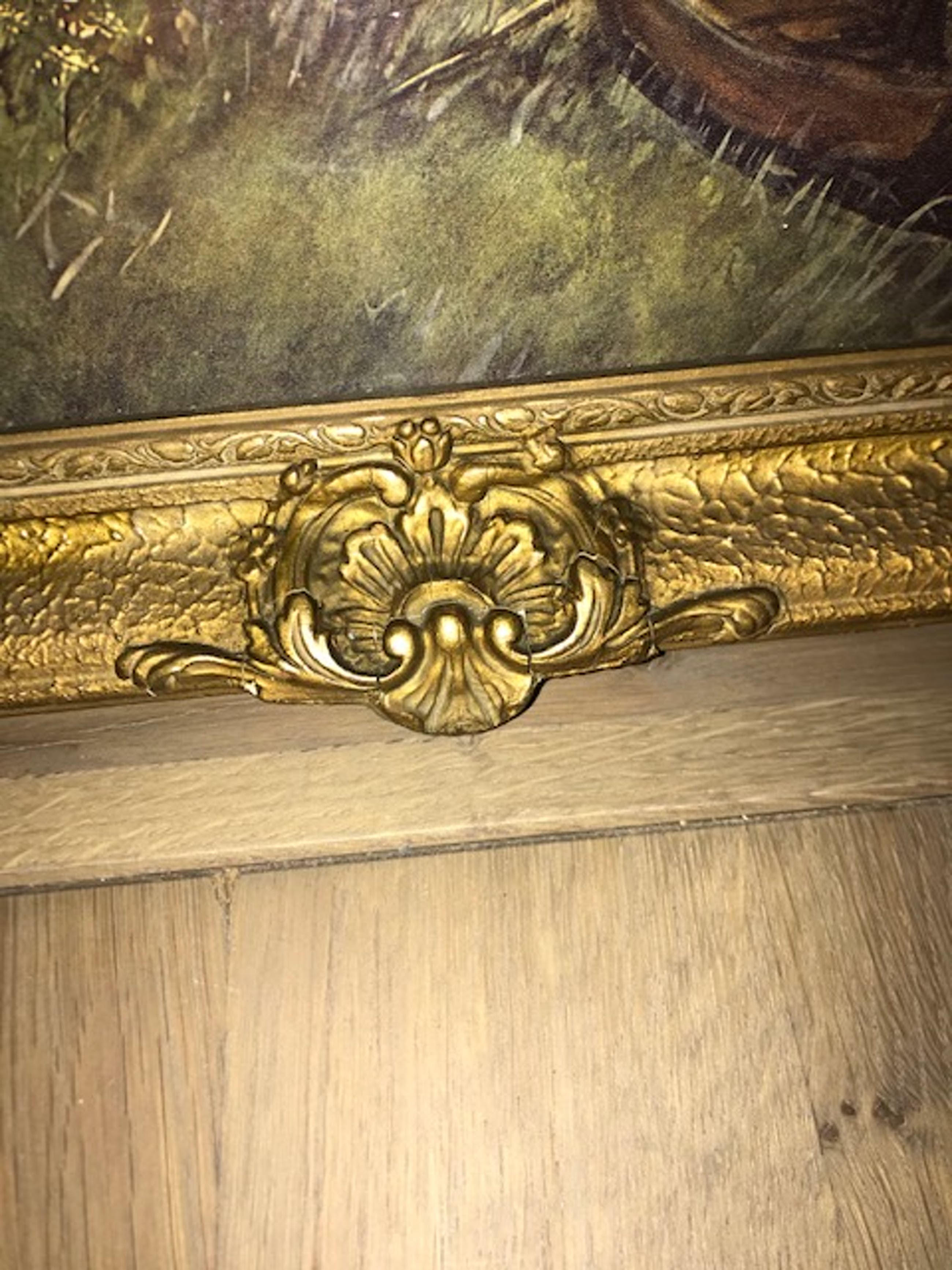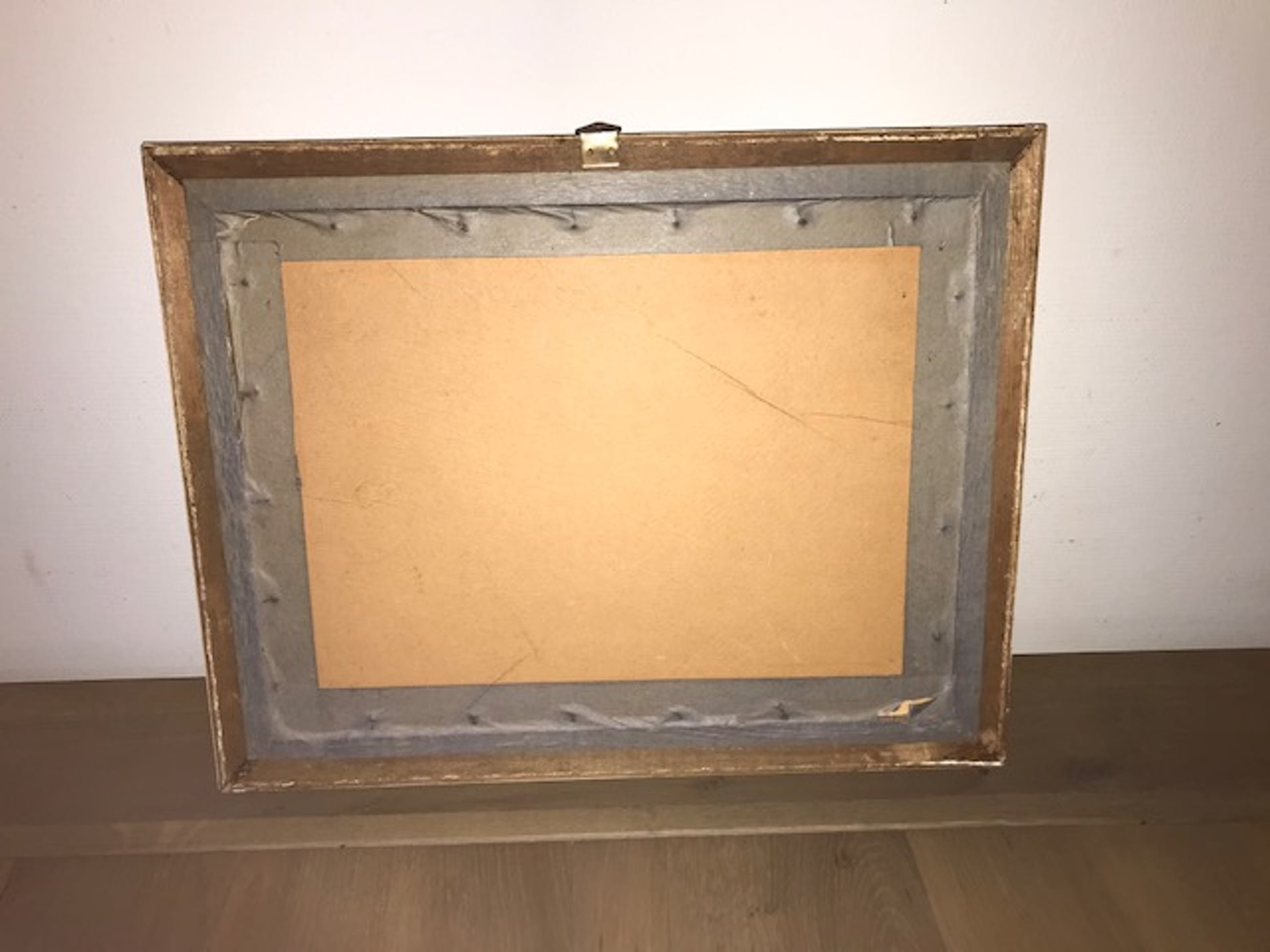 Het schilderij is in goede staat. Wel is de zeer mooie rand licht beschadigd.