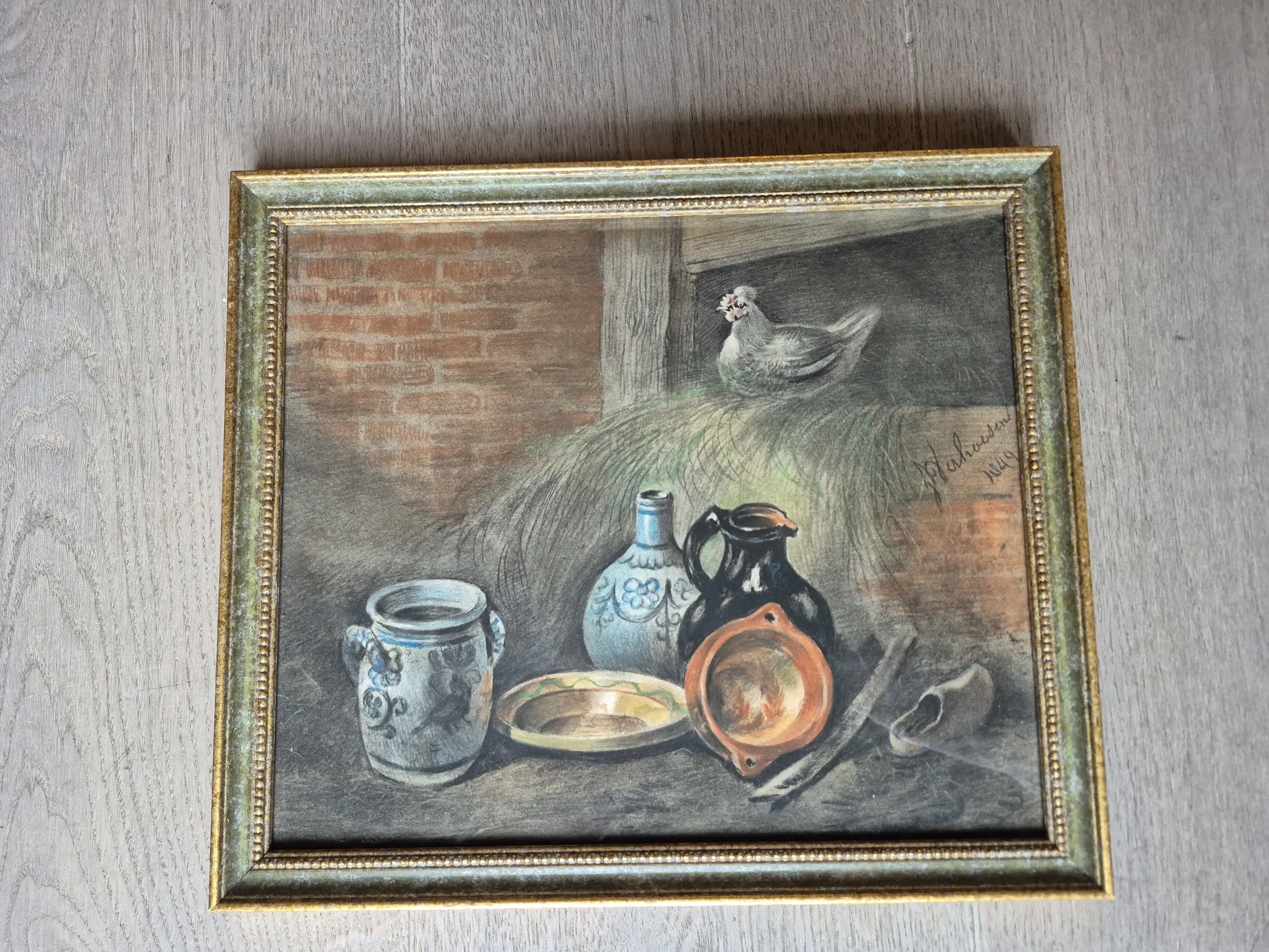 Het werk is in goede staat, netjes ingelijst en achter glas.