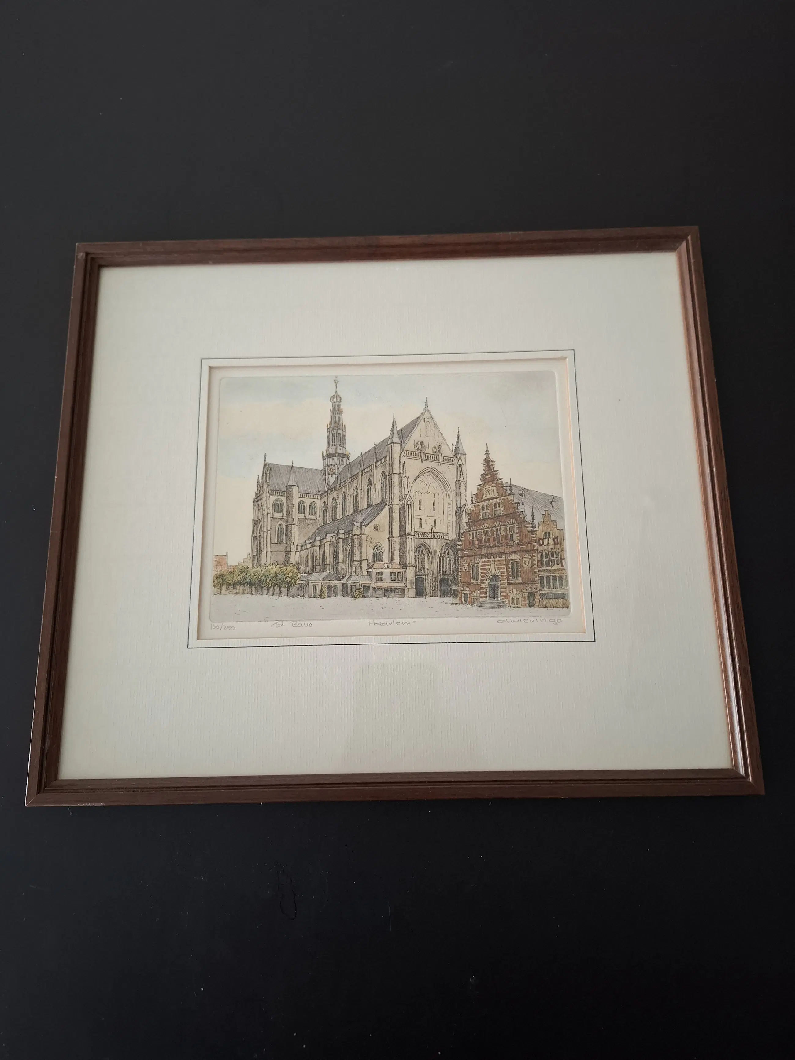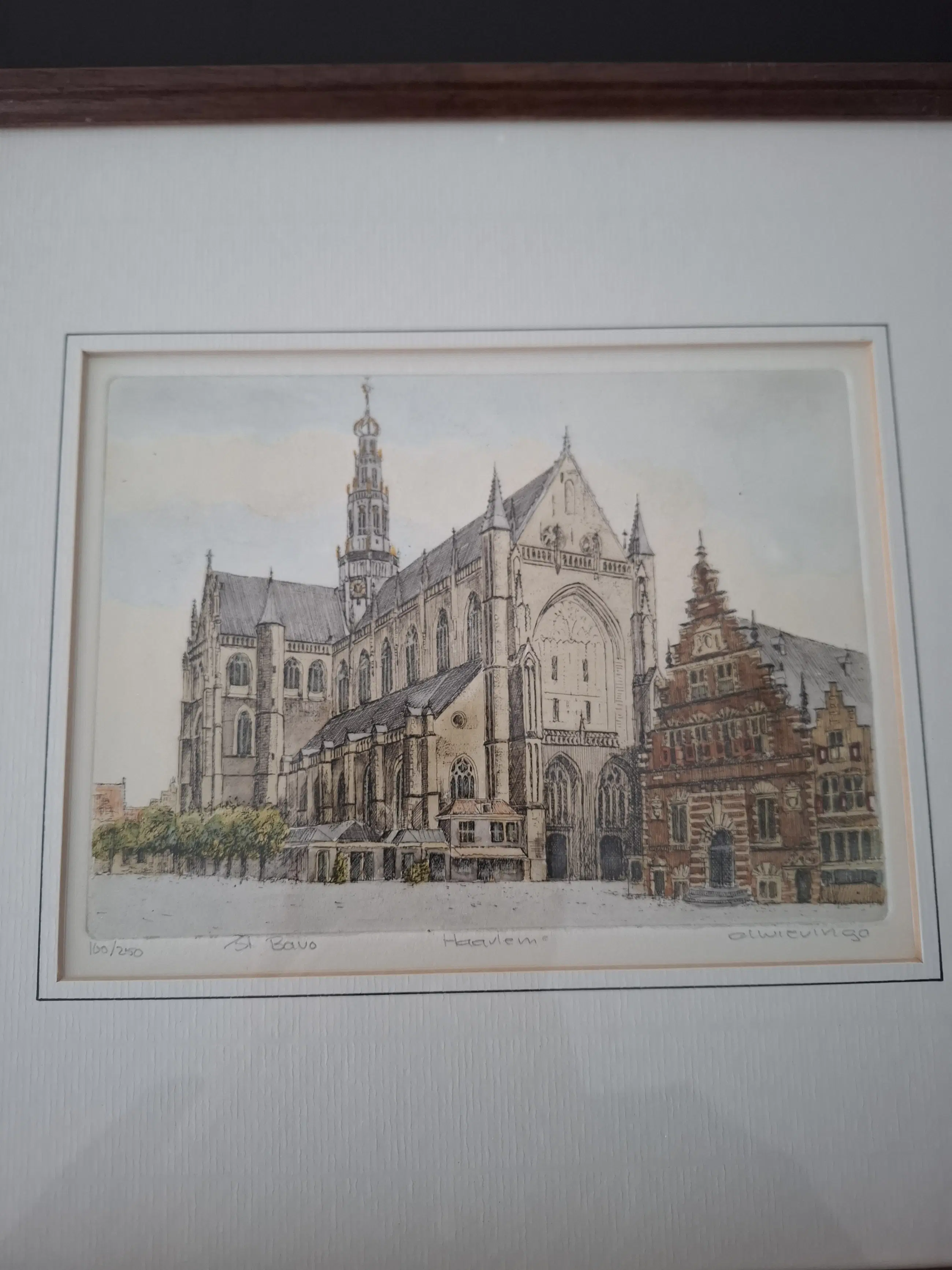 Prachtige ingelijste ets van Albertus Wieringa van de St. Bavo in Haarlem. Deze originele ets is geheel met de hand vervaardigd. De oplage (100/250) is gelimiteerd en elk exemplaar is door de kunstenaar gesigneerd.