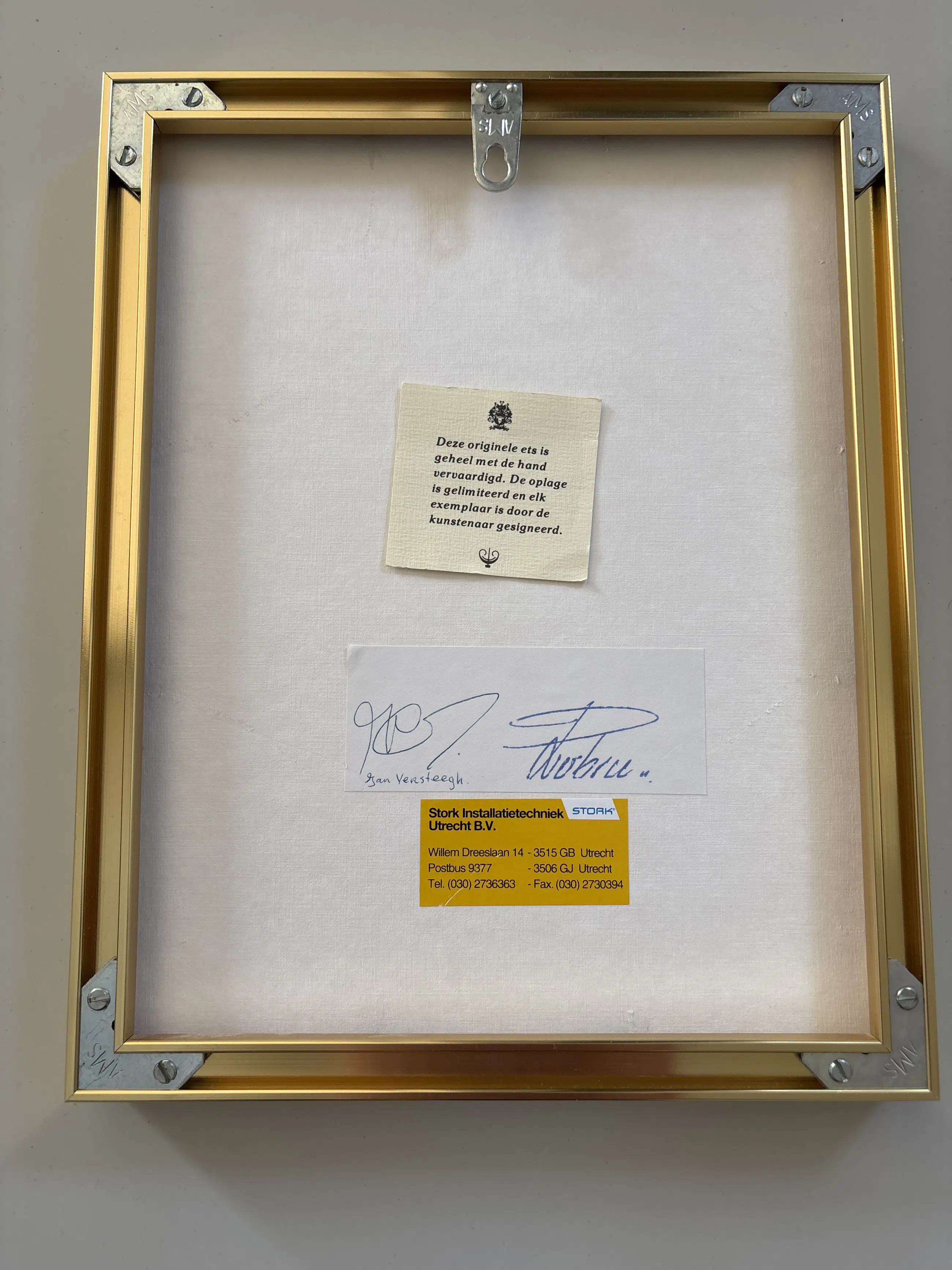 Het werk is af te halen op locatie. Als koper dient u zelf verpakkingsmateriaal mee te nemen. De locatie is: Oegstgeest, Nederland