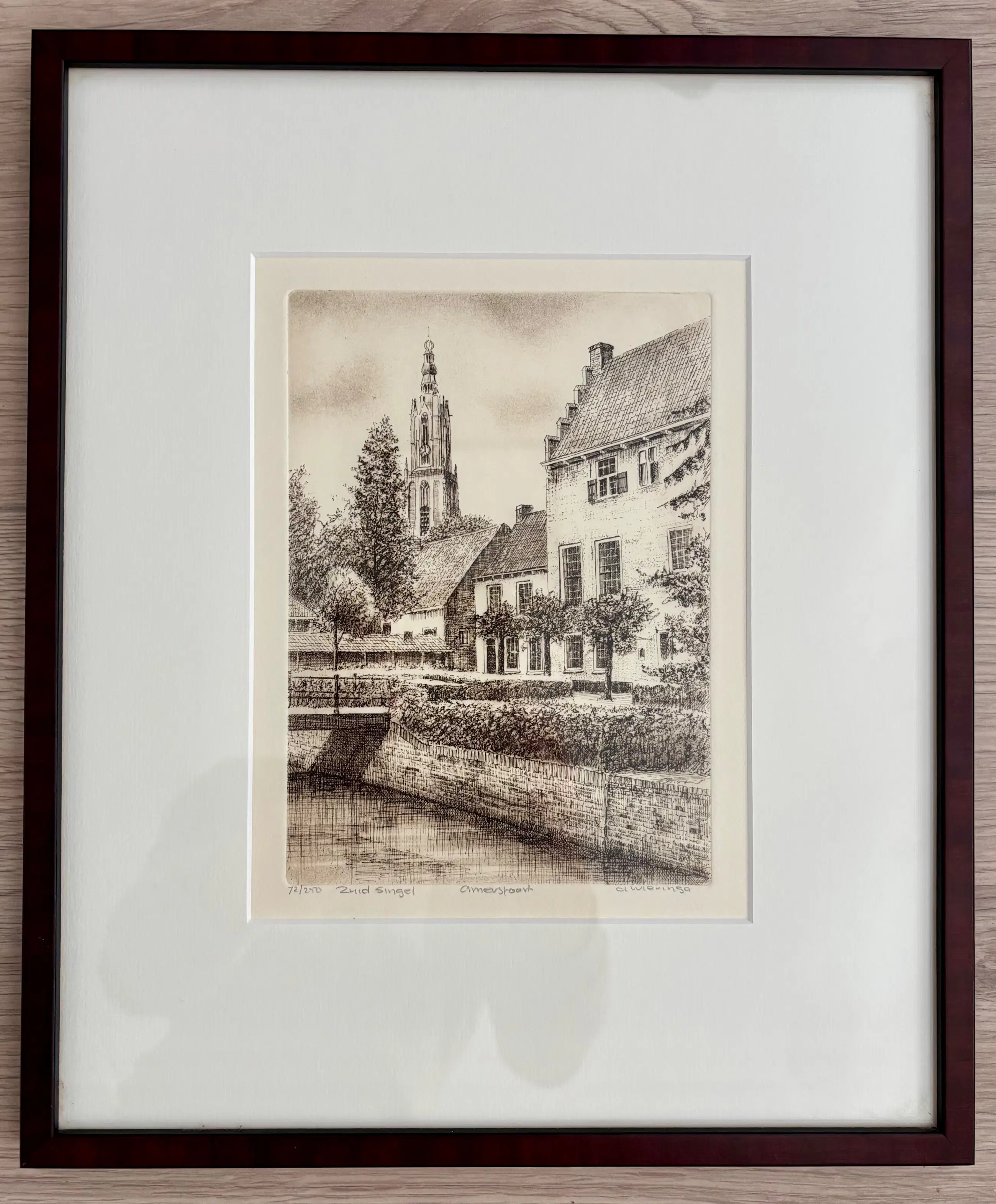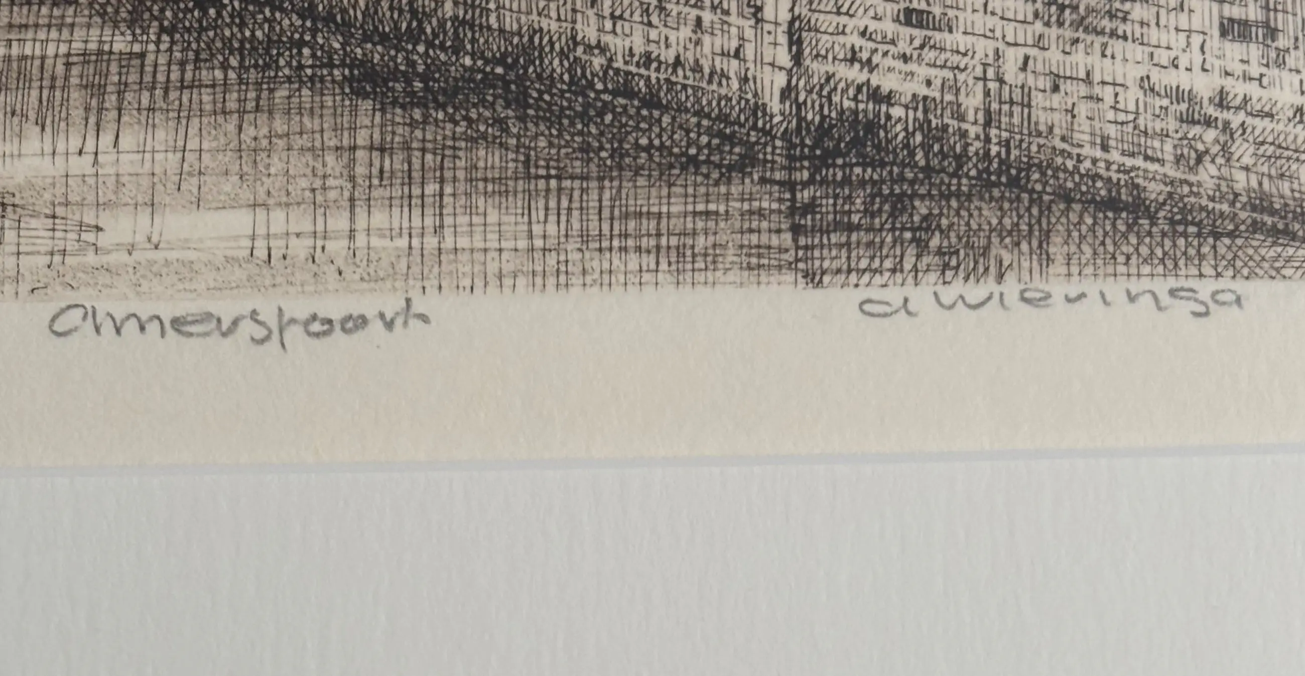 Mooie ingelijste ets van Albertus Wieringa die bekend staat om zijn grafische techieken. Vooral bekend van etsen die hij maakte van markante plekken in vele steden en dorpen.