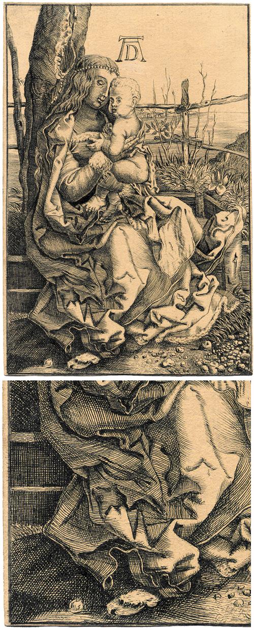 Maria mit dem Kinde am Baum. Kopie im Gegensinn nach dem Kupferstich Dürers, um 1820.