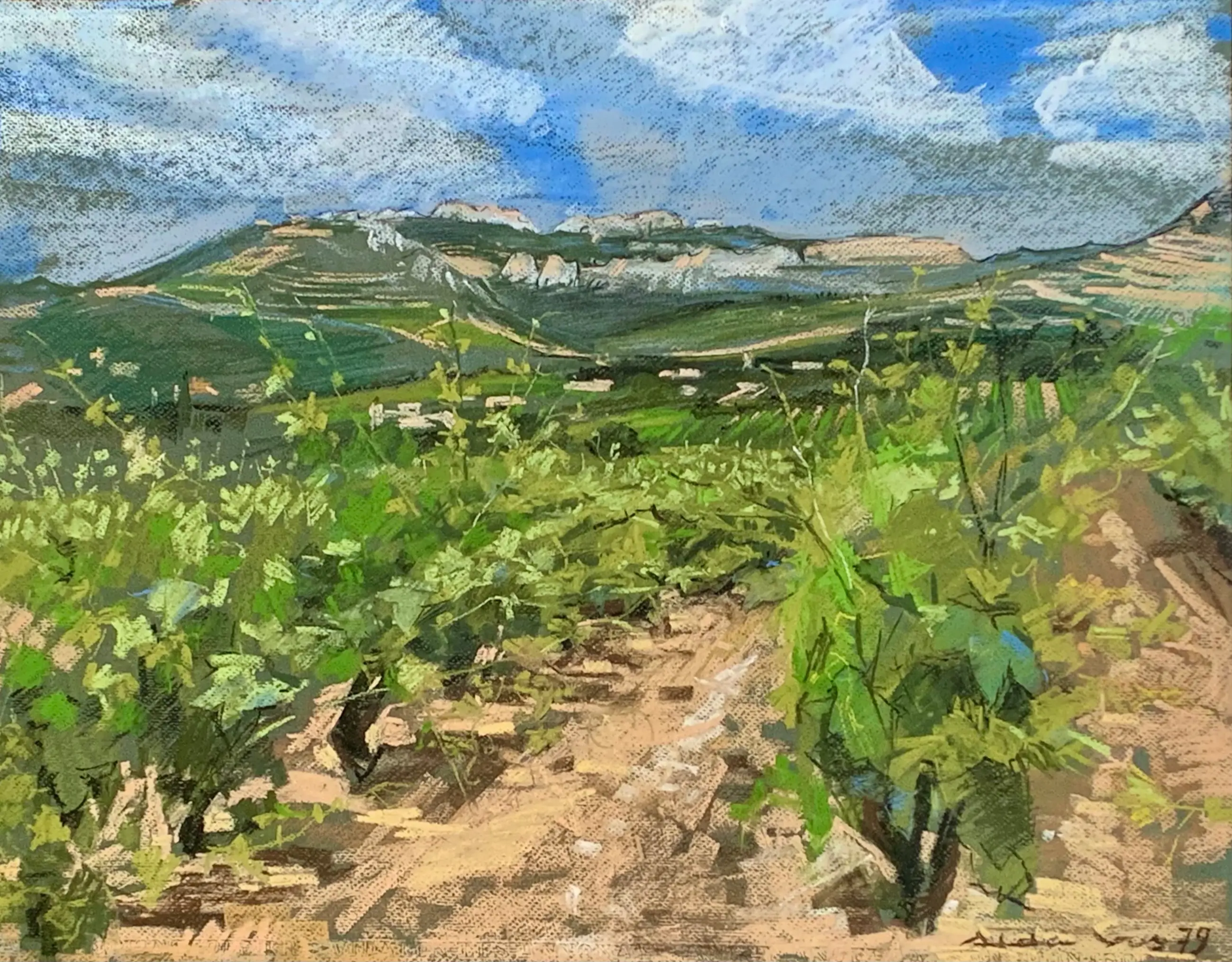 Het werk zit in originele lijst met glas. Werk in uitstekende staat. Lichte verkleuring in het passe-partout wegens ouderdom