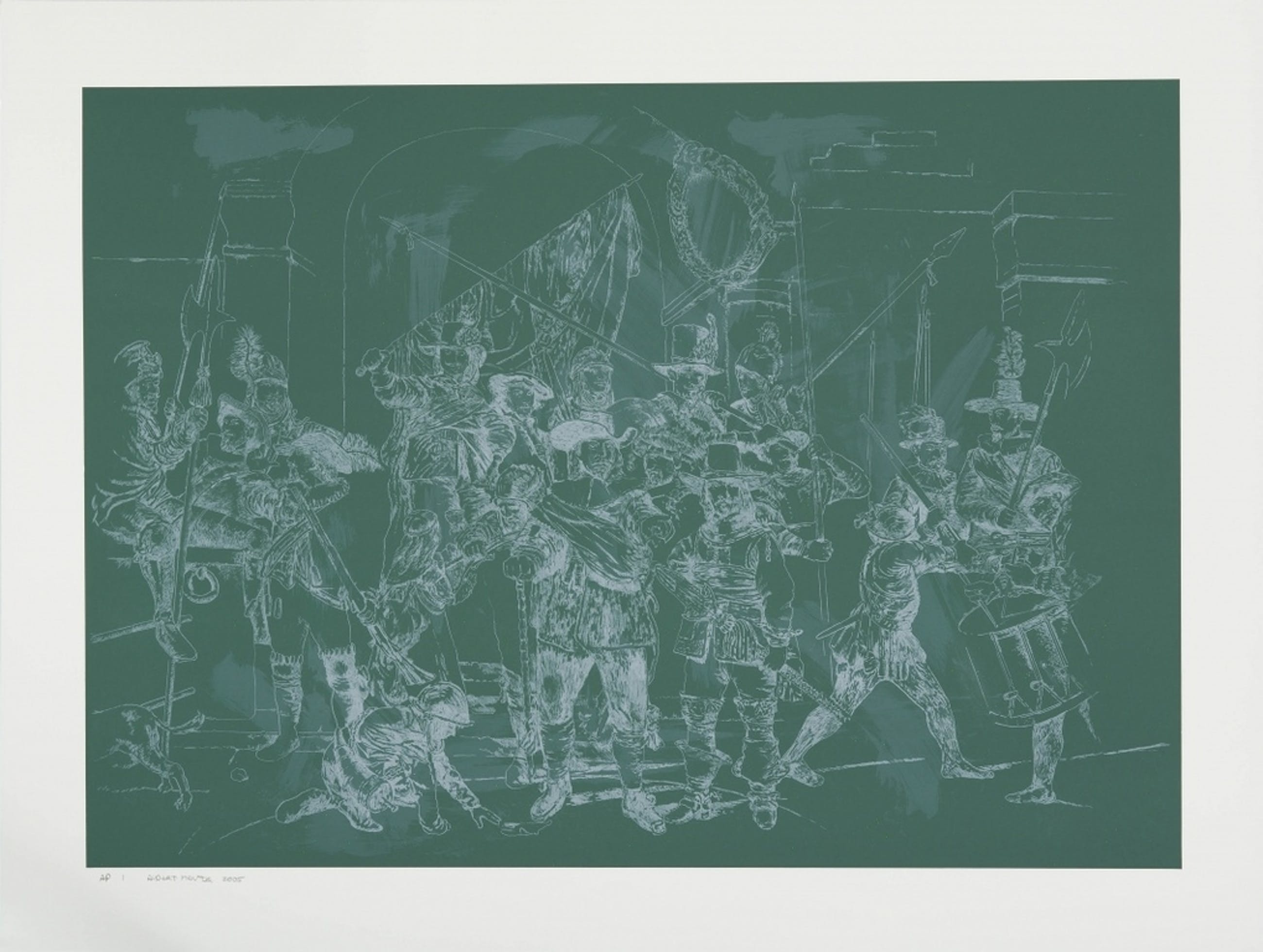 Aldert Mantje - 3 kleuren Zeefdruk - Nachtwacht 2 ½ minuut later