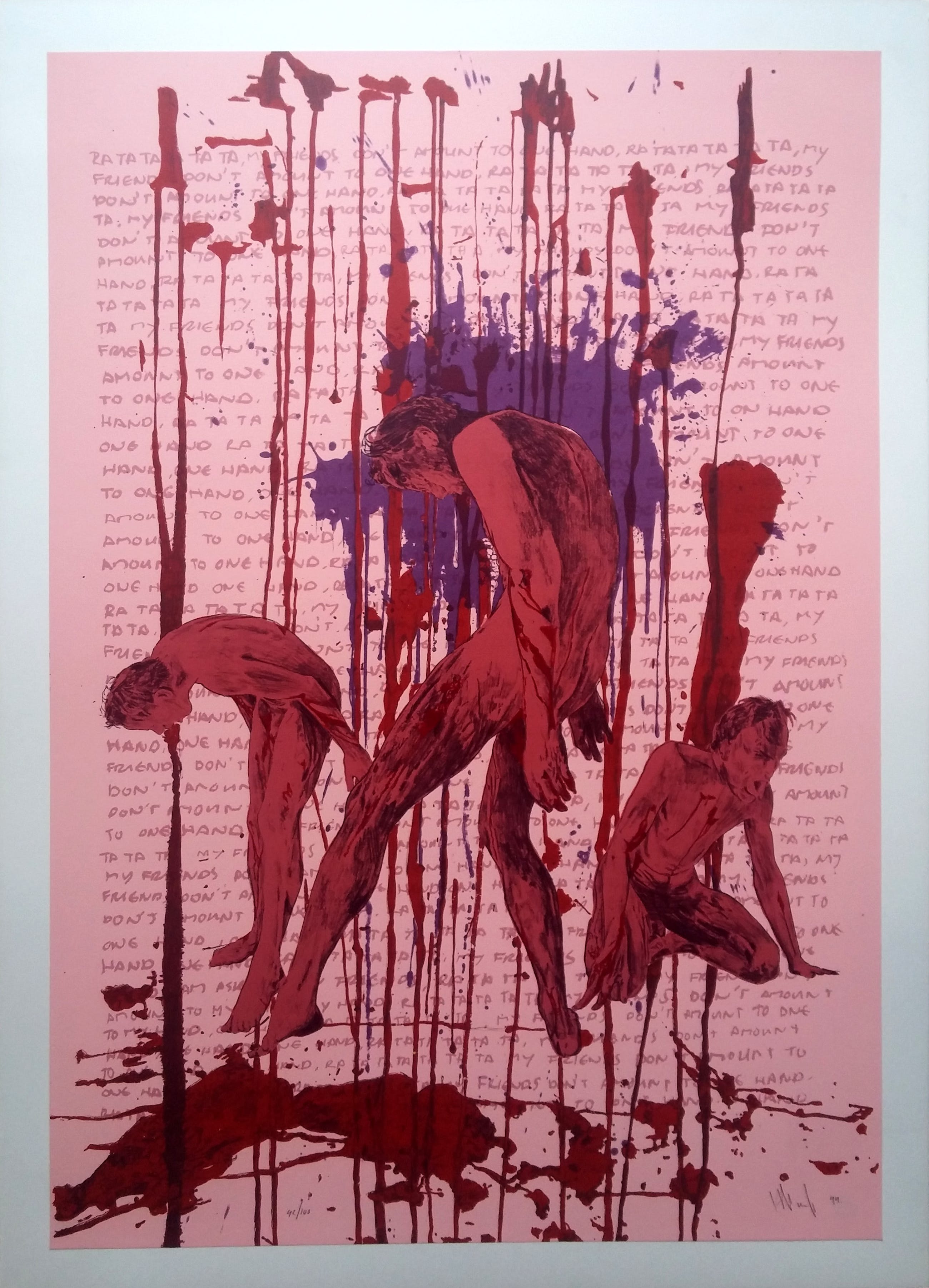 Zeefdruk zelf meet 89,5 x 62,5 cm en is opgeplakt. Wordt verzonden per koerier vanwege het formaat. Risico verzending is voor koper. Ophalen in de galerie in Zaandam verdient de voorkeur. Het werk bekijken alvorens een bod te doen behoort ook tot de mogelijkheden.