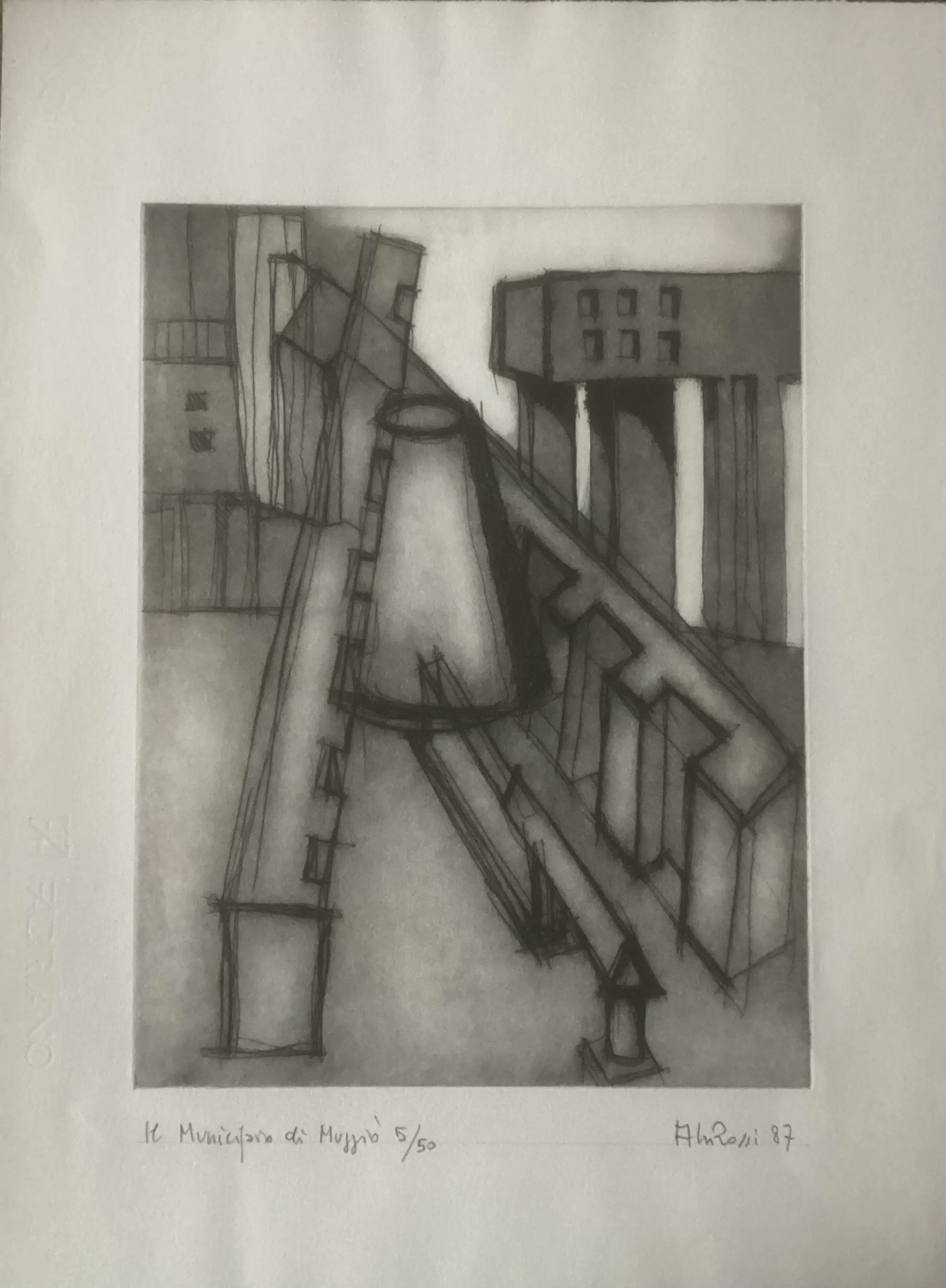 Werk van de wereldberoemde architect Aldo Rossi. Mooie diepzwarte en grijstinten.