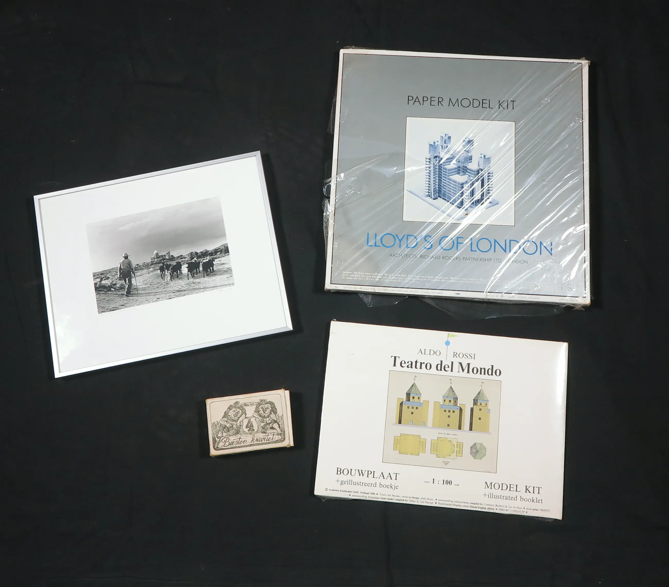 Het betreft een lot met diverse multiples (o.a. bouwplaten, spellen en een foto) van diverse kunstenaars. De foto is handgesigneerd.